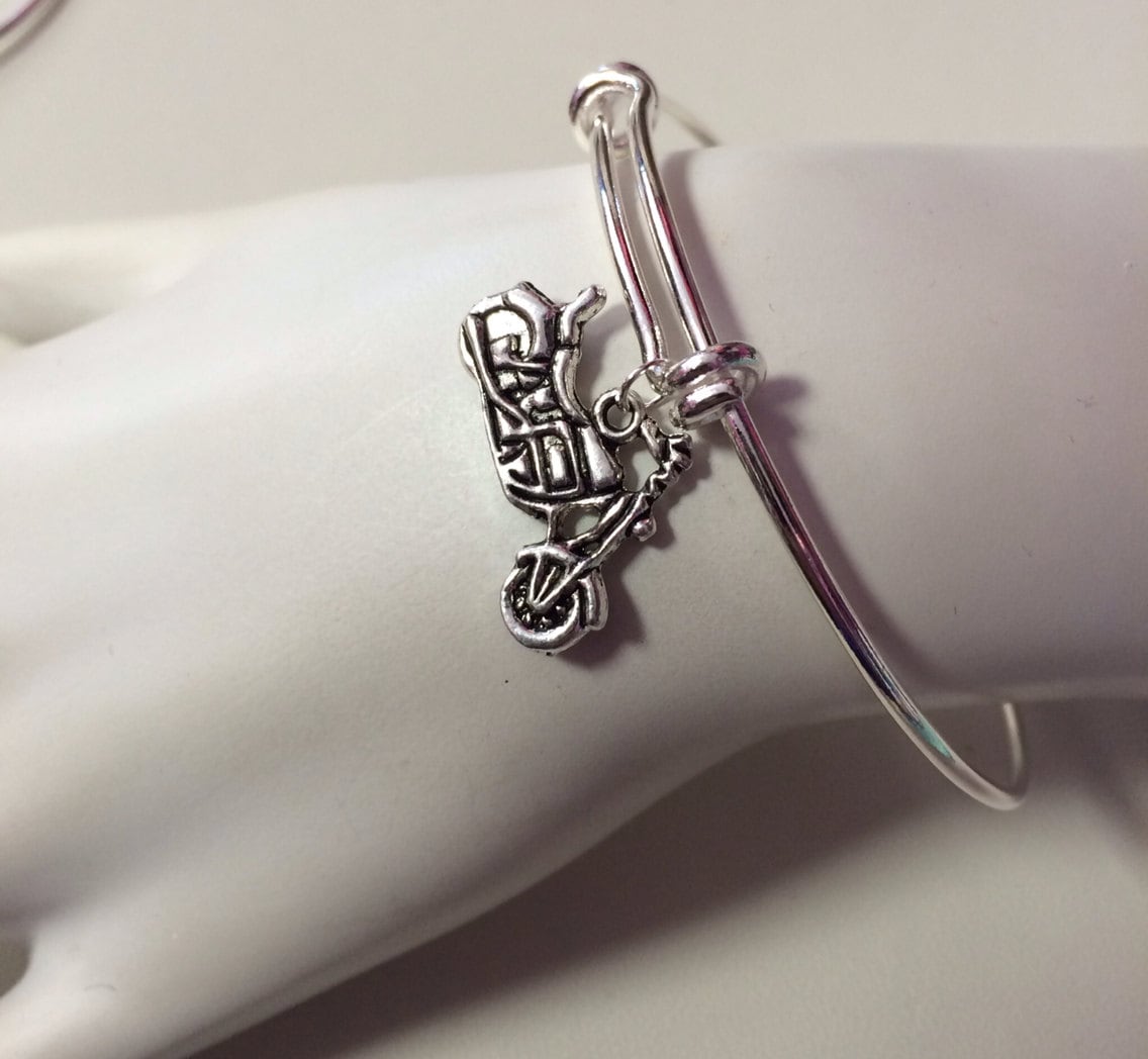 Motorcycle Charm Bangle, Motorcycle Bracelet