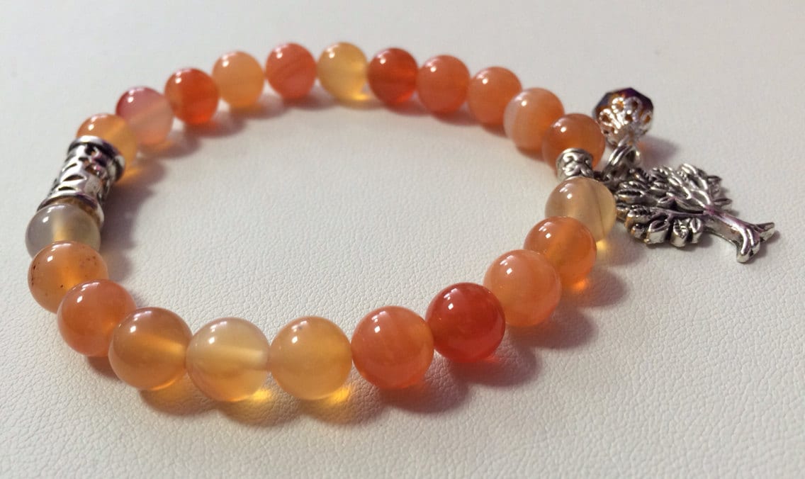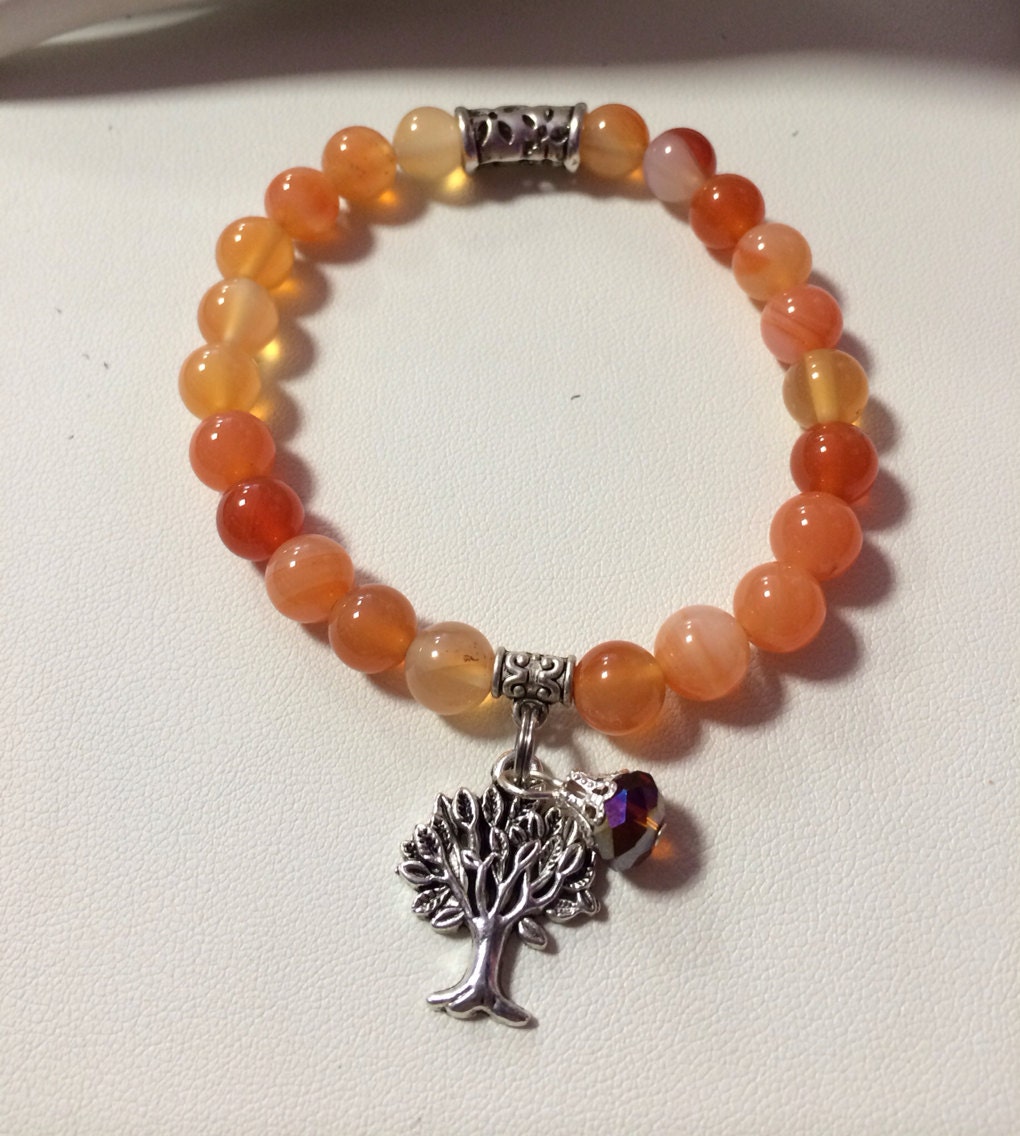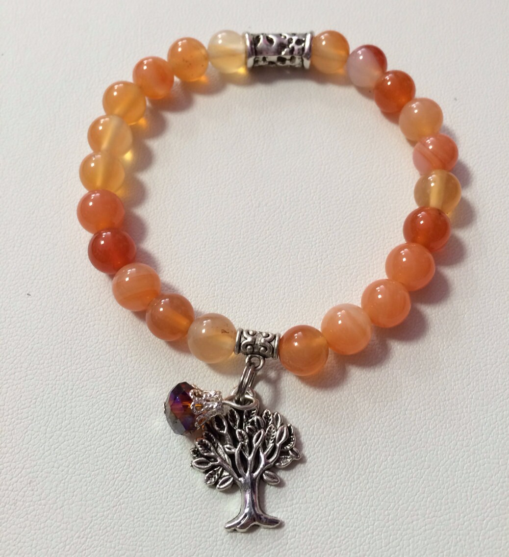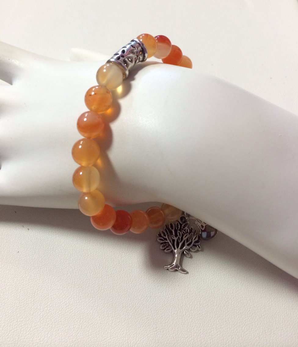 Tree of life charm Carnelian Agate Gemstone Bracelet: tree lovers, tree bracelet, chakra bracelet, yoga bracelet, namaste jewelry,