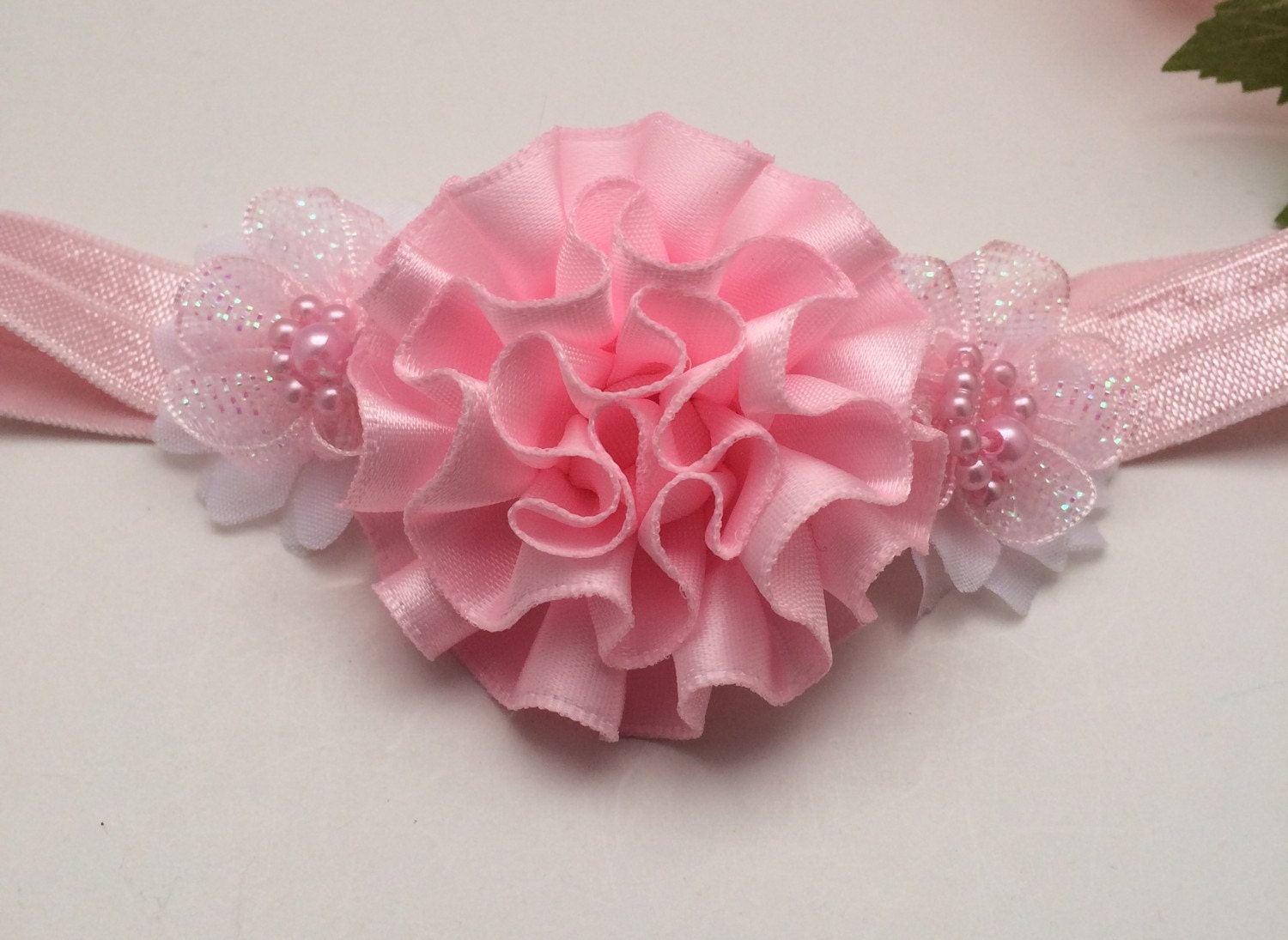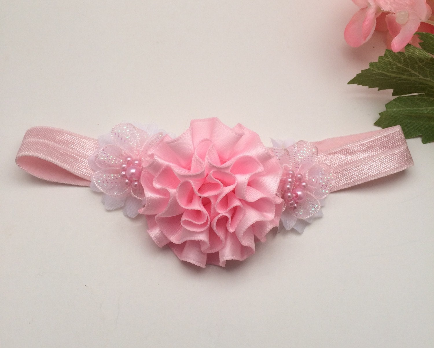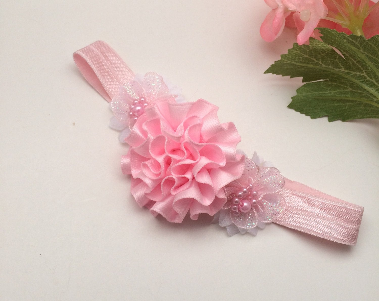 Pink & White Stretch Headband, photo prop headband, pink flower headband, baby shower gifts