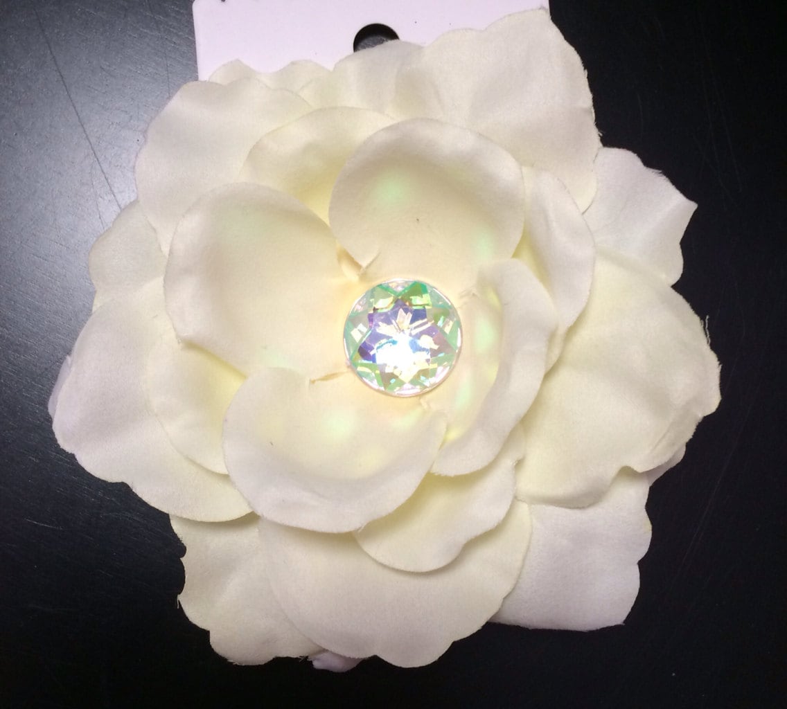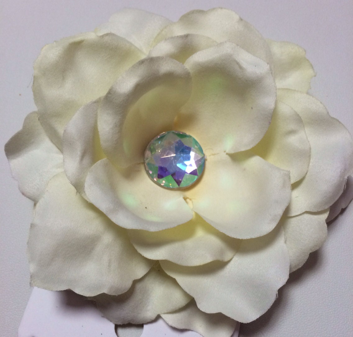 Light Pastel Yellow Embellished Rose Bridal Flower Clip - Ivory Rose Hair Clip, Ivory Hair clip