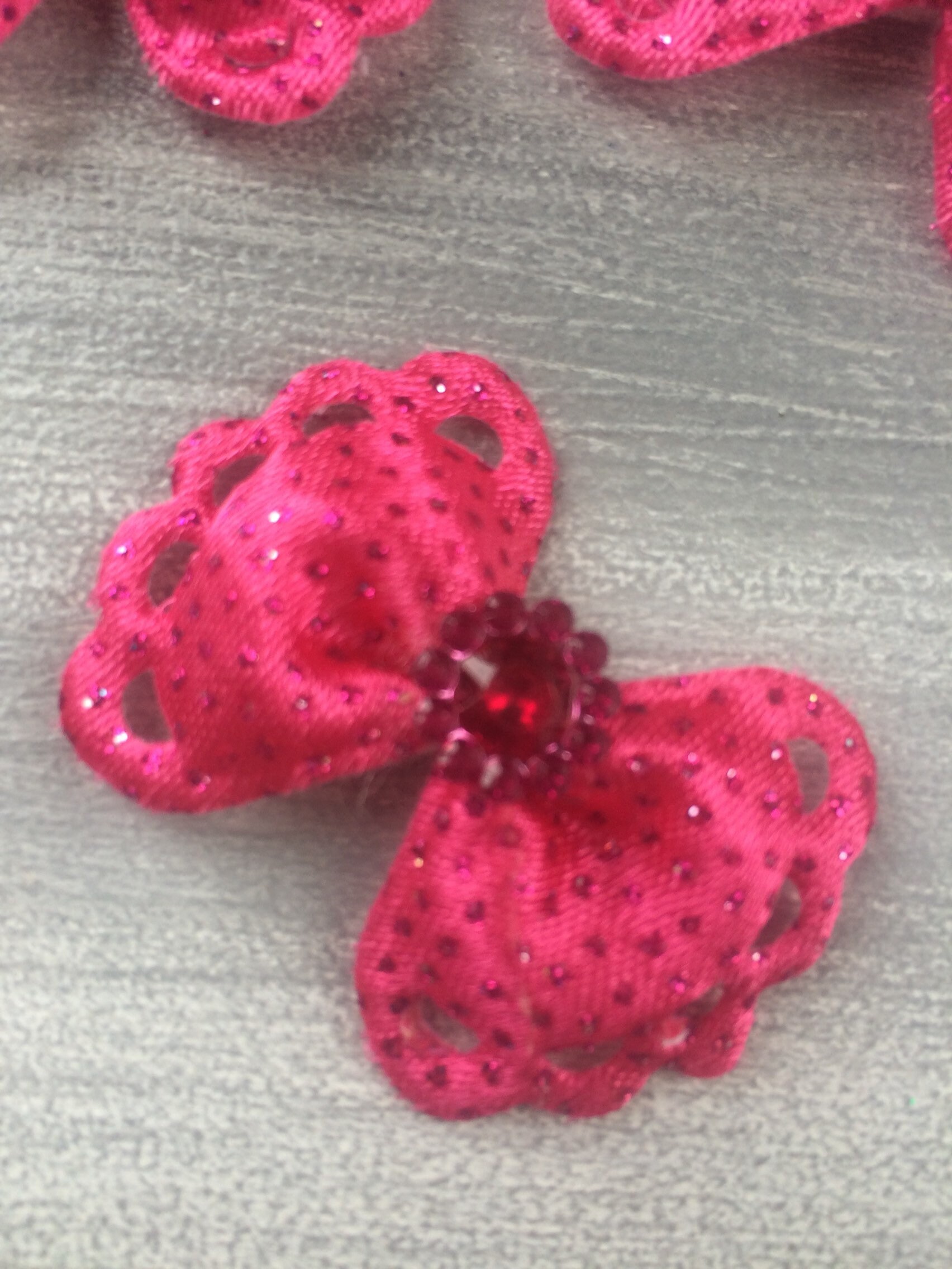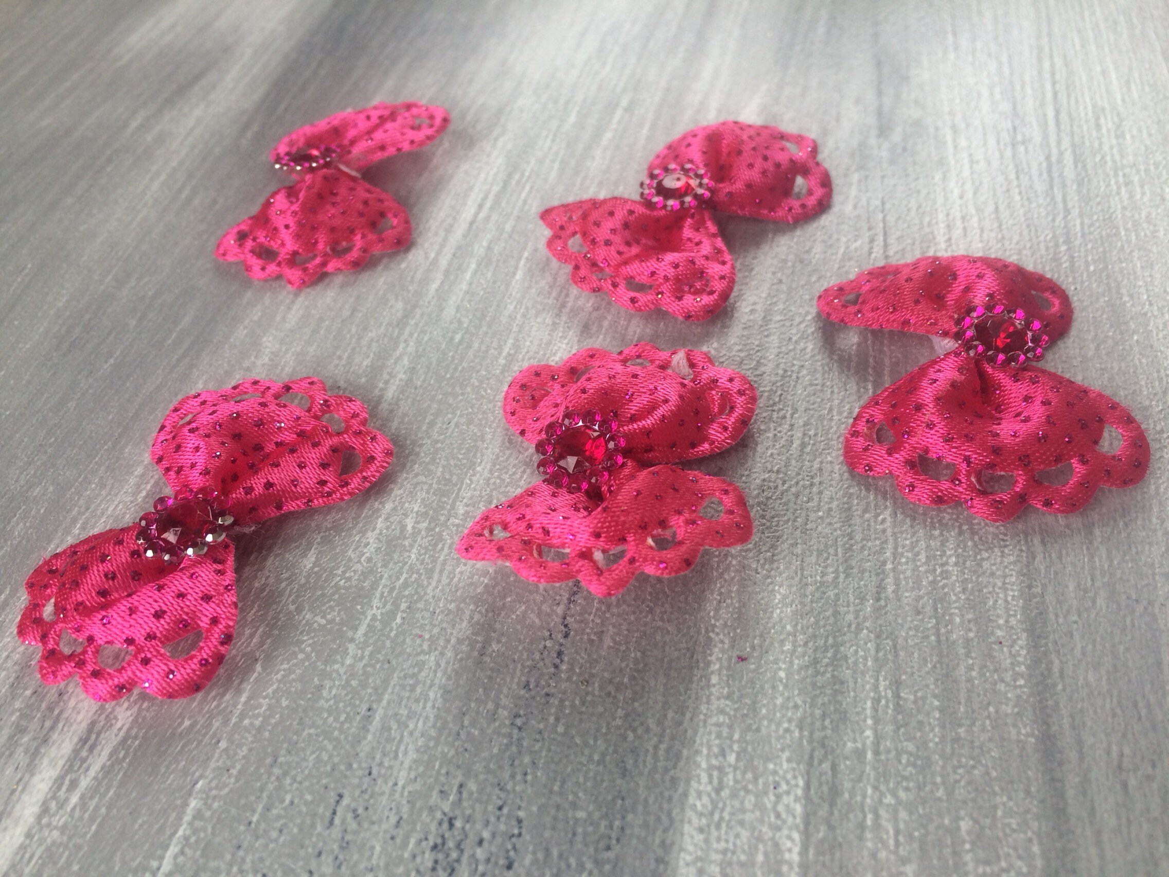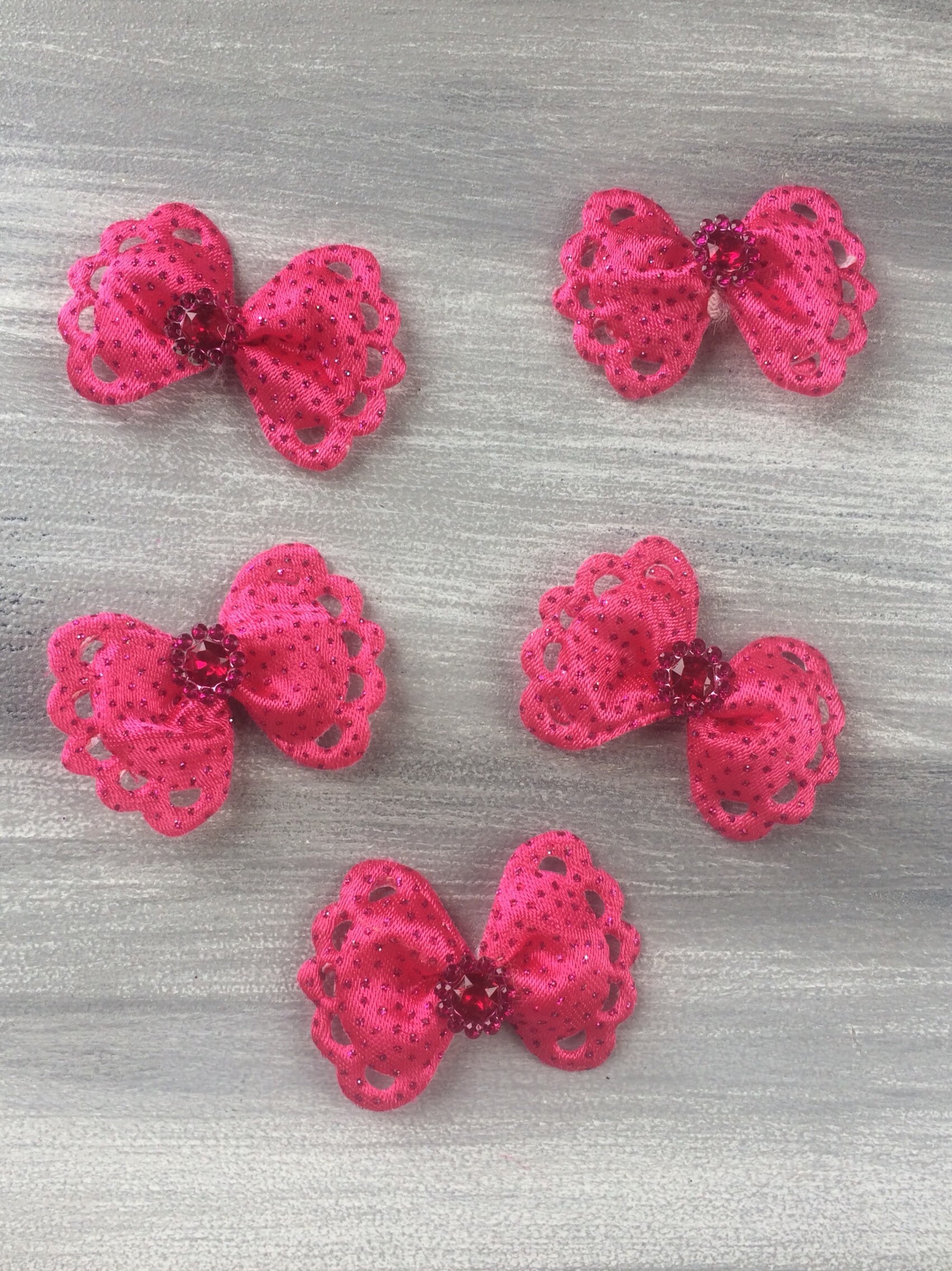Hot Pink Embellished Bow Applique - 5pc, craft appliques, sewing appliqués, Scrapbooking, craft supplies, wreath making embellishments, bows