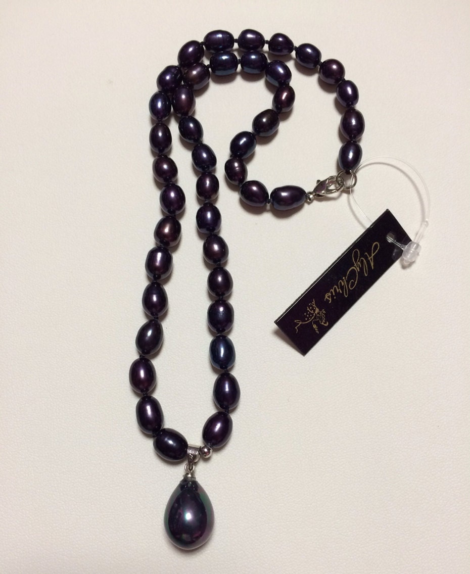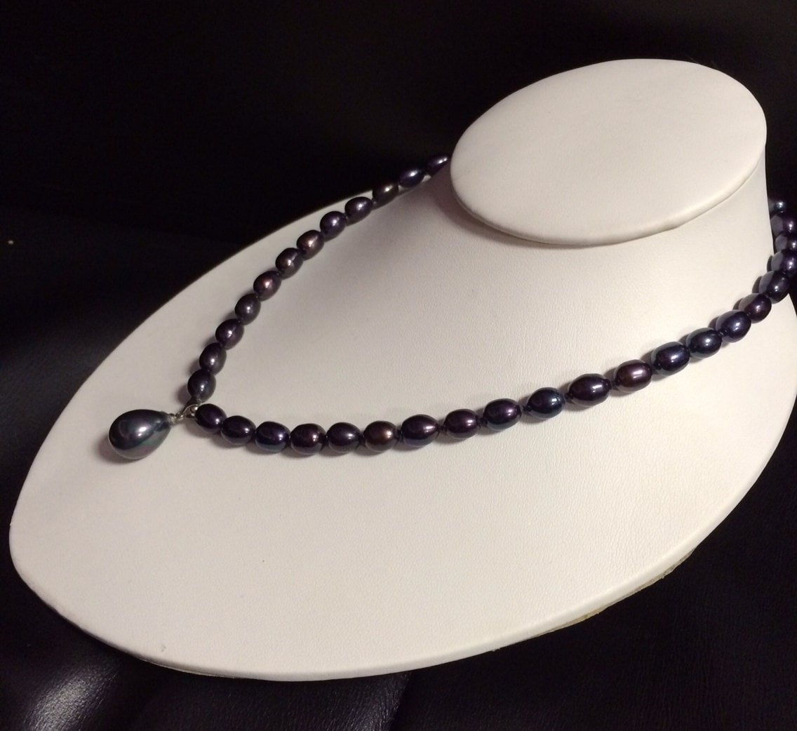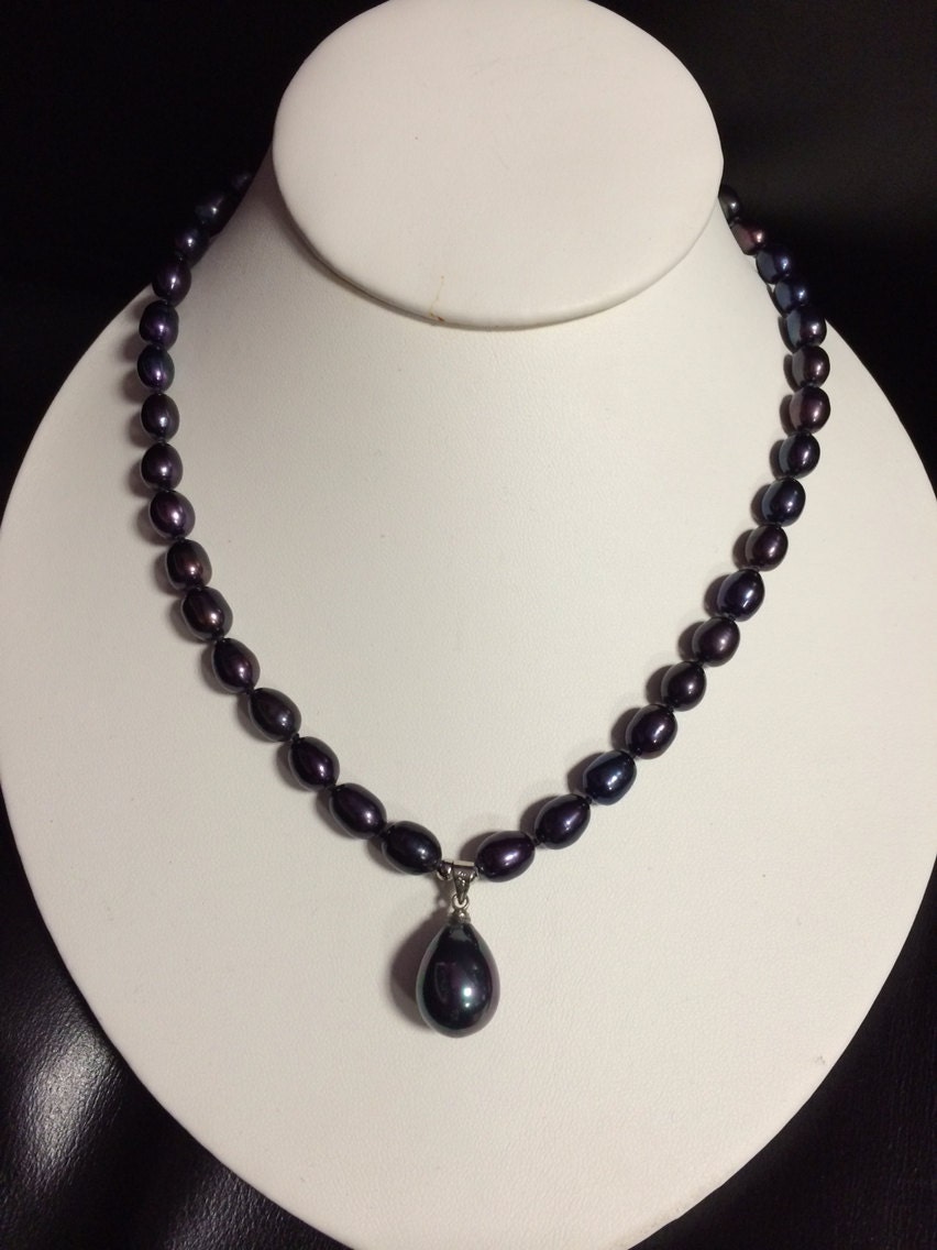 Black CFW Pearl & MOP Shell Pendant, Black Pearl Choker Necklace