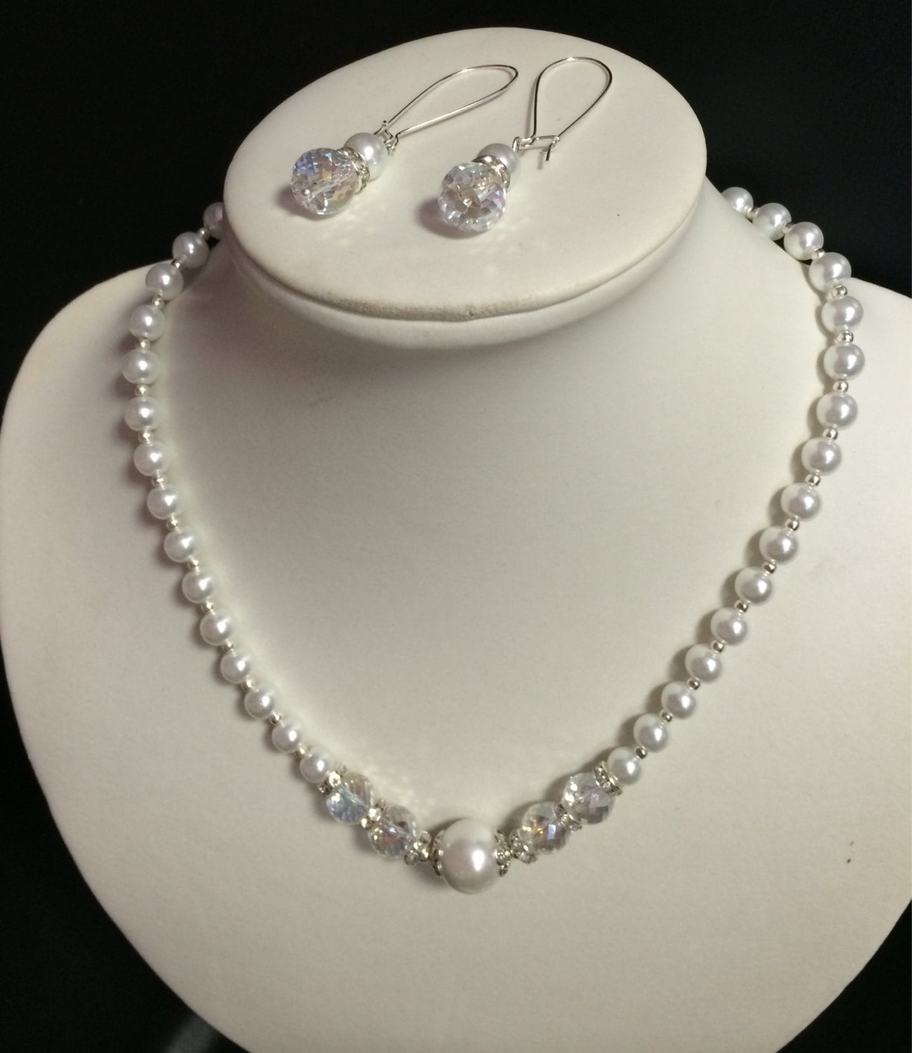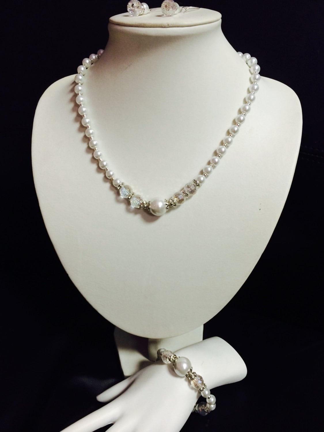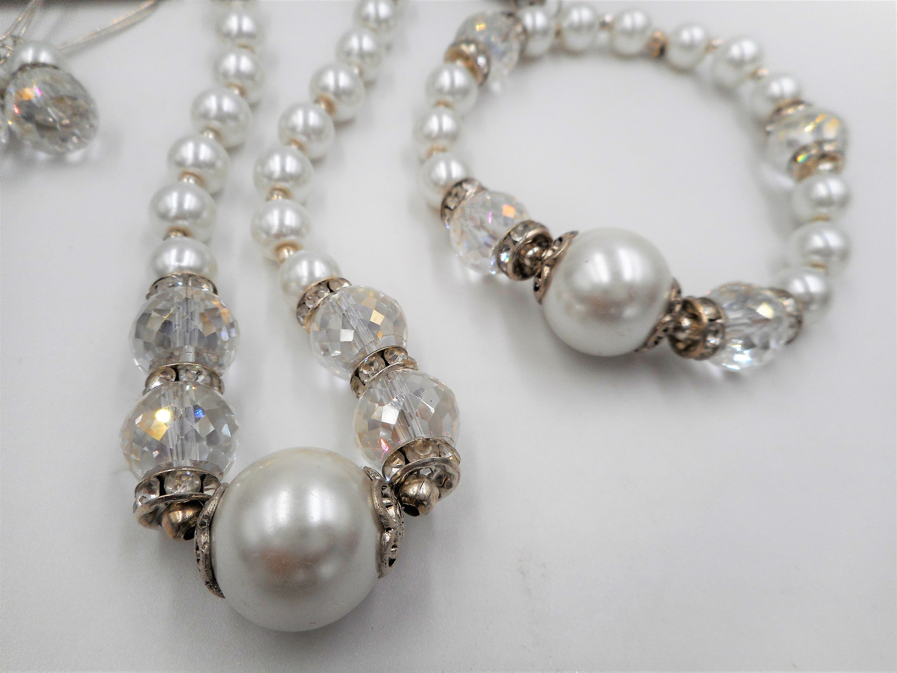 White Glass Pearl Beaded Crystal Necklace,Bracelet & Earring Set, Wedding jewelry, Crystal jewelry, Crystal necklace, Pearl Bridal Set