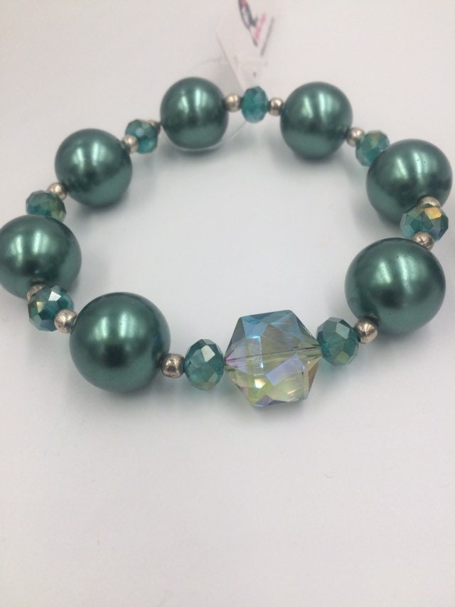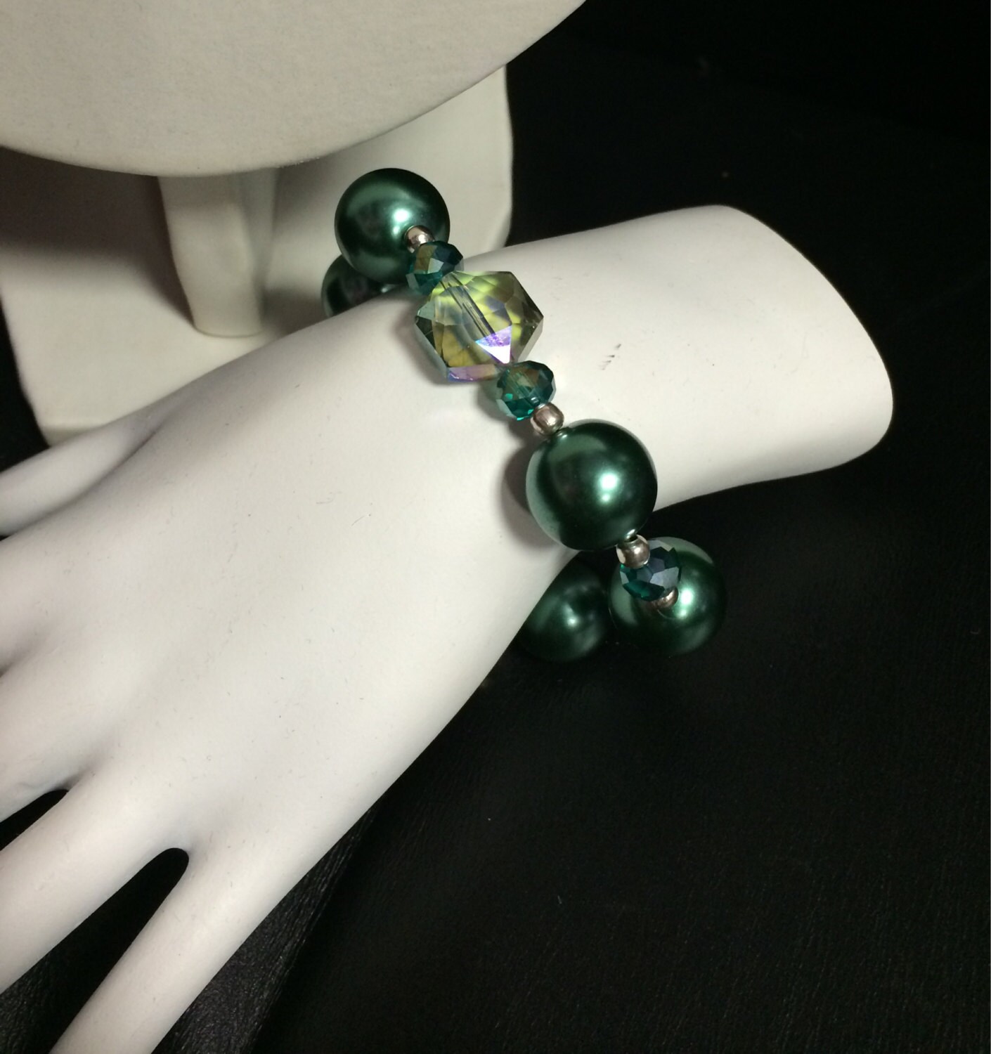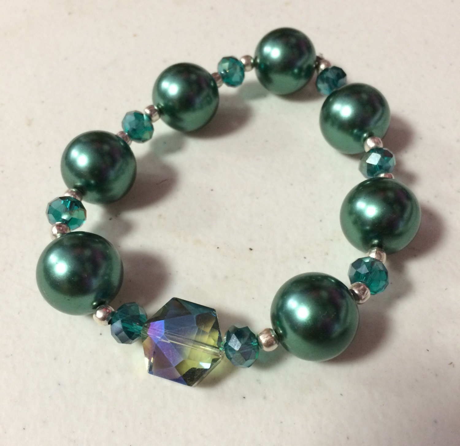 *7" Stretch bracelet with 16mm green glass pearl bead