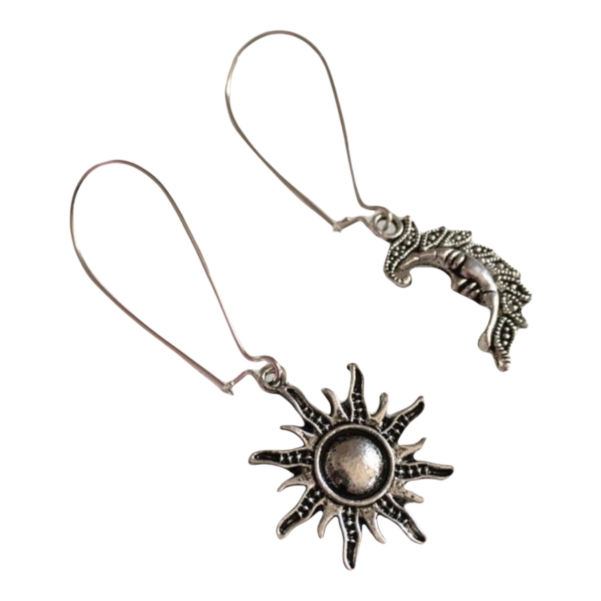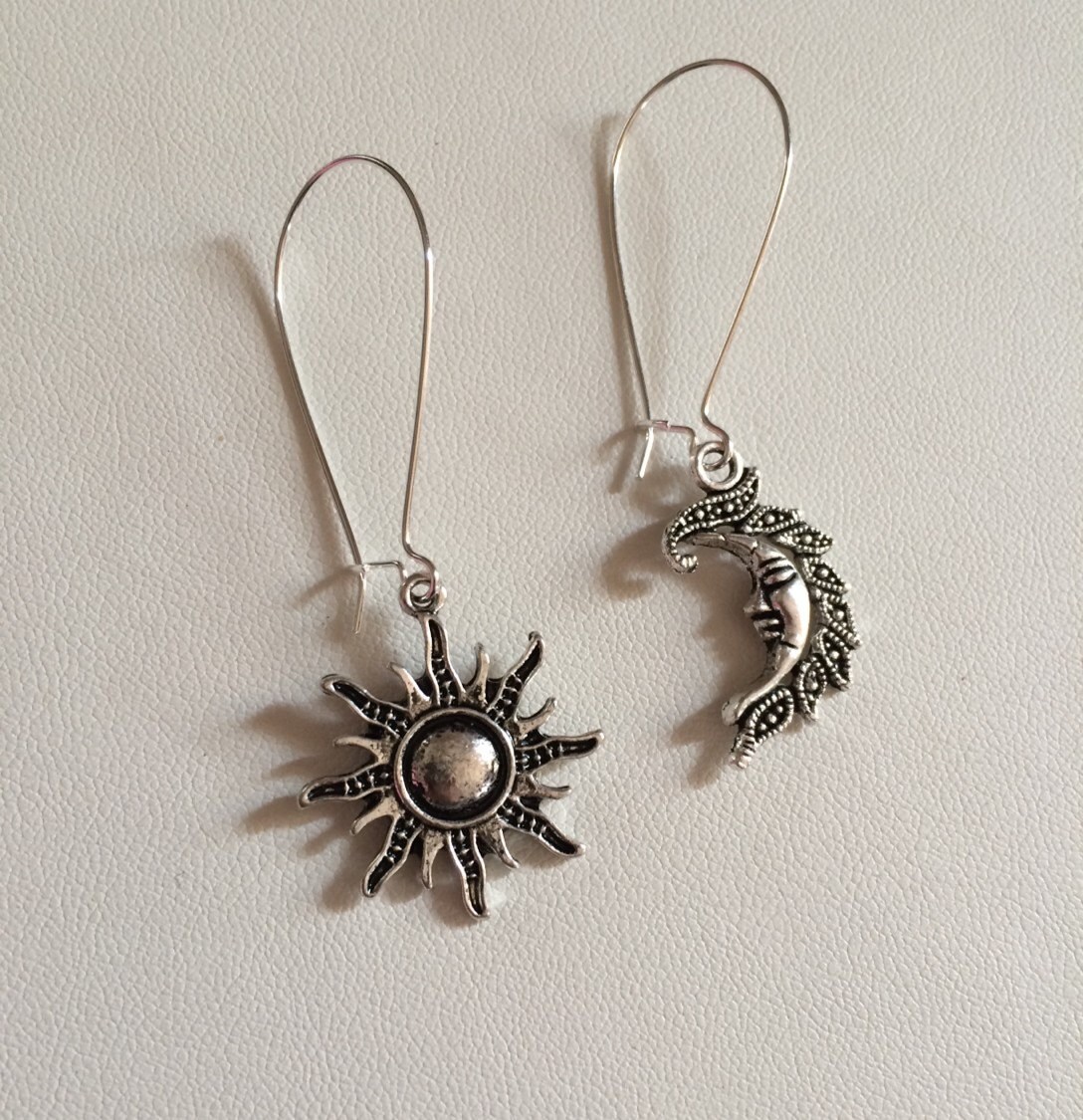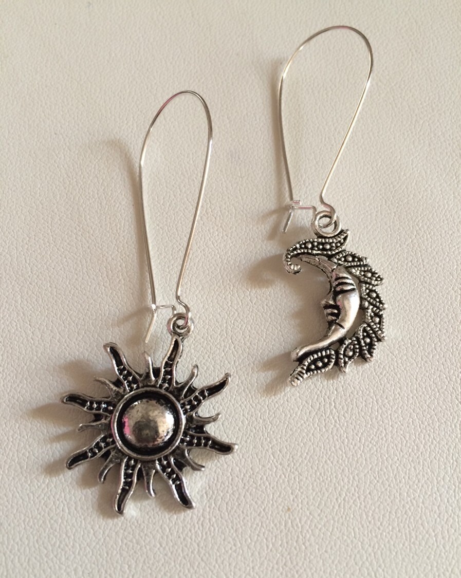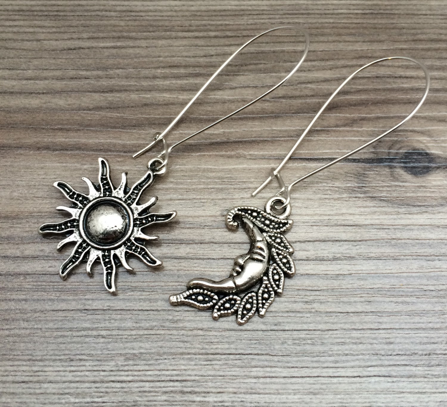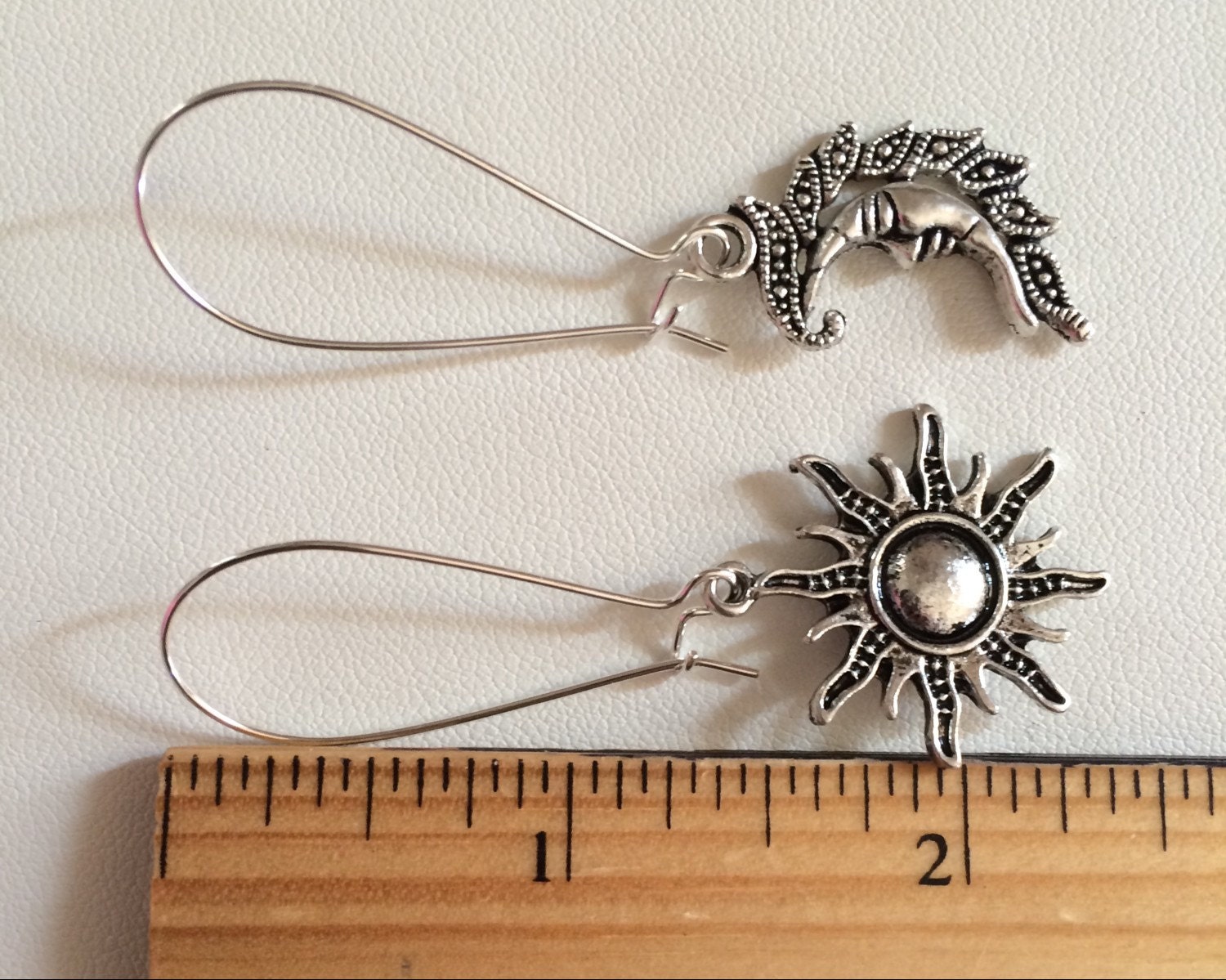 Sun and Moon Charm Dangle Earrings; sun jewelry, sun and moon jewelry, bohemian earrings, hippie, dangle sun and moon, gifts for friendship