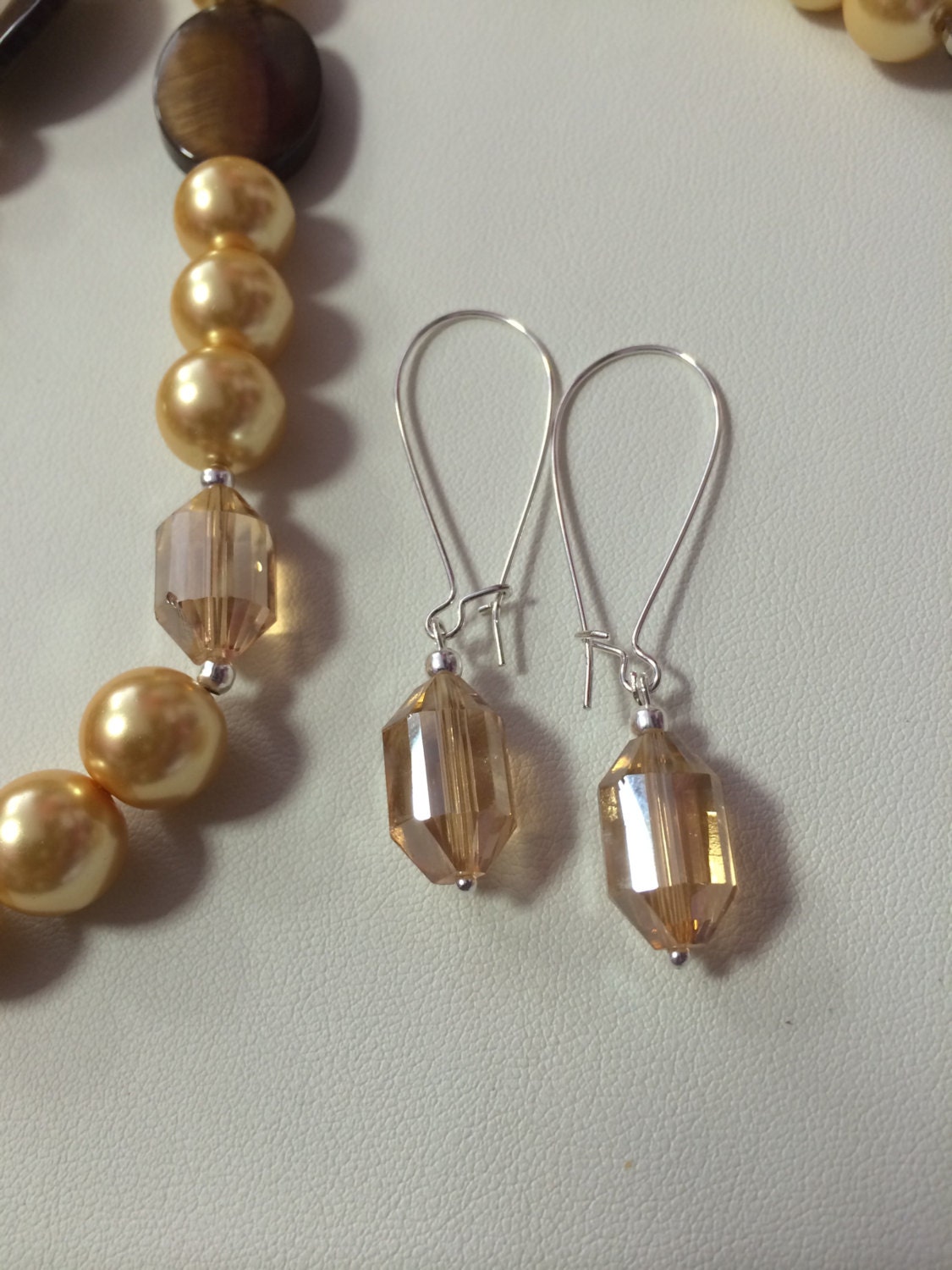 Earrings: crystal beads on kidney earwire total drop 2 1/4"L