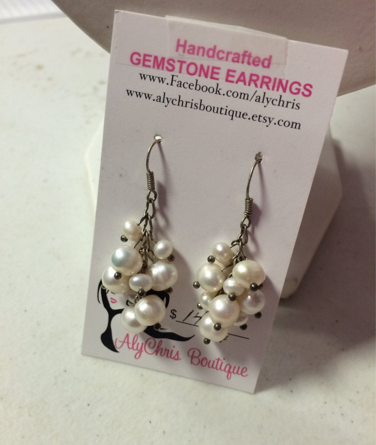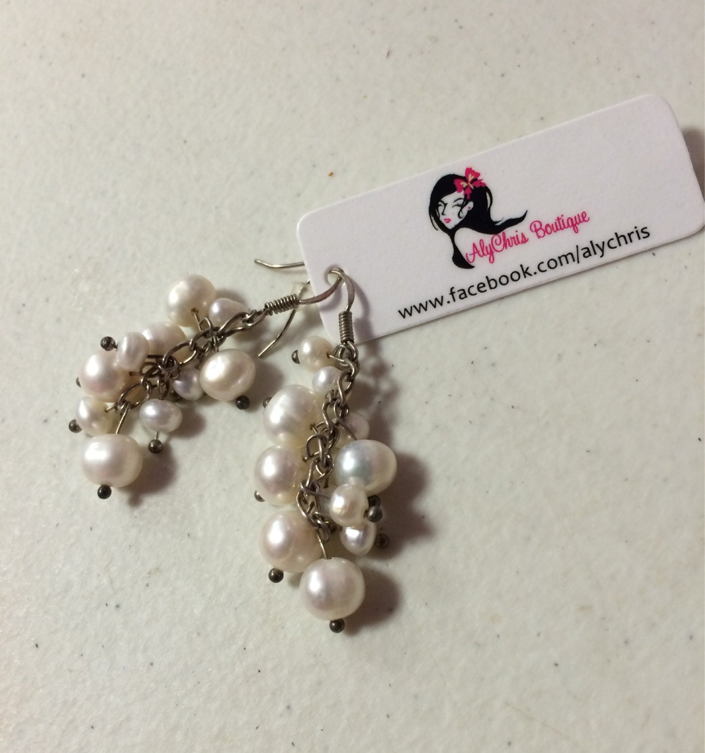 Pearl Earrings, White Cultured Freshwater Pearl Beaded Dangle Earrings