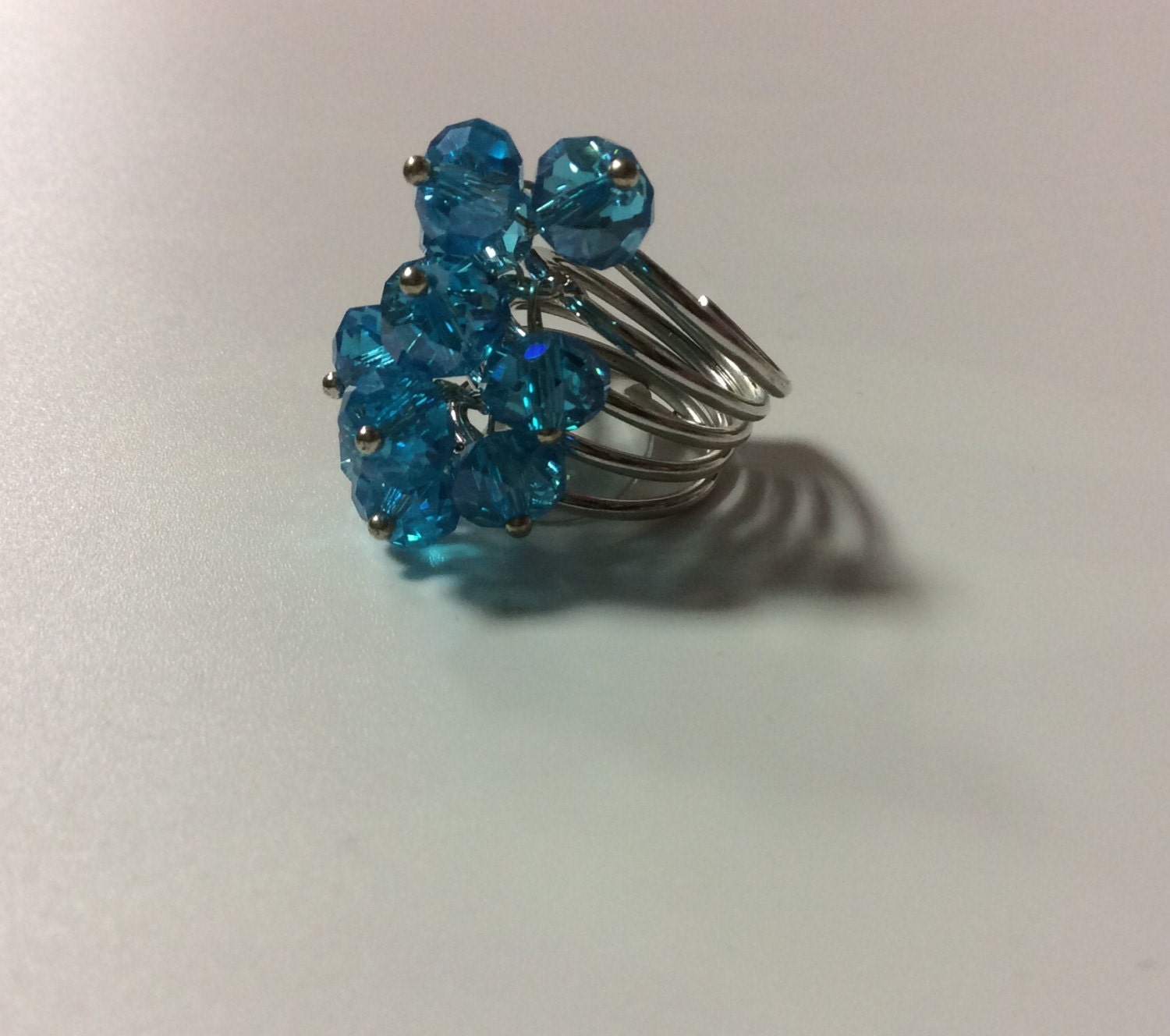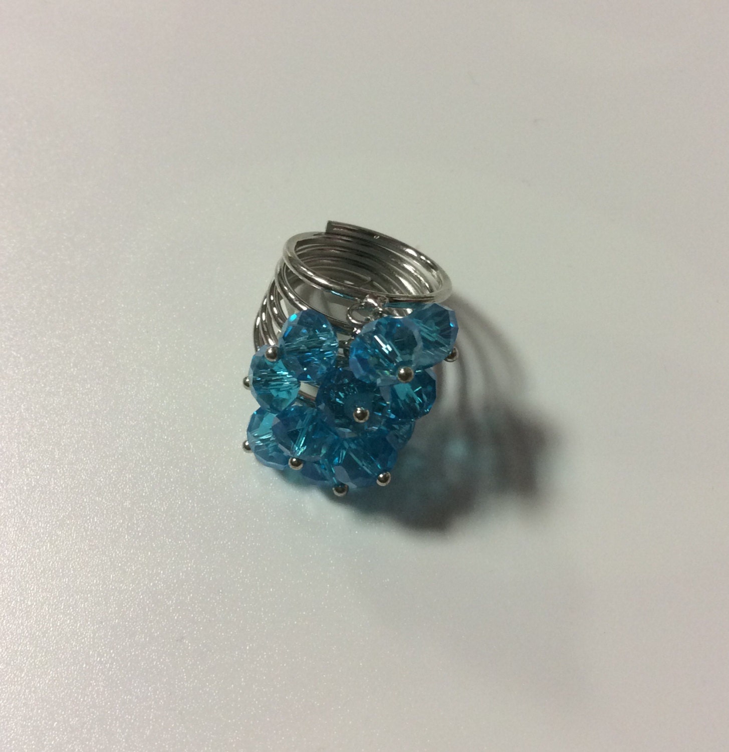 Turquoise Faceted Crystal Beaded Dangle Ring, Statement Ring, Crystal Ring, Beaded Ring, Turquoise Blue Crystal Ring, Prom Jewelry