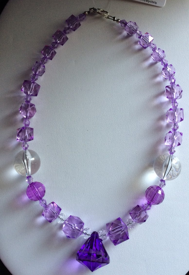 Girls Chunky Lavendar & Purple Beaded Necklace, Lace Headband, Flower Clip Gift Set - bubblegum jewelry, Birthday necklace, Purple Birthday