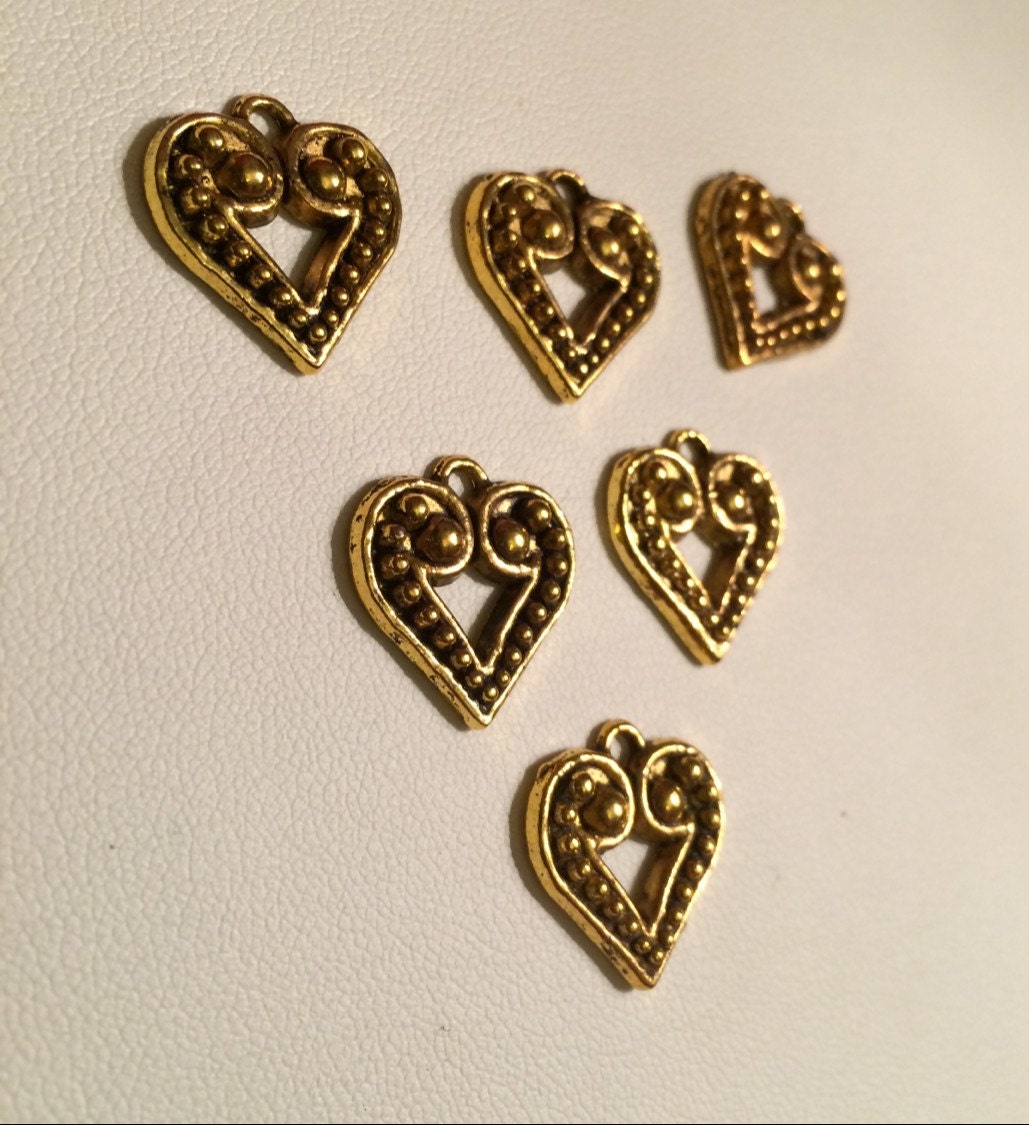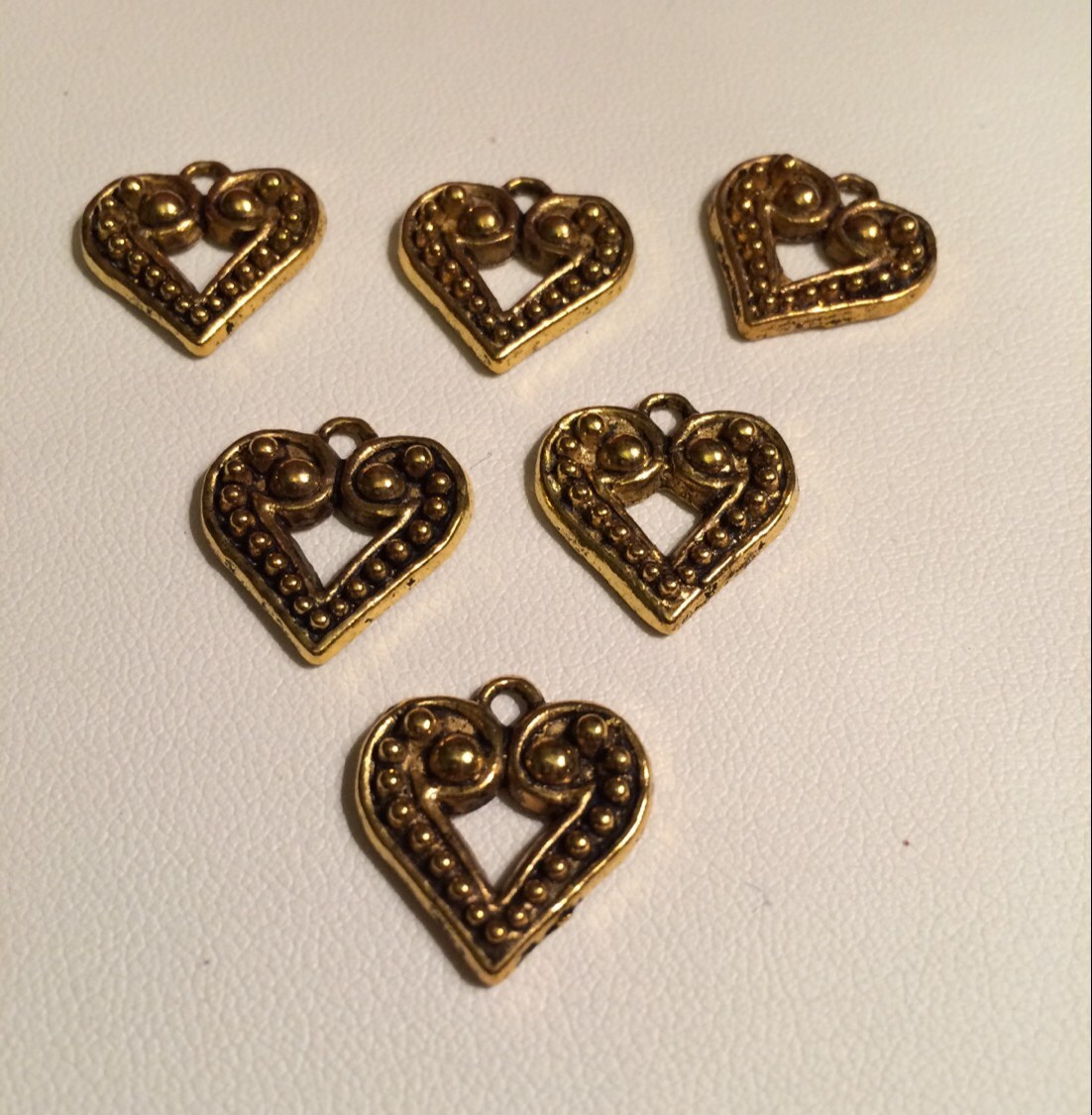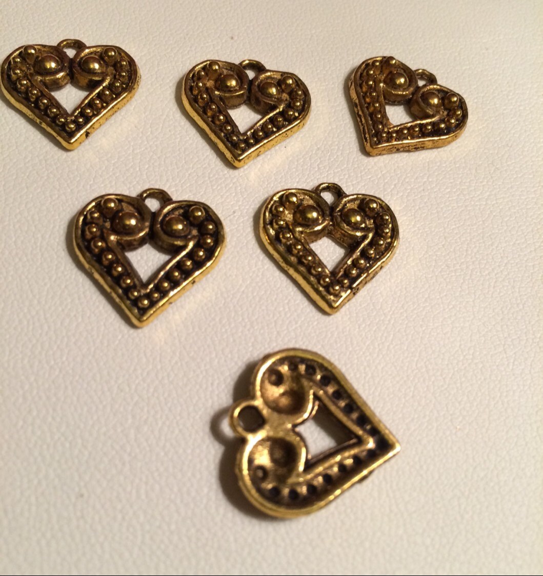 Heart Charm Antique Goldtone - 6 pieces, Destash, Loose, diy, supplies, charms, findings