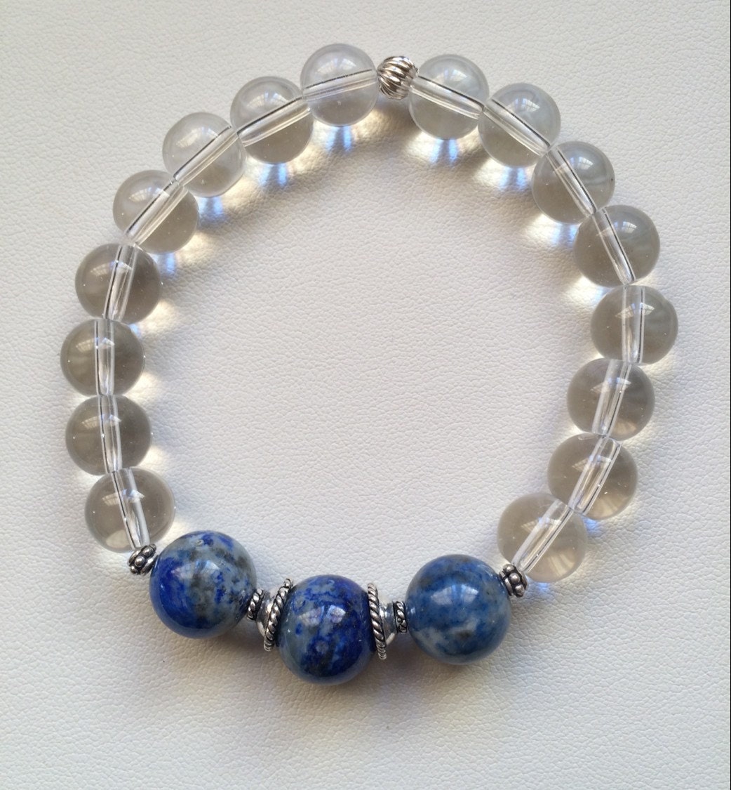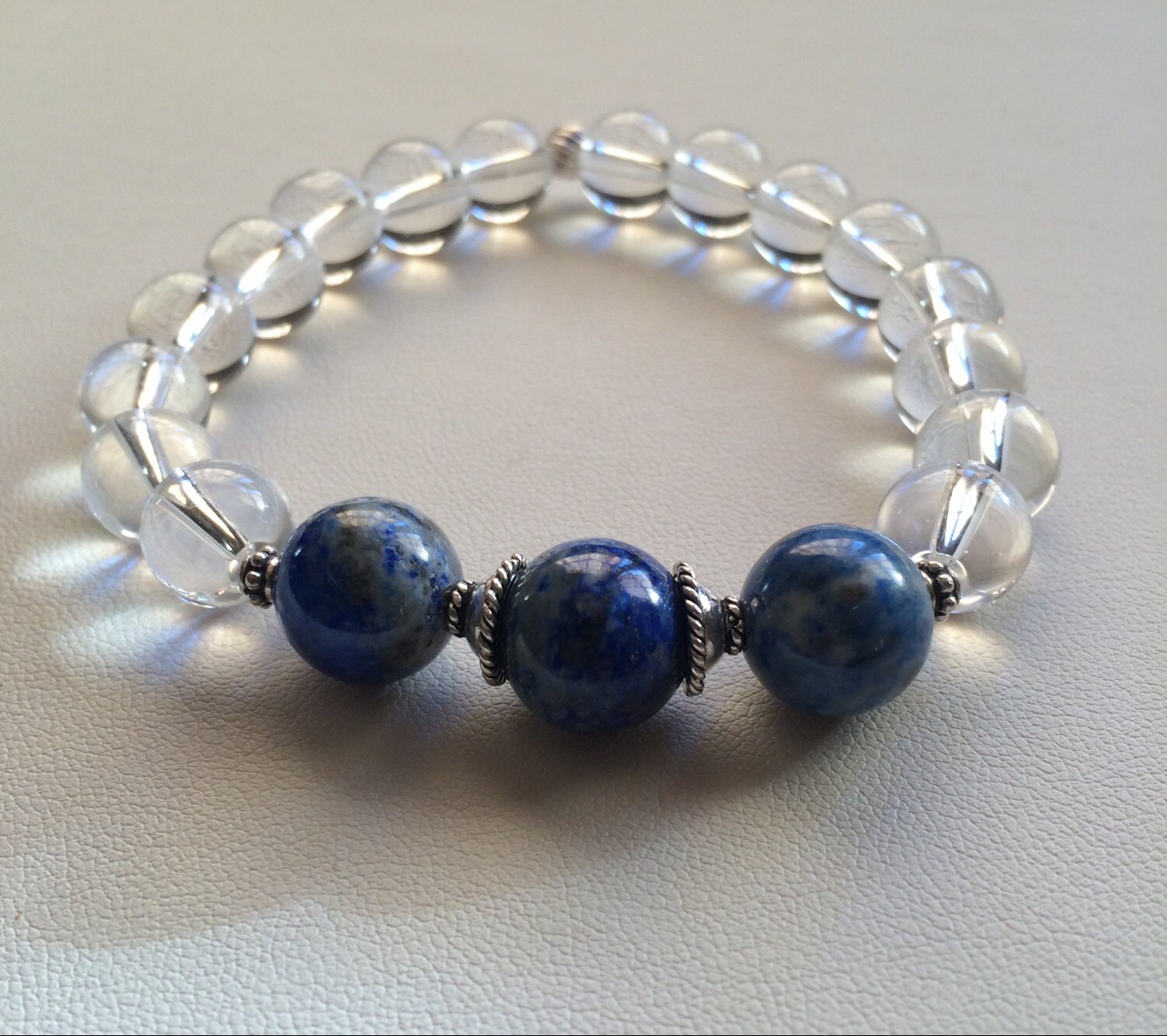 Sterling Silver Lapis Lazuli & Crystal Gemstone Beaded Bracelet