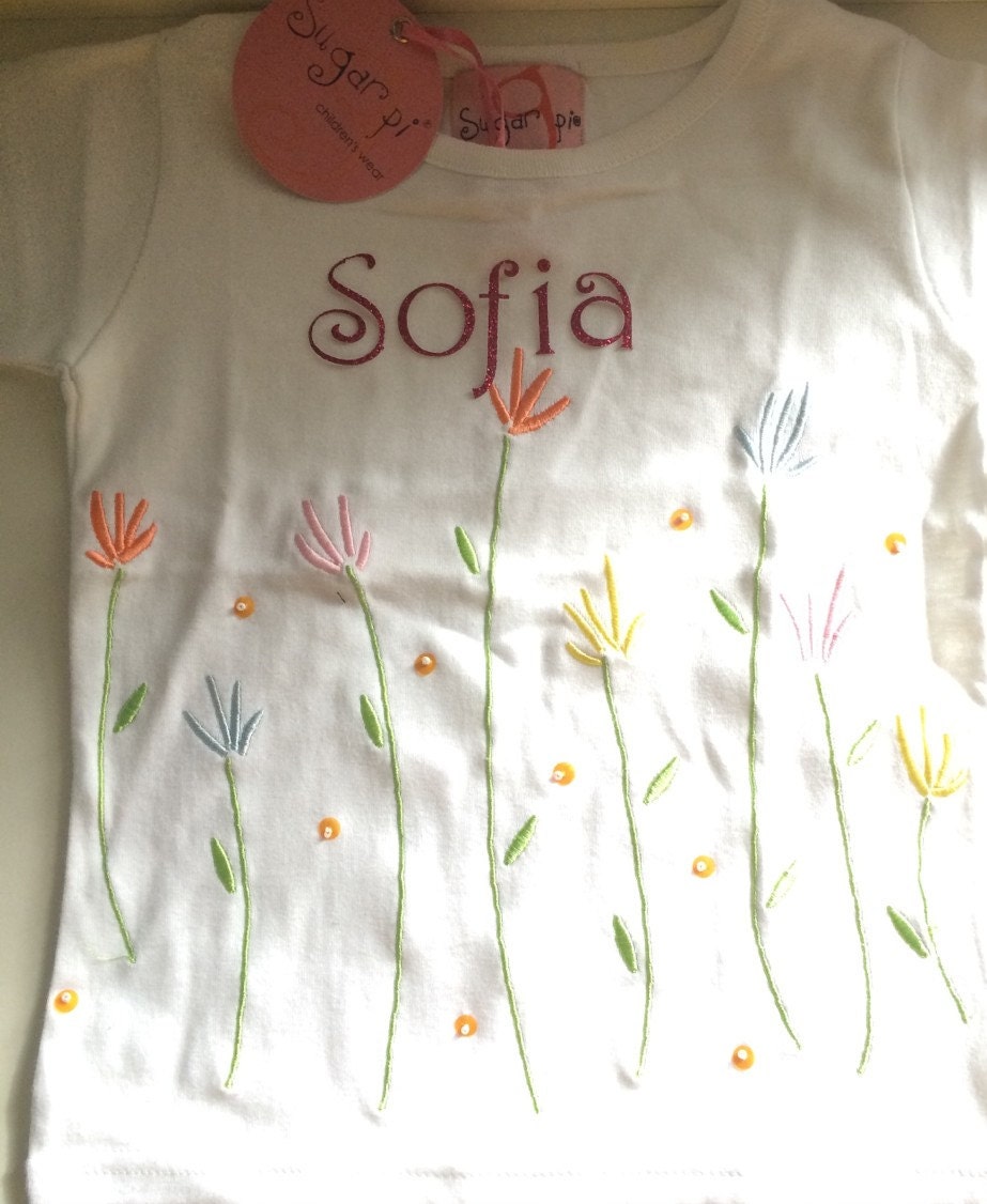 White Short sleeve embroidered floral design, 24mth, Name shirt, Toddler Tshirt, Personalized Tshirt, Birthday Tshirt