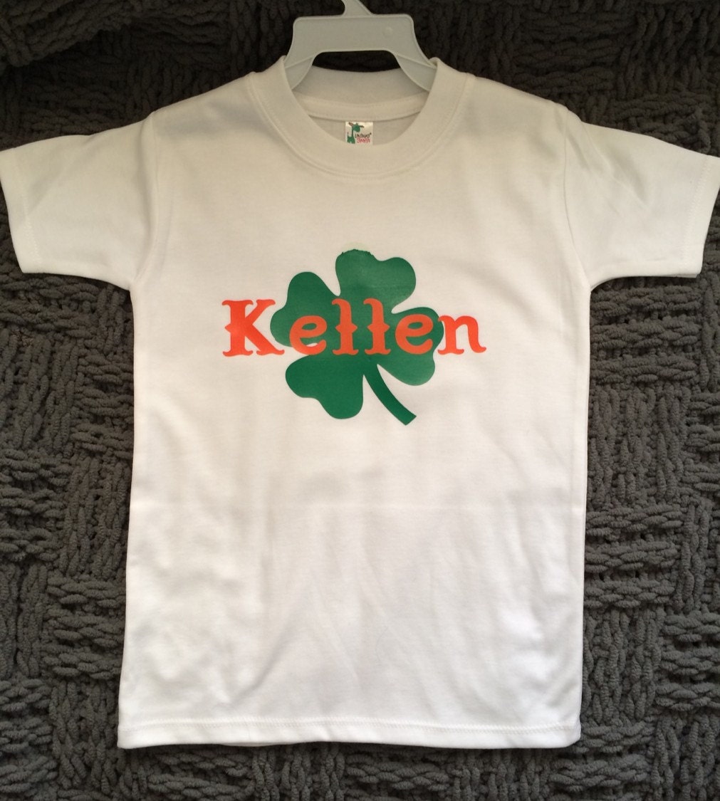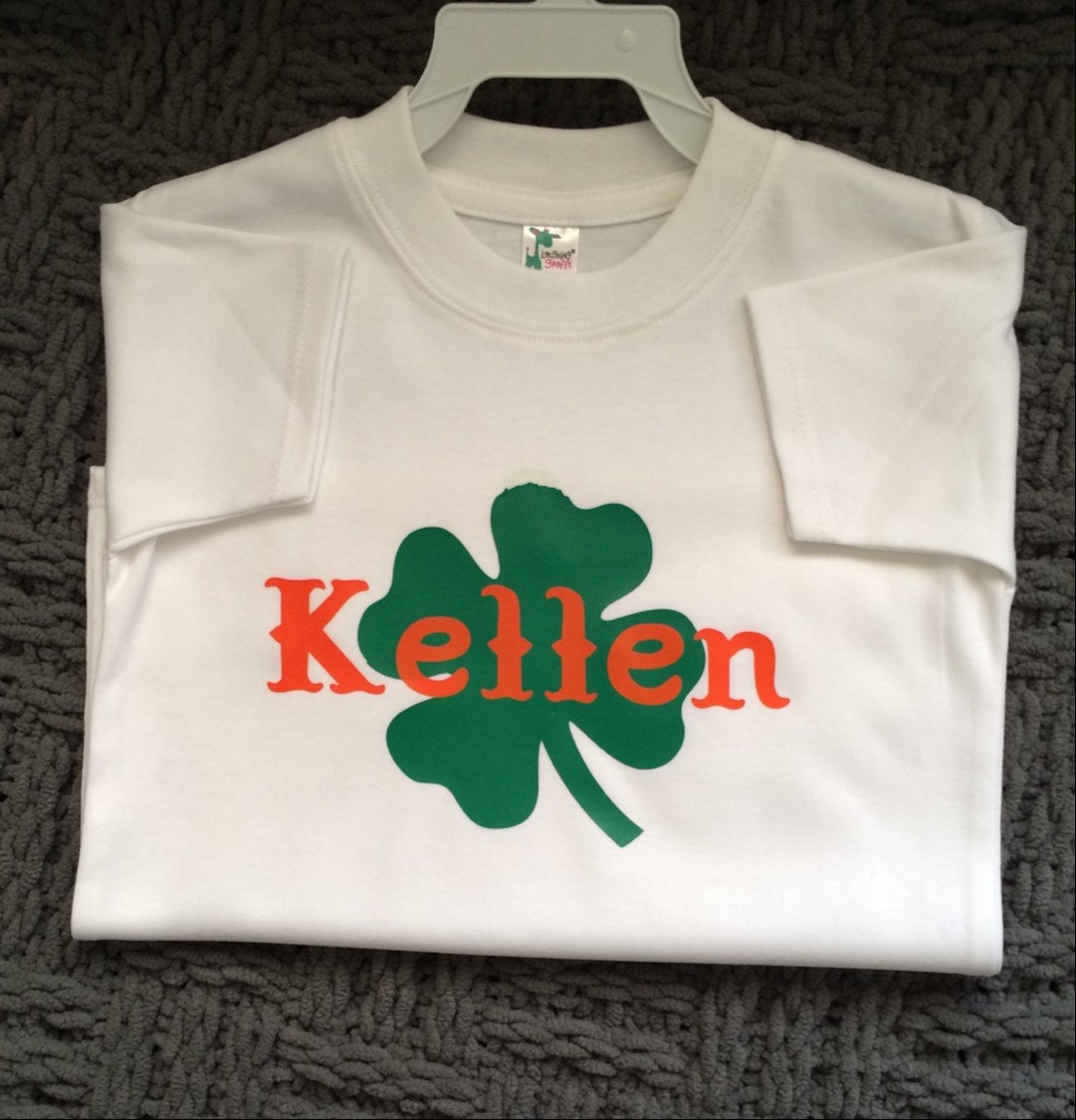 Shamrock & Name Personalized Irish white short sleeve bibs & T-shirts for Baby, Toddler & Youth