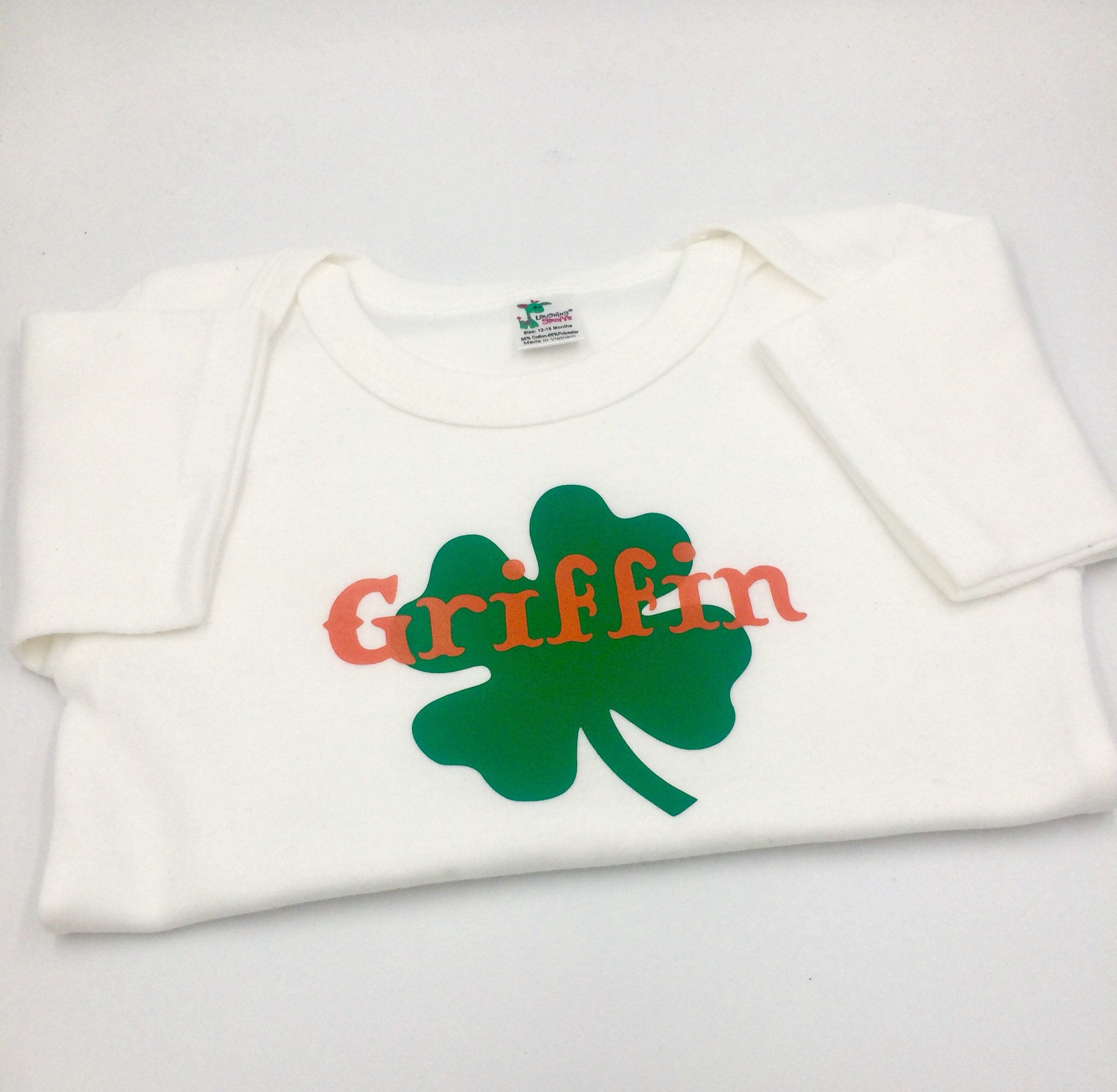 St Patricks Day shirts, Shamrock & Name, Personalized Baby TShirt, Personalized Tshirts, Personalized bibs, baby bodysuit, Name Shirts,