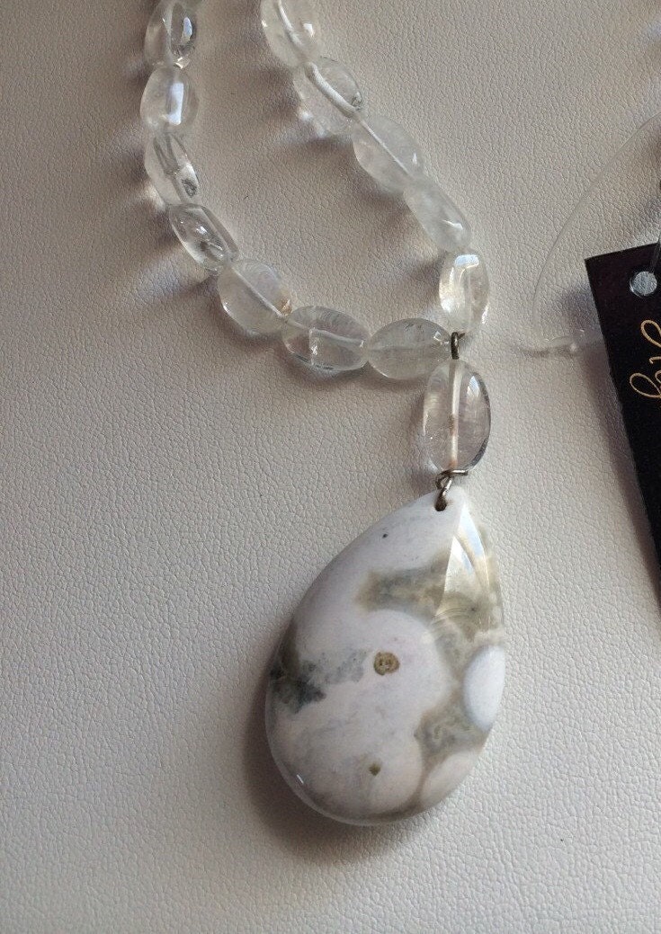 Ocean Jasper & Crystal Necklace, Jasper necklace, Gemstone necklace, Ocean Jasper pendant