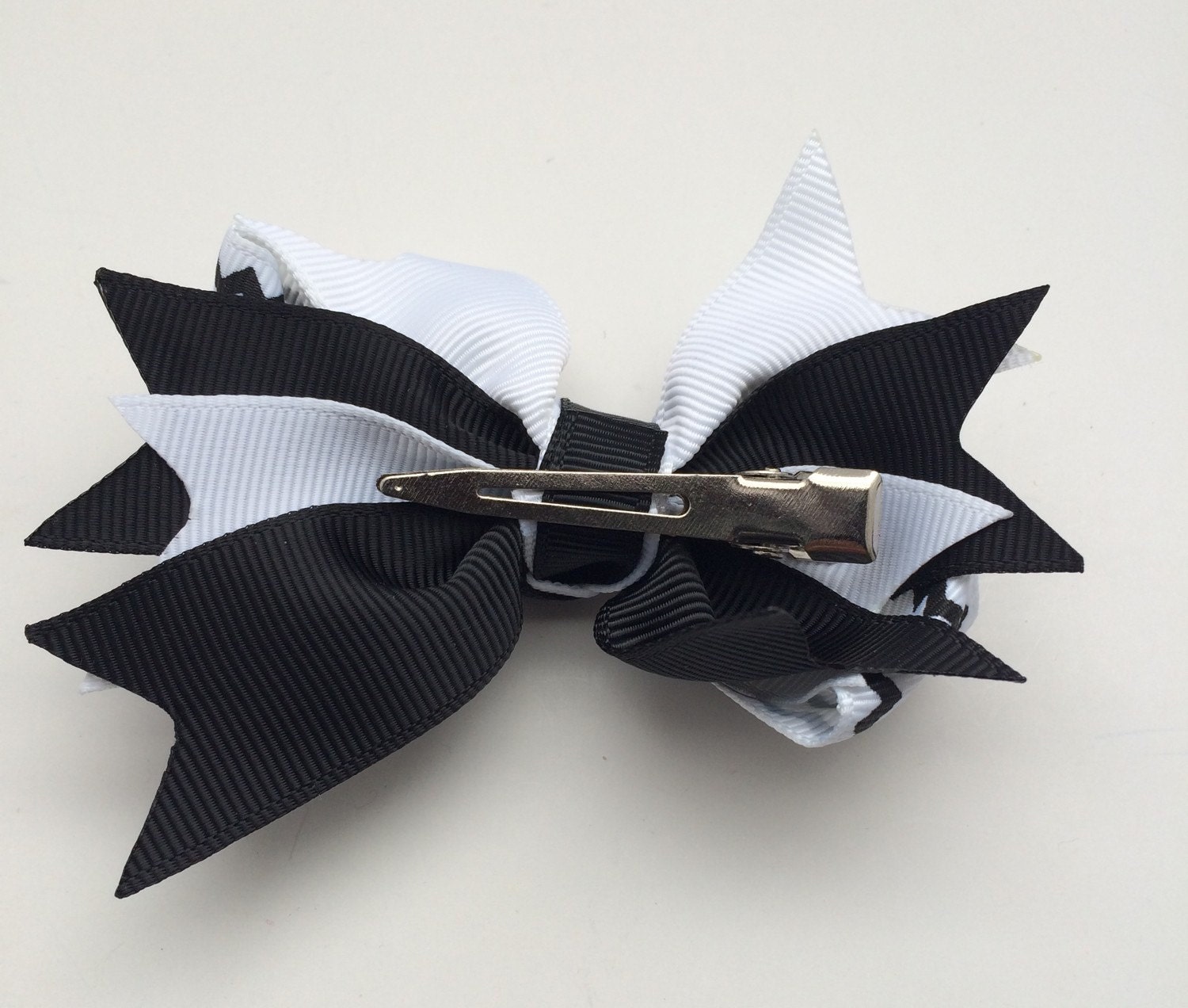 Black Chevron Print Ribbon Bow Hair Clip, Bow Clip, Hair Bow, Chevron Hair clips