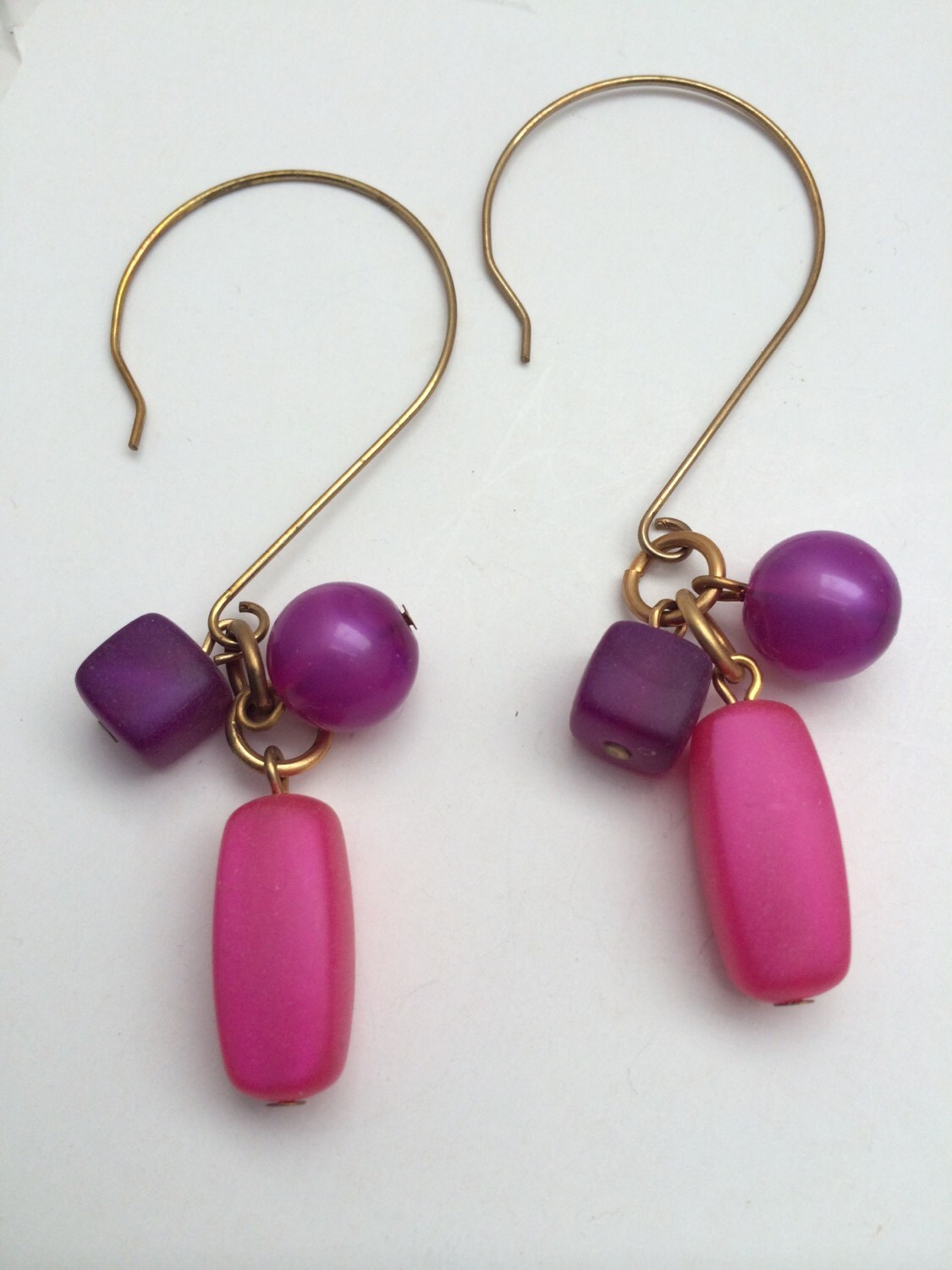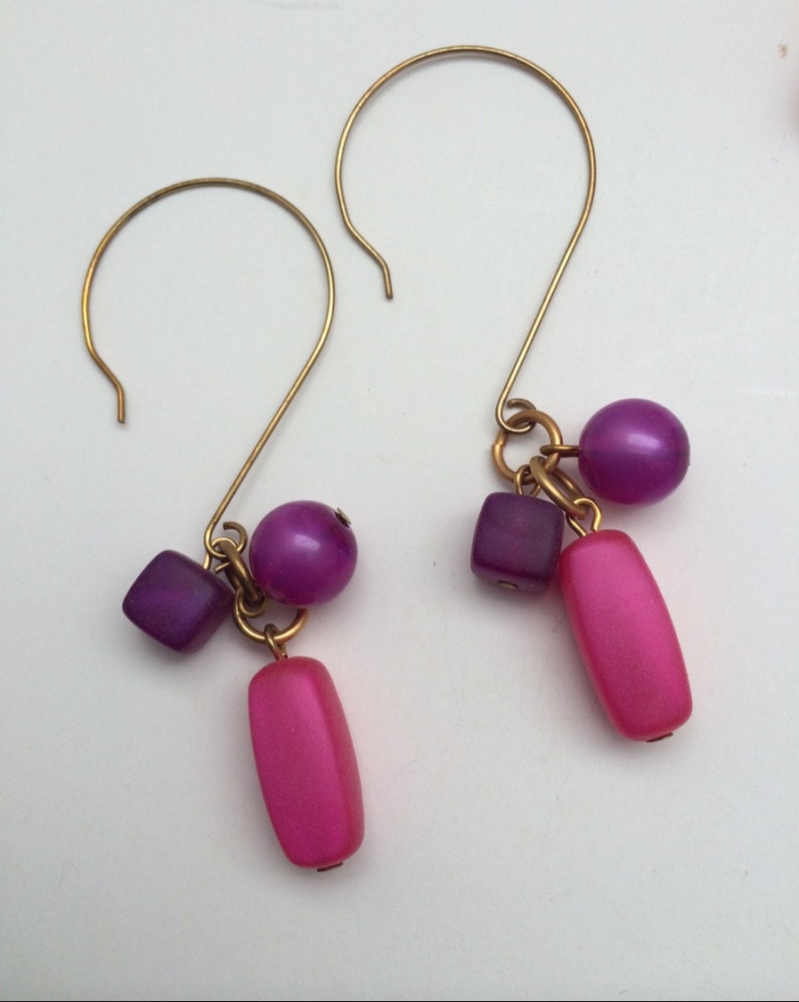 Beaded drop earrings, Pink & Purple frosted bead earrings, bohemian earrings, Dangle earrings