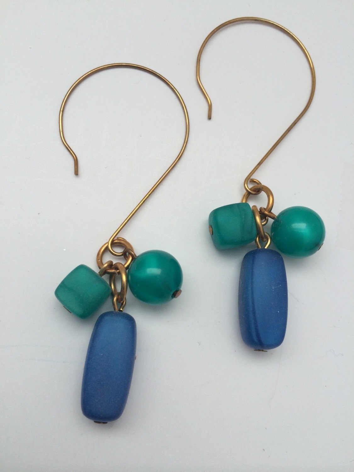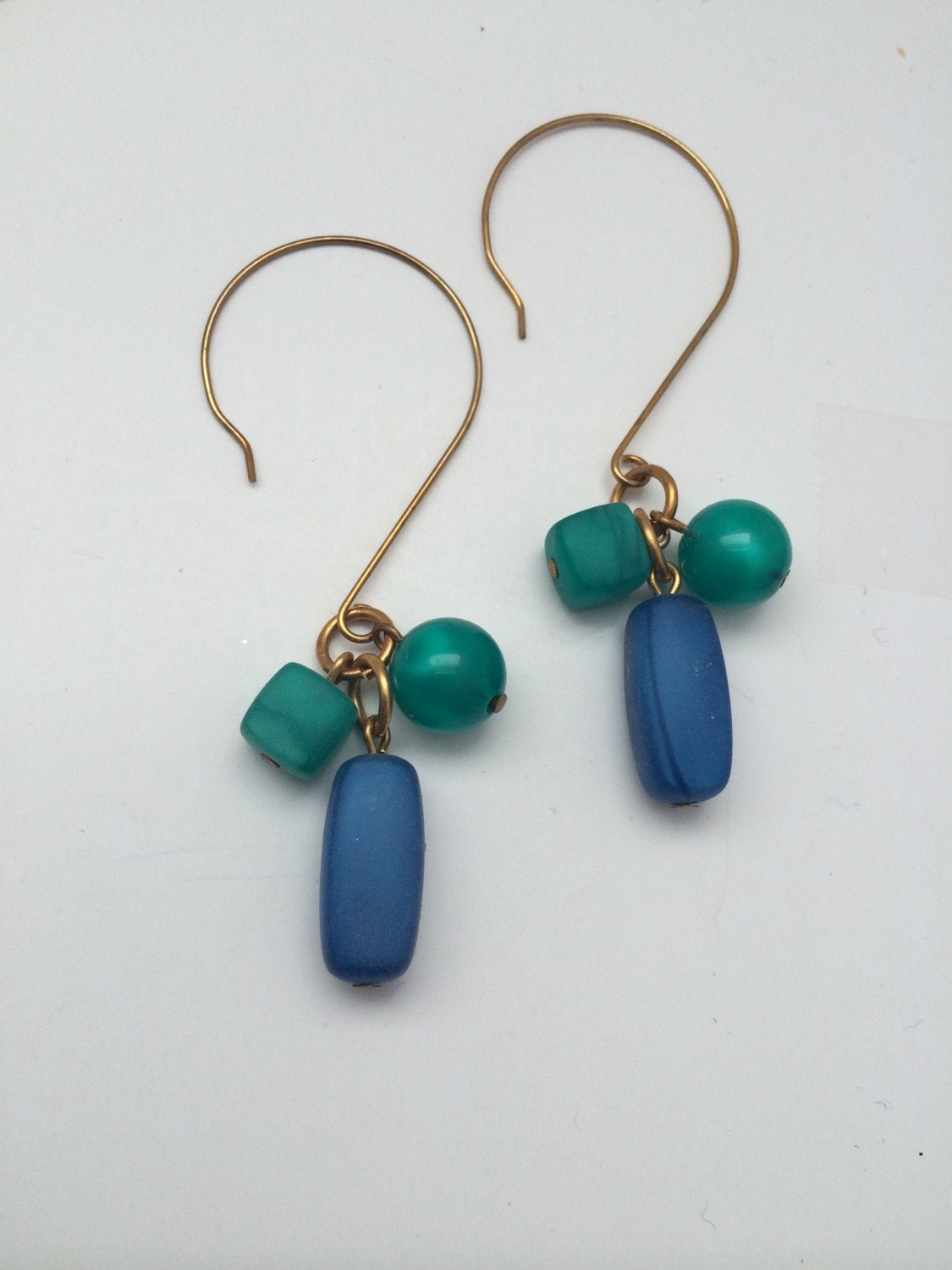 Blue & Green Beaded drop earrings, frosted bead earrings, bohemian earrings, Dangle earrings