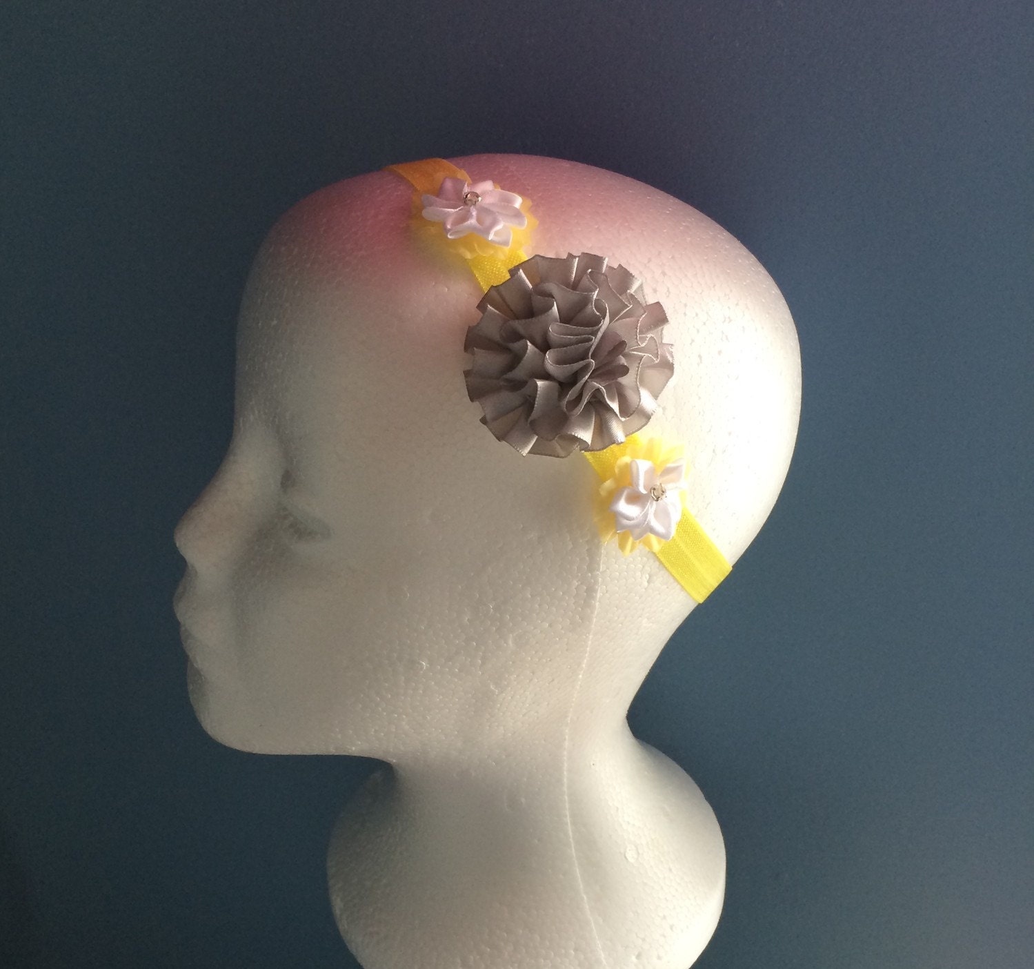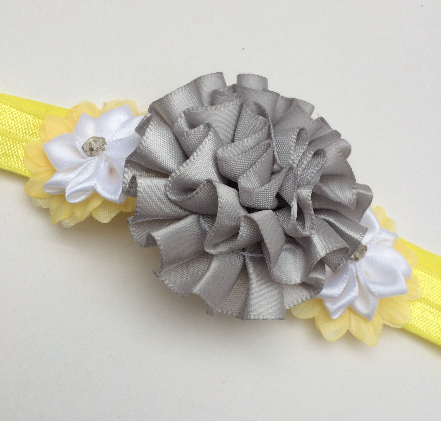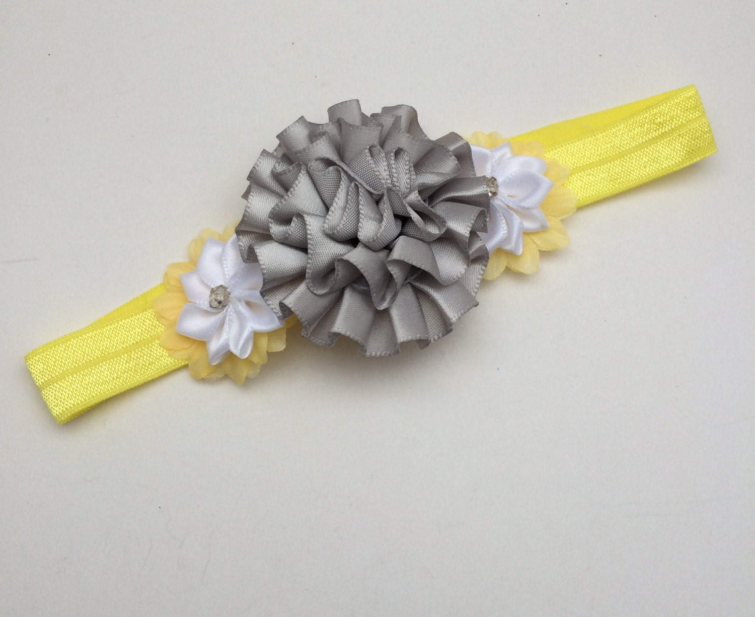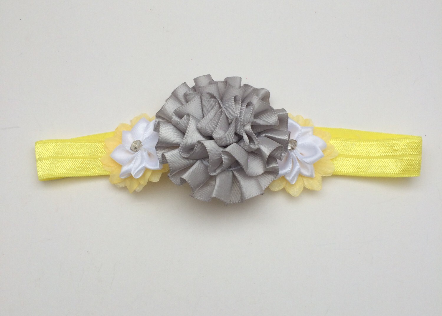 Yellow & silver Peony Stretch Headband, photo prop headband, flower headband, baby shower gift, newborn headband, toddler headband