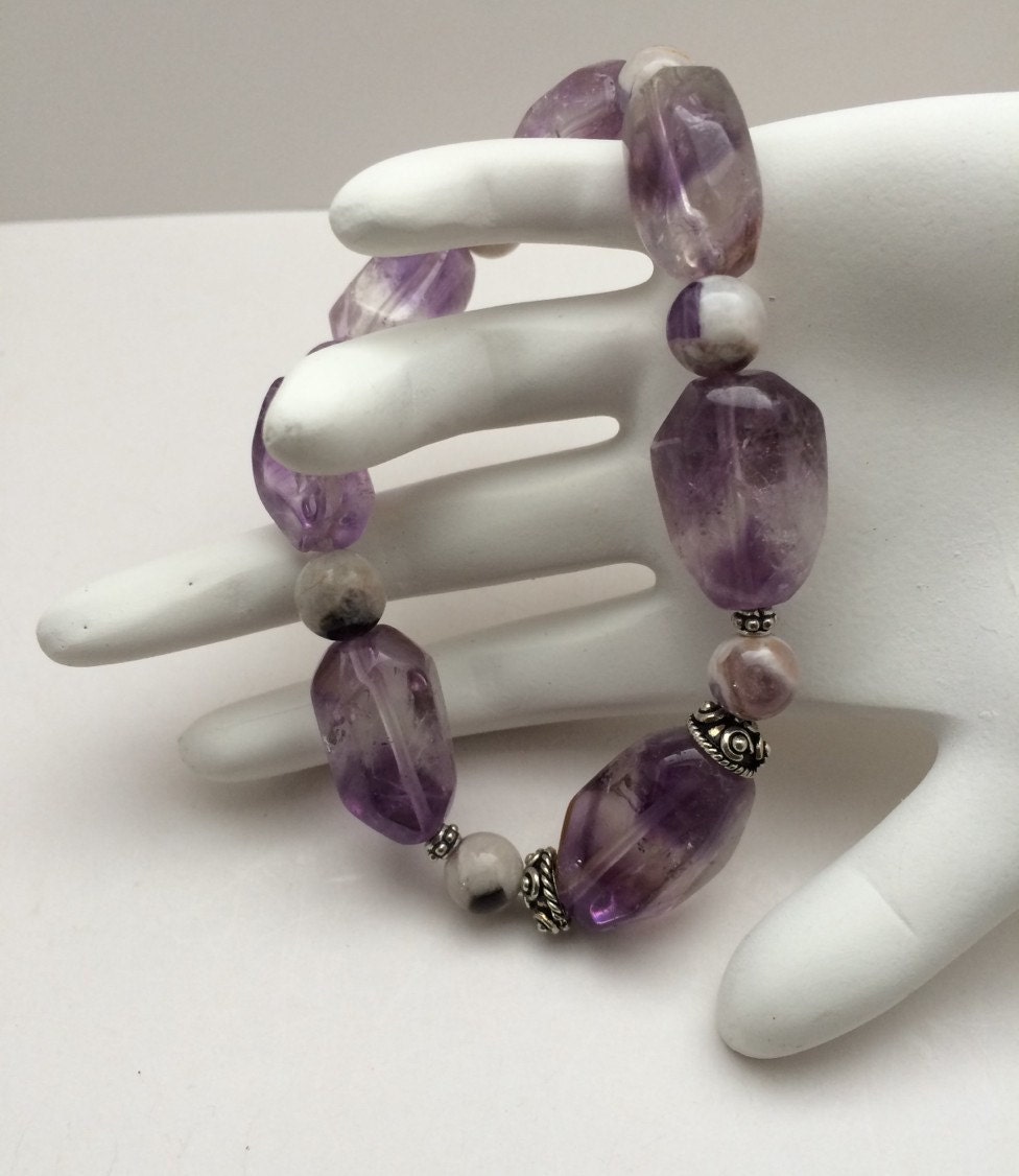 Sterling Silver Amethyst Nugget Gemstone Beaded Bracelet