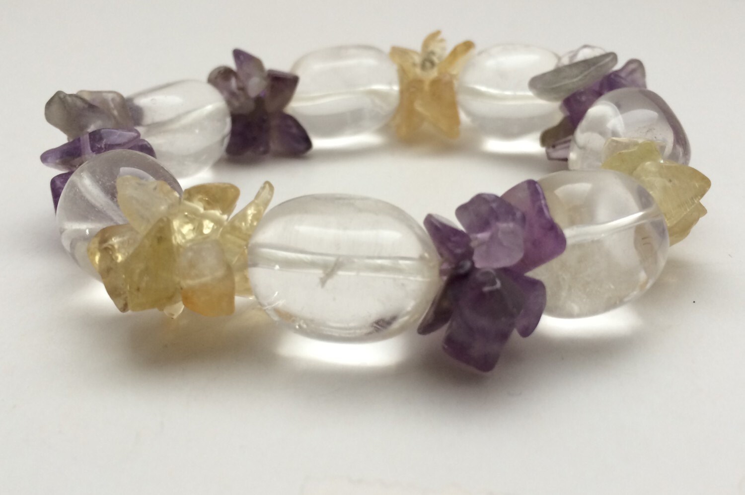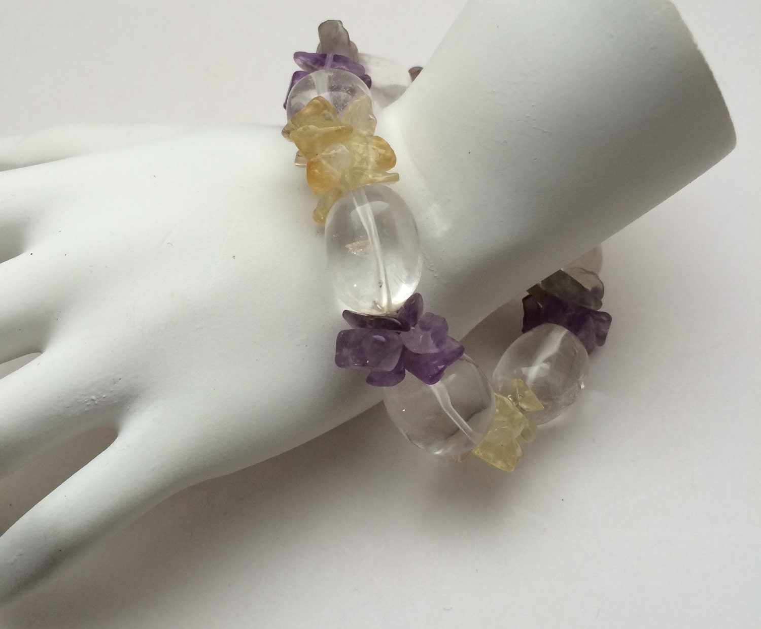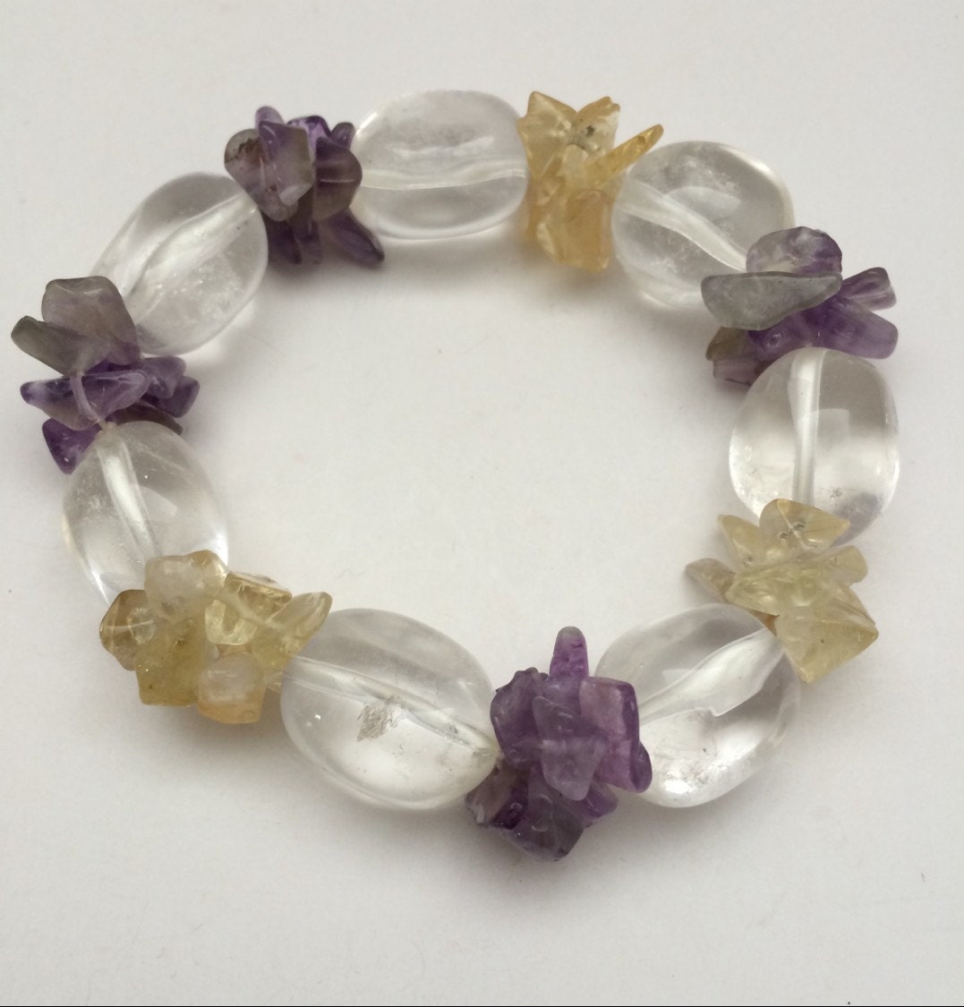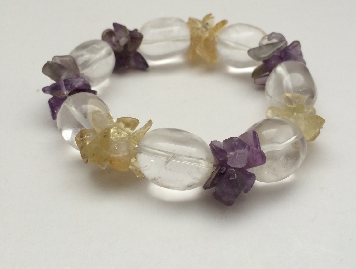 Gemstone Bracelet, Chip Amethyst & Glass Beaded Stretch Bracelet; Reiki, chakra, Gifts for her, Amethyst jewelry, small wrist bracelets