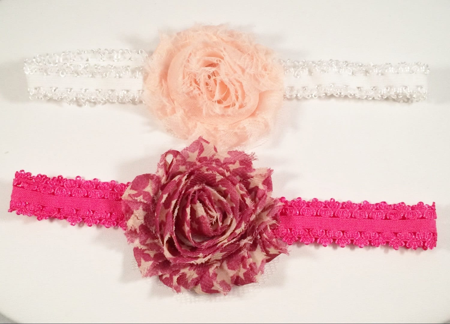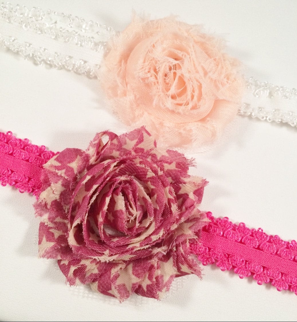 Peach & Star Tattered Rose headband set, Flower Stretch Headband, photo prop headband, toddler flower headband, baby shower gift
