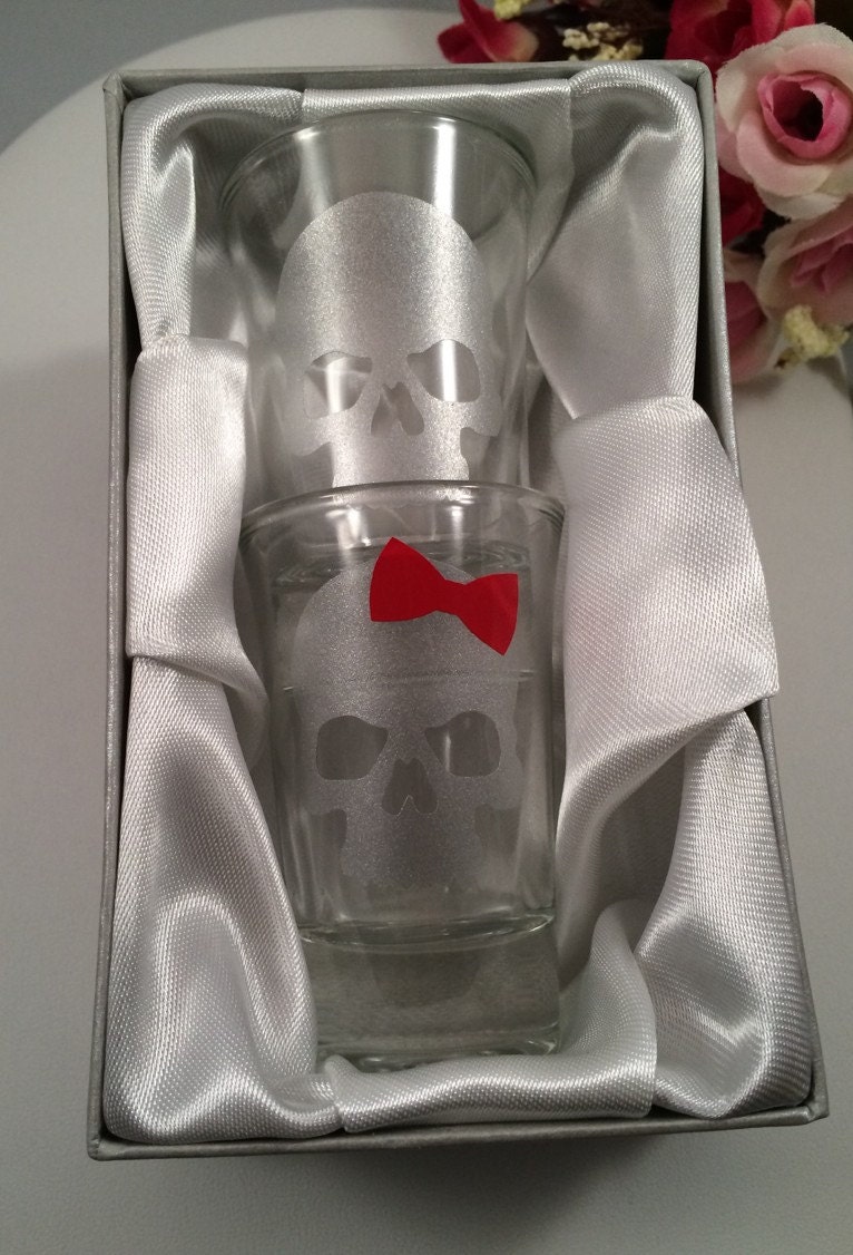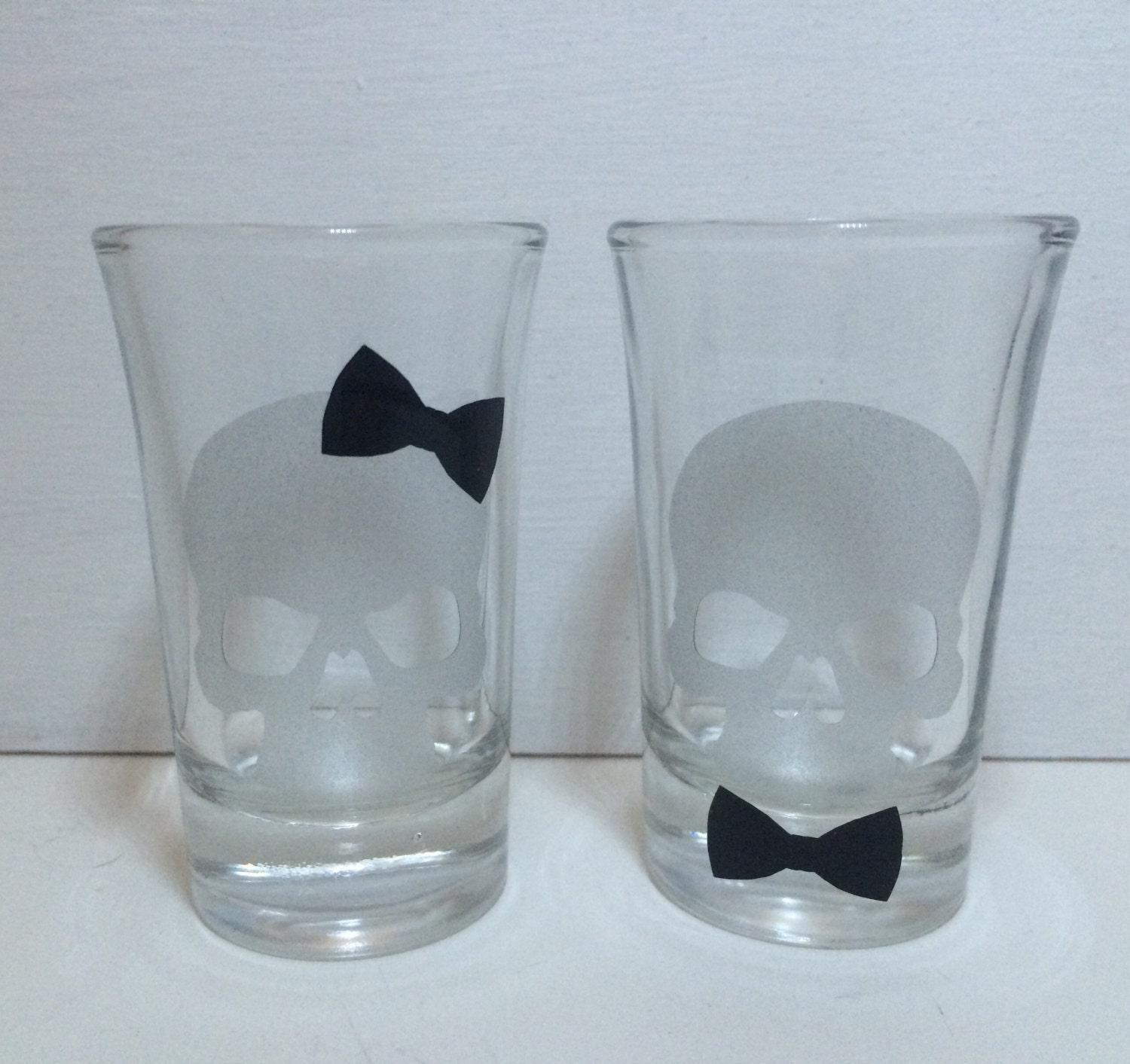 Skull Shot Glass, His & Hers Shot glasses, couples gifts, Skull couples set, Day of the Dead shot glasses, Bride and Groom shot glasses,