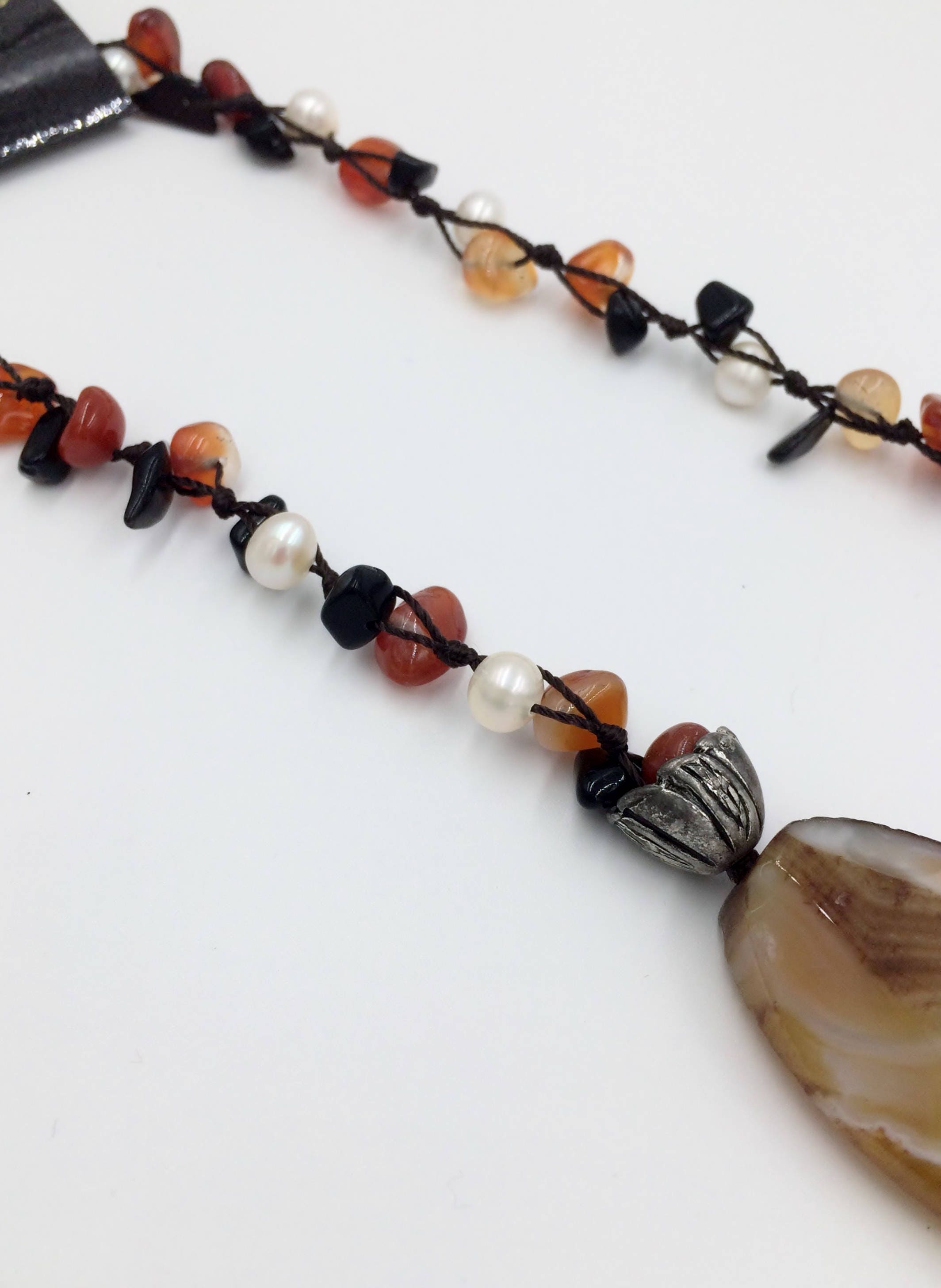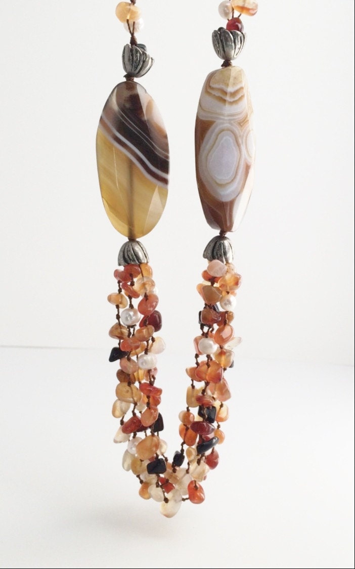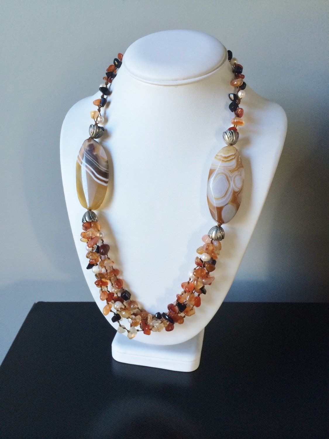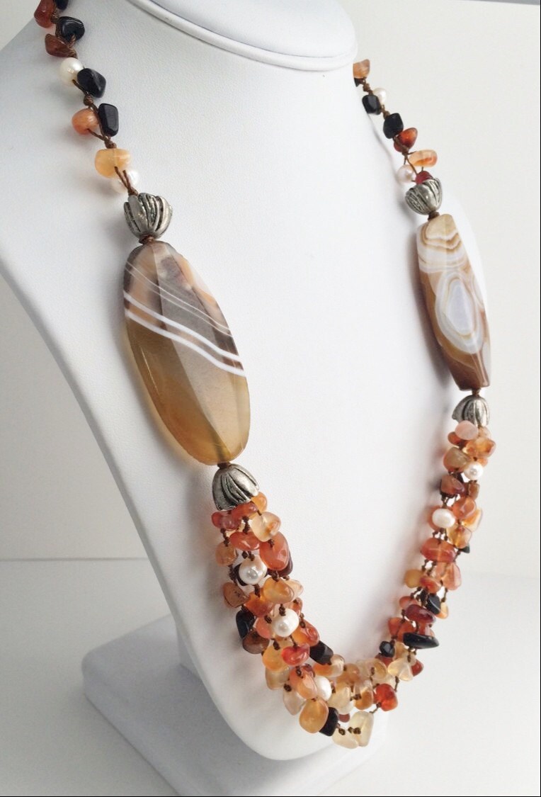 Gorgeous Multi Strand Carnelian, Agate, & CFW White Pearl Beaded Necklace