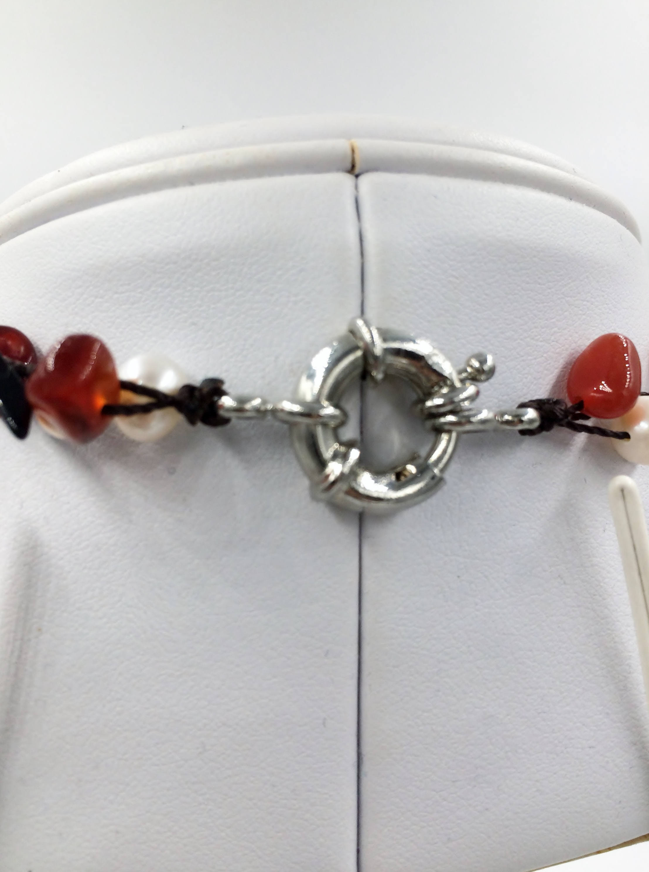 Carnelian Agate & CFW Pearl Beaded Multi Strand Necklace, Layered Necklace, Boho necklace, chip necklace, Chunky necklace, gemstone necklace