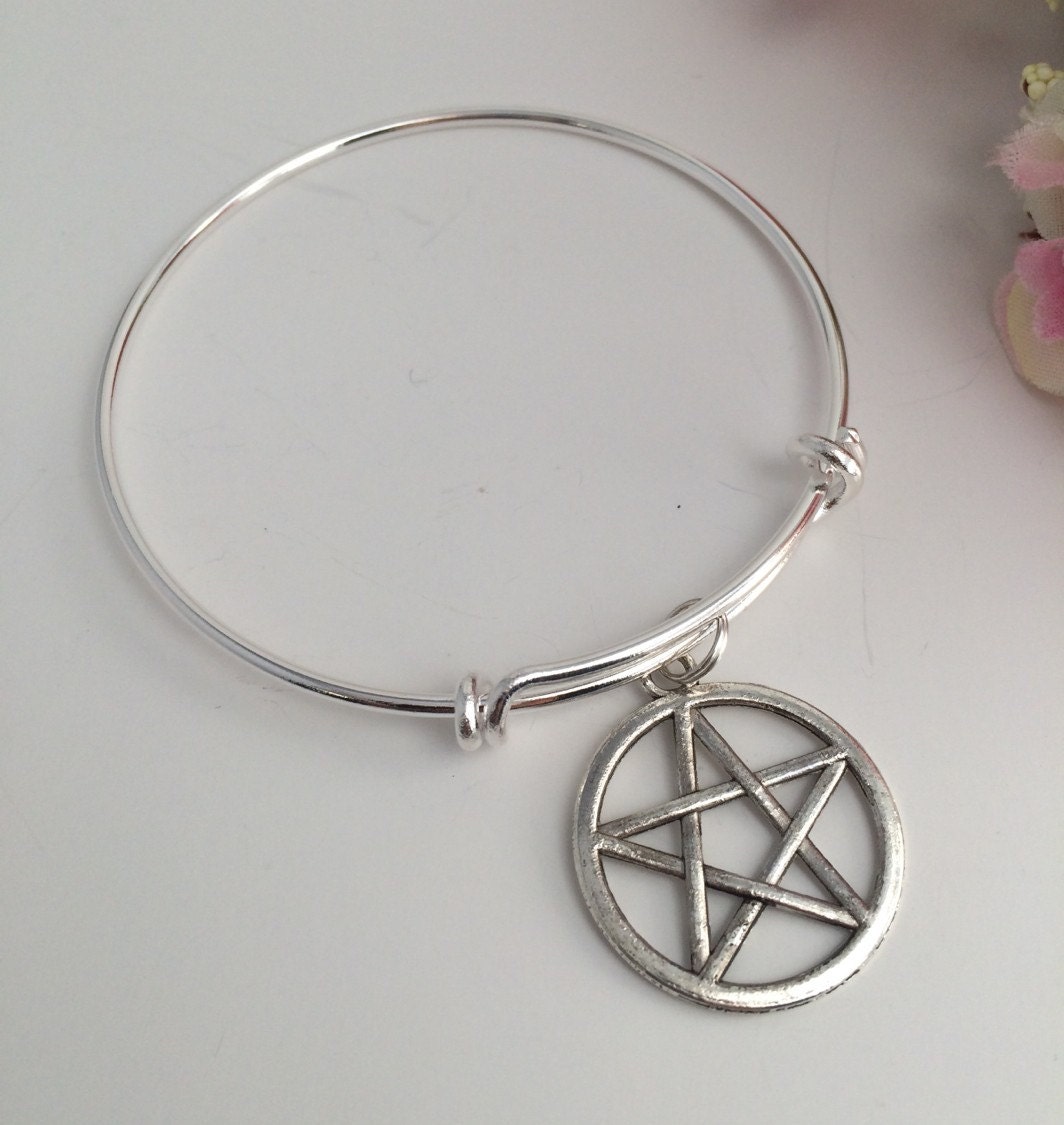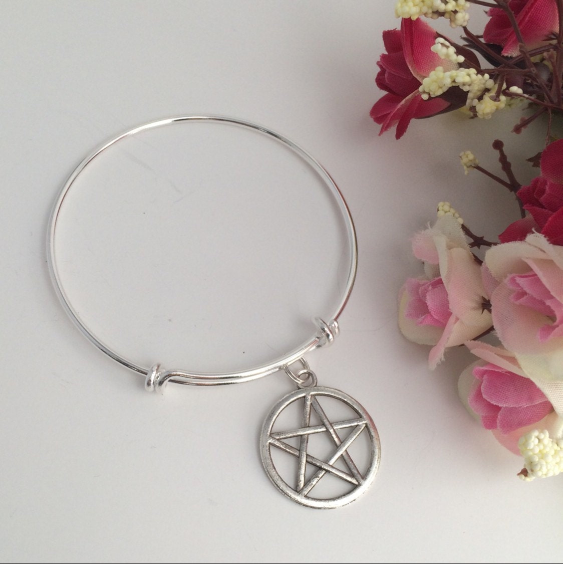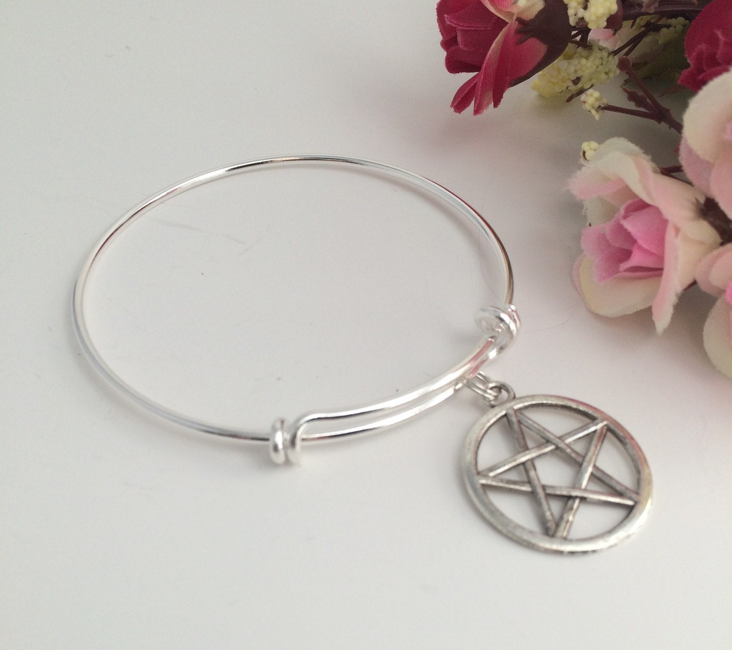 Pentacle Charm Bangle, Wiccan jewelry, Pentagram Bracelet, Boho jewelry, Pentacle jewelry