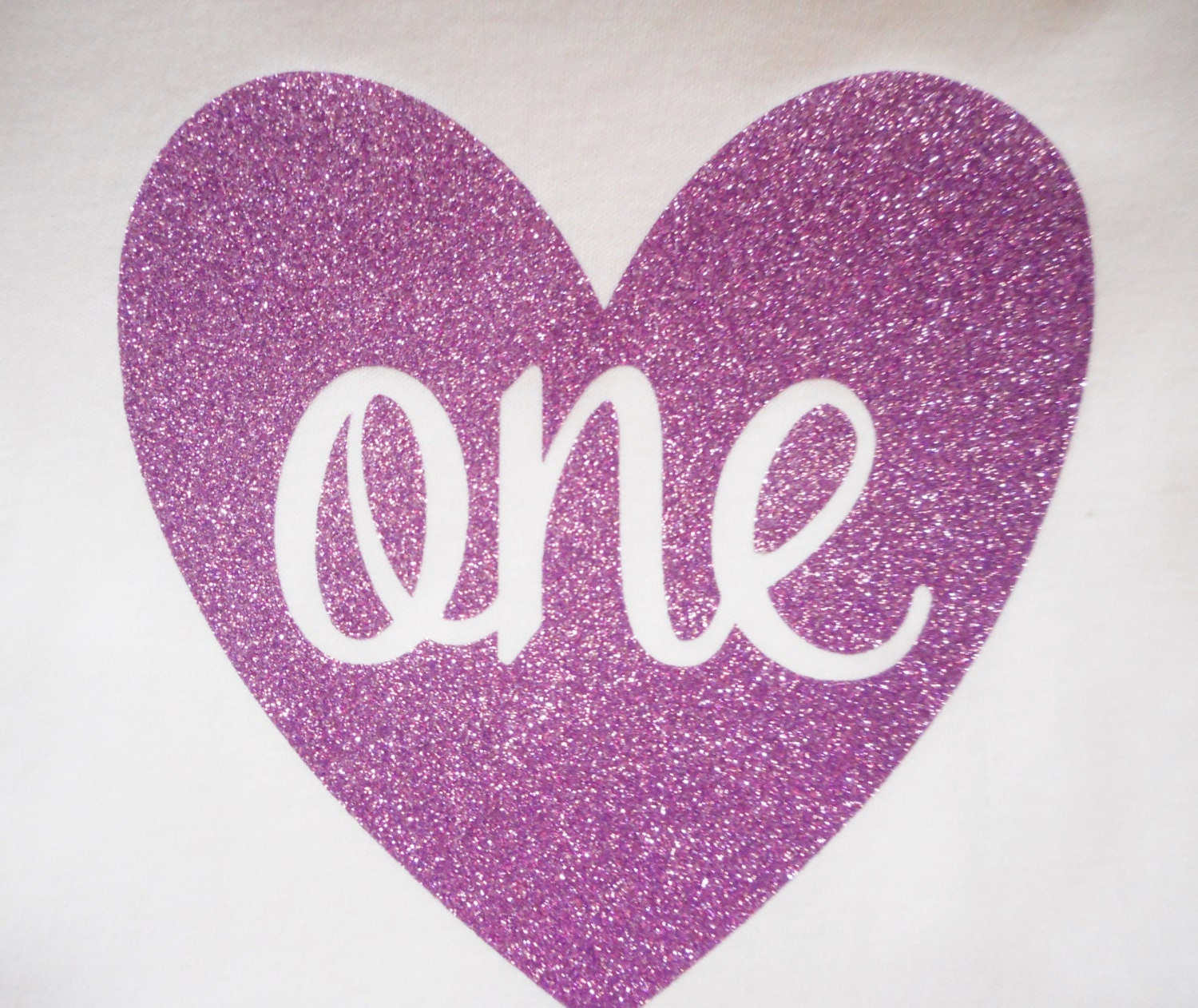 Girls Glitter Heart One Birthday Shirt (Pic listing shown in lavender)