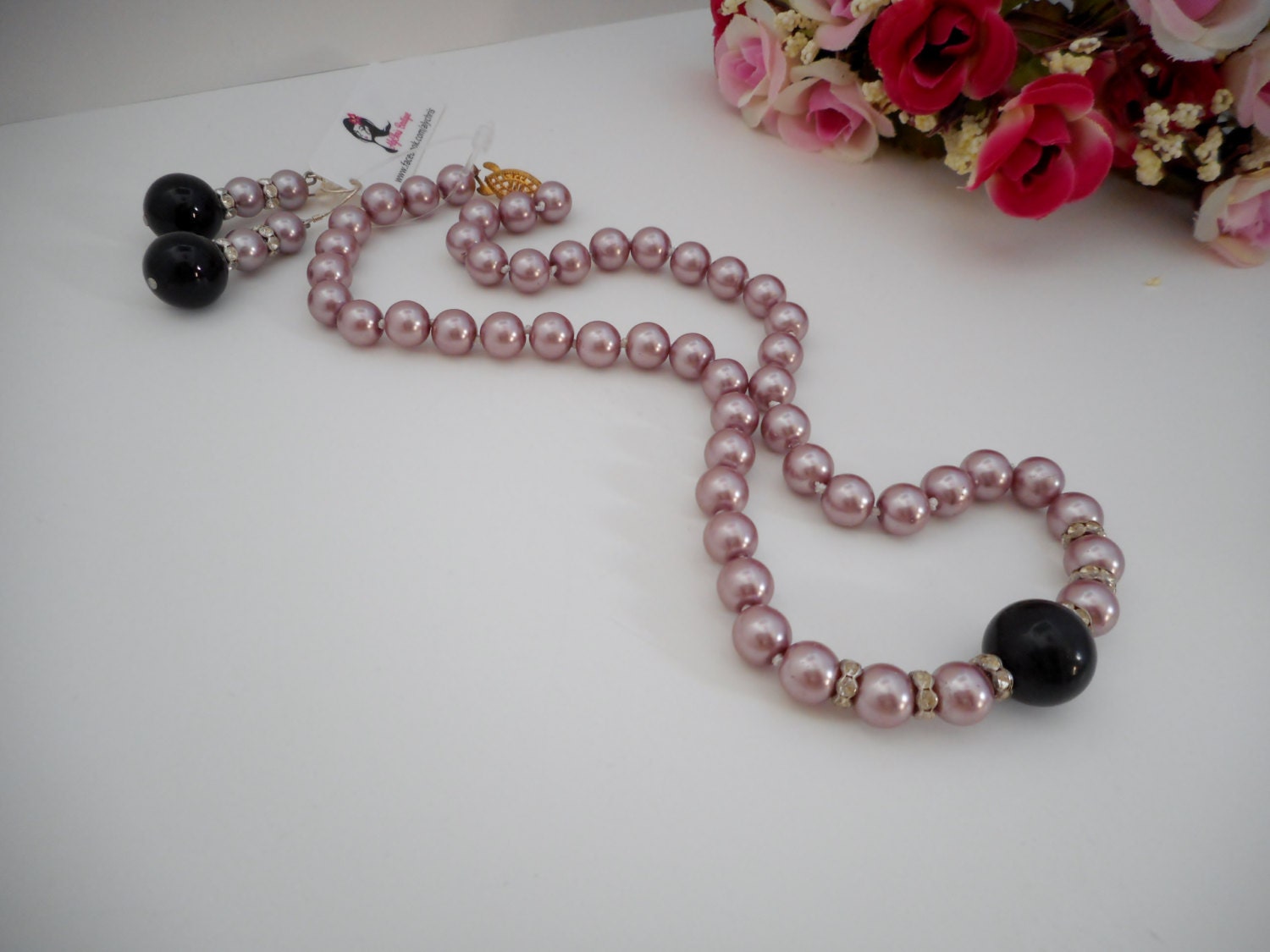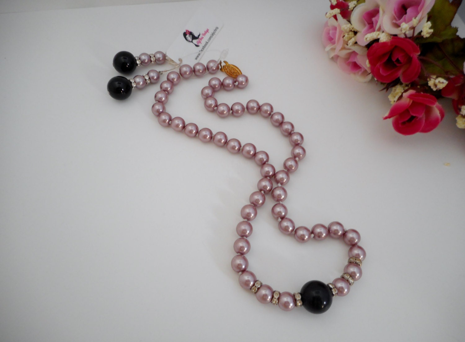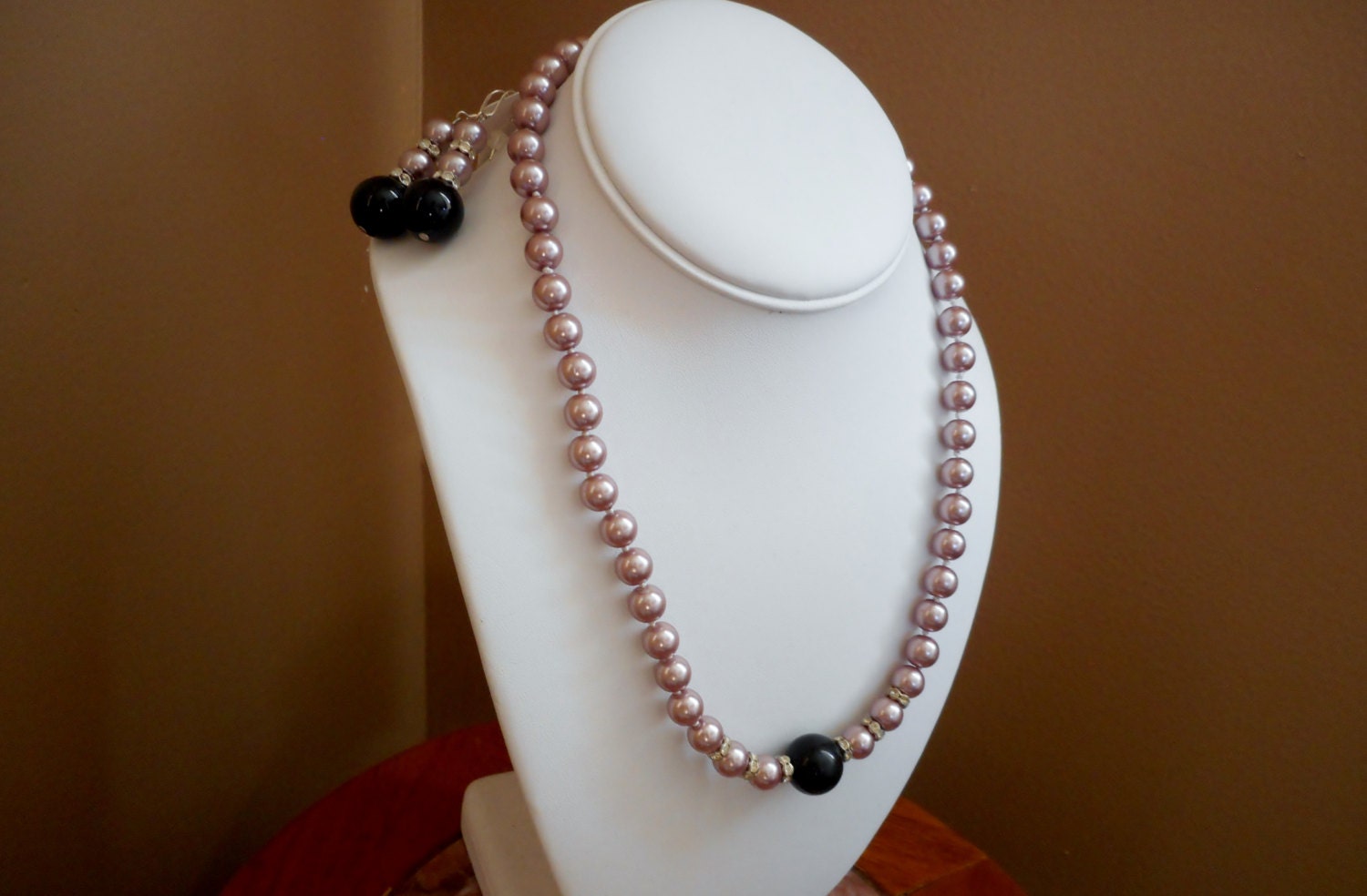 Lavender Grey & Black Faux Pearl Necklace Earring Set, Bridal jewelry, glass pearl set, bridesmaid jewelry, party jewelry, sweet 16,