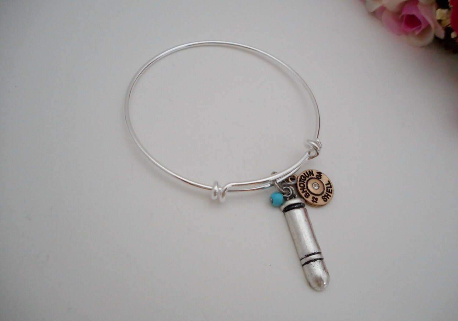 Bullet Jewelry, Bullet Bracelet, Western Theme Jewelry, Bullet Bangle, Gun Jewelry, Shotgun jewelry, Bullet Charm Bracelet