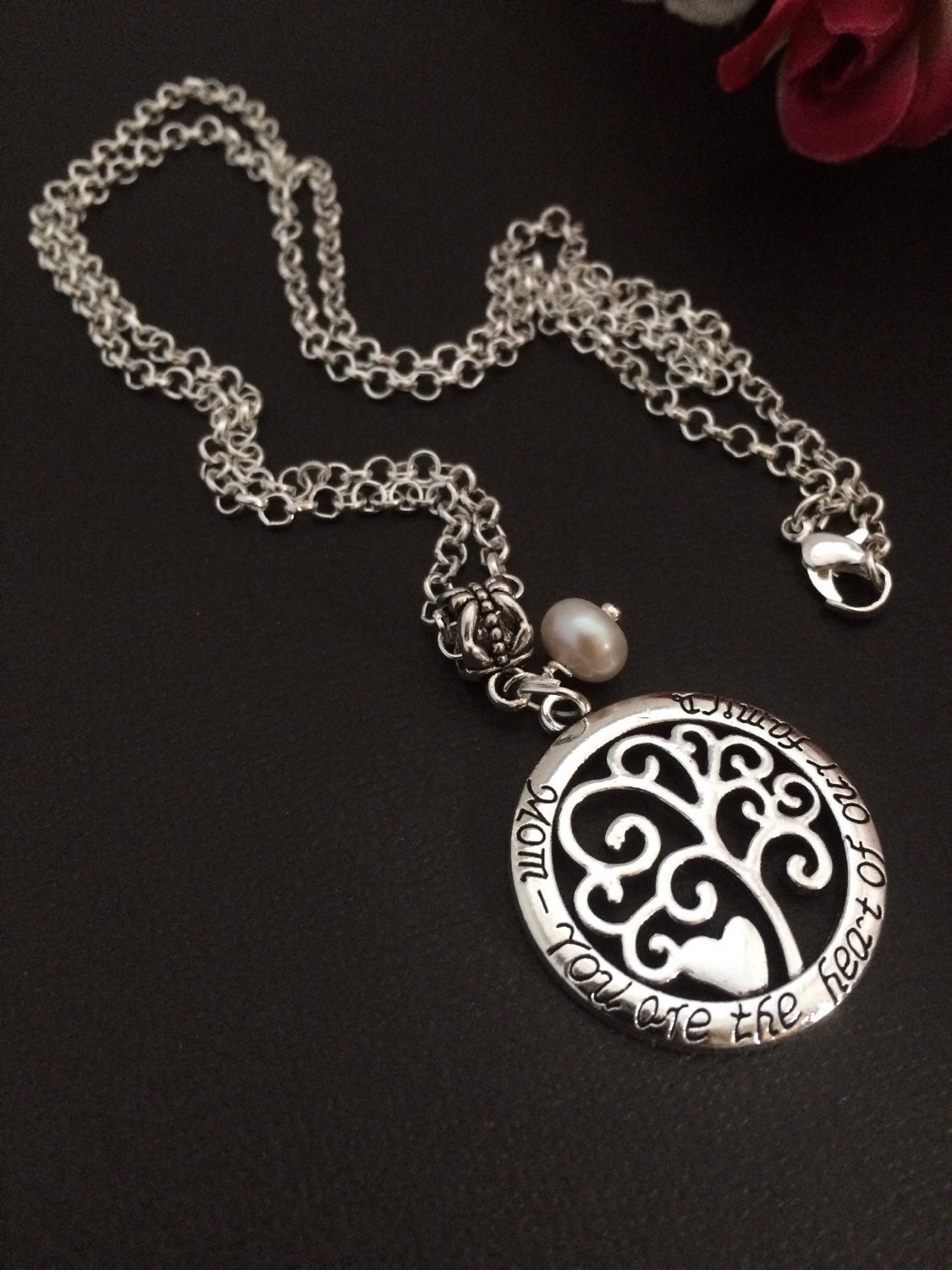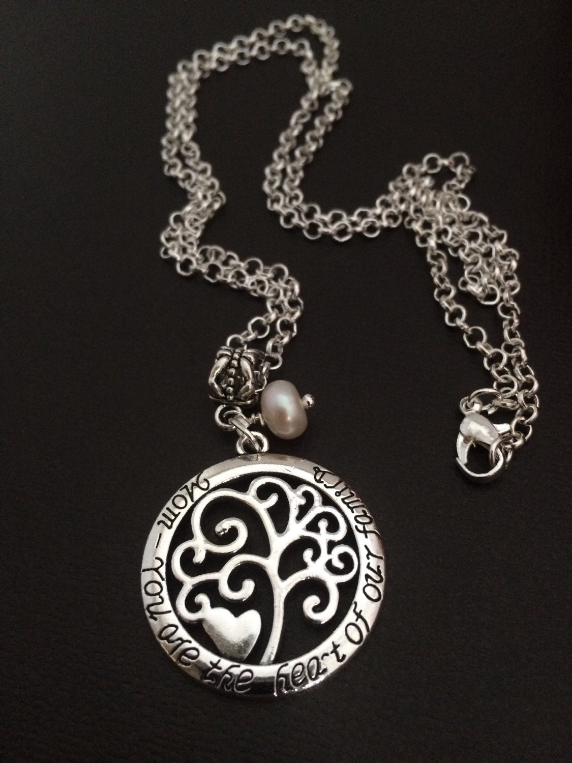 Mom pendant necklace, Gifts for Mom, Family Jewelry, Mom quote pendant, Mom Gifts, You are the Heart of our Family, Mothers Jewelry