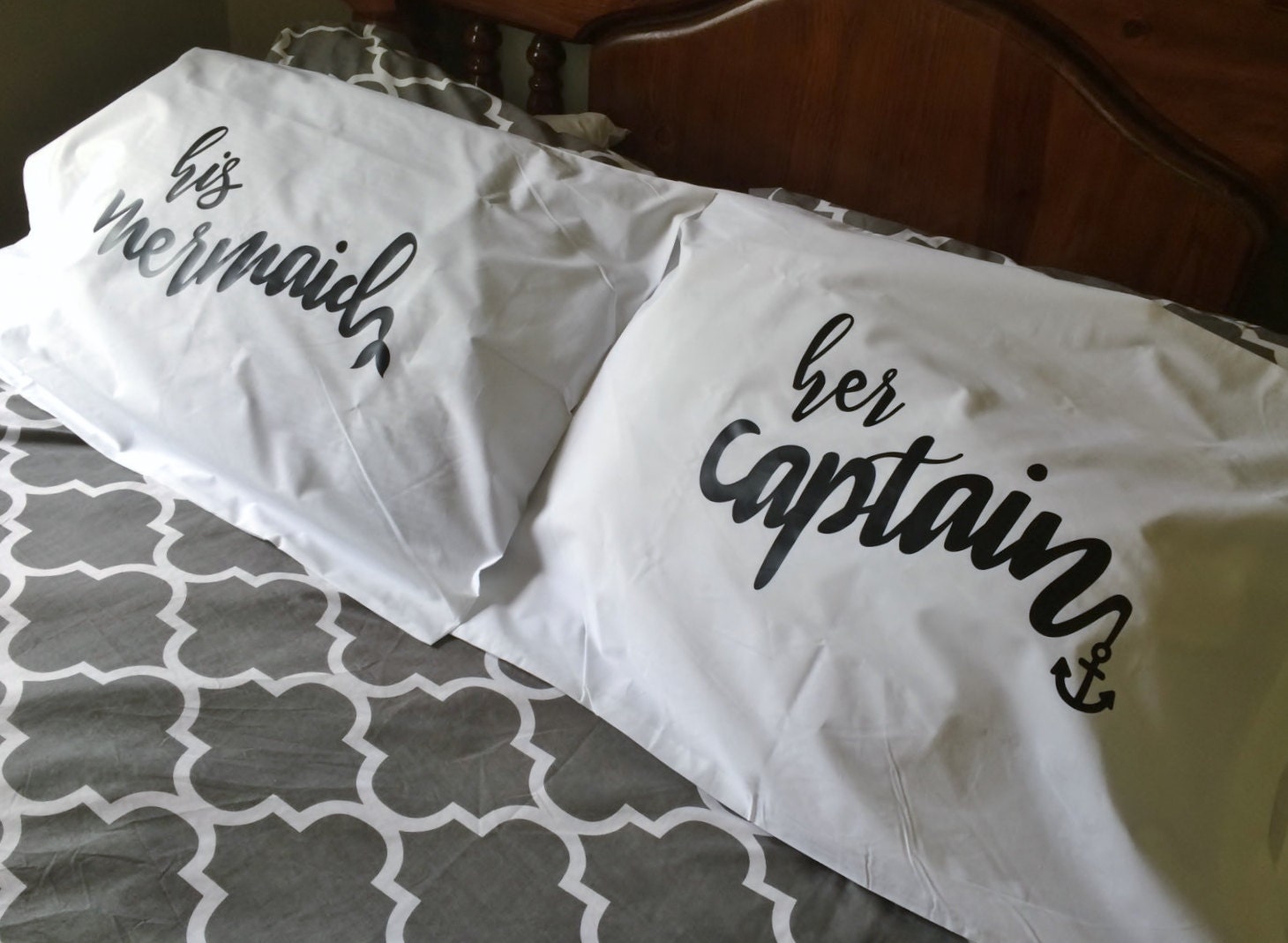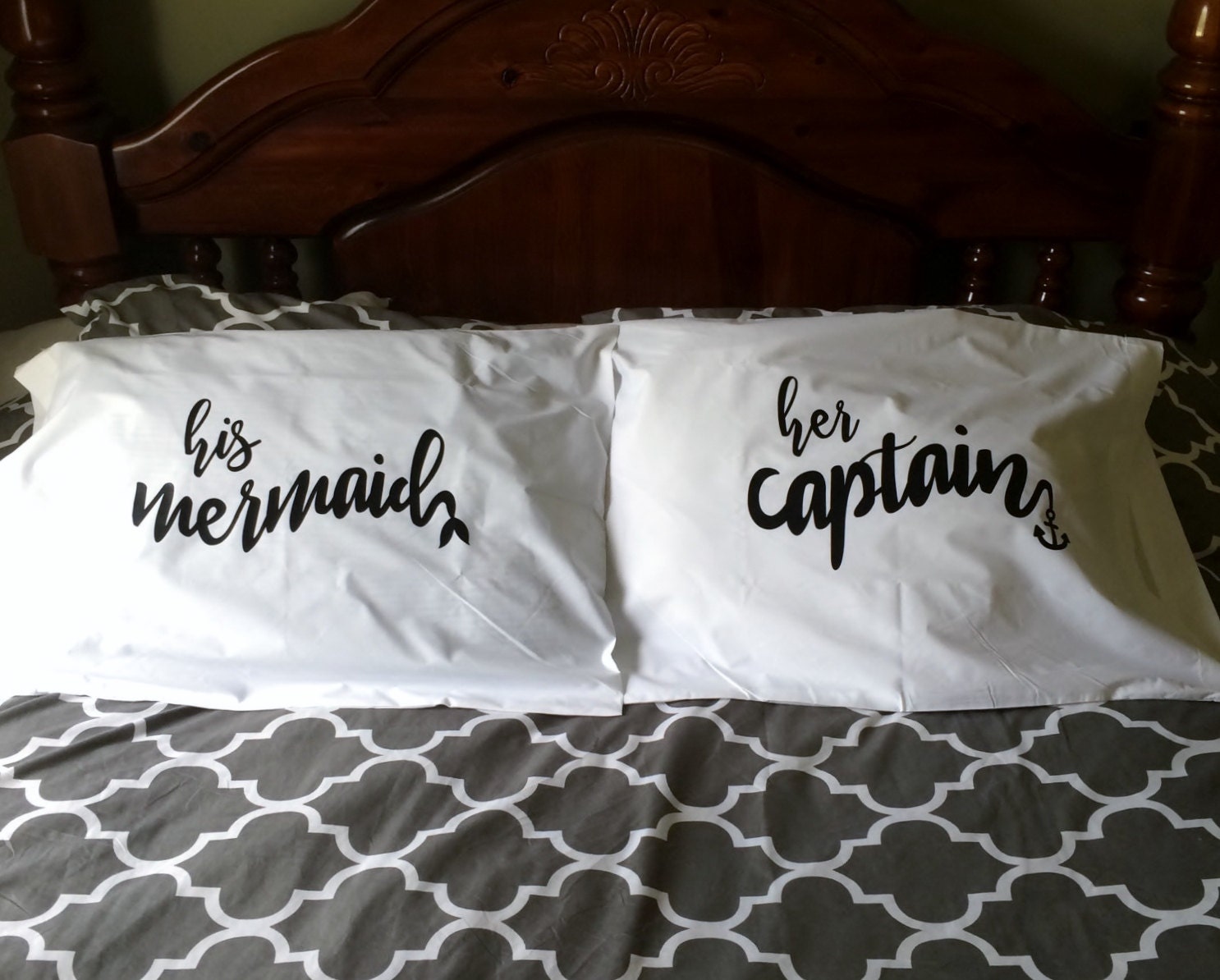 Her Captain His Mermaid Pillowcases, His and Hers Pillowcases, Anniversary Wedding gifts, Bedroom Decor, Couples Gifts, Couples Pillowcases
