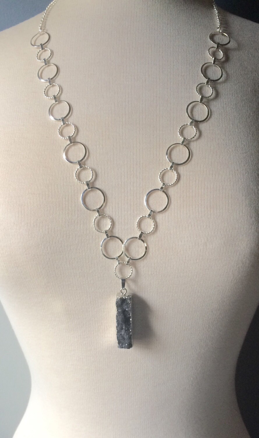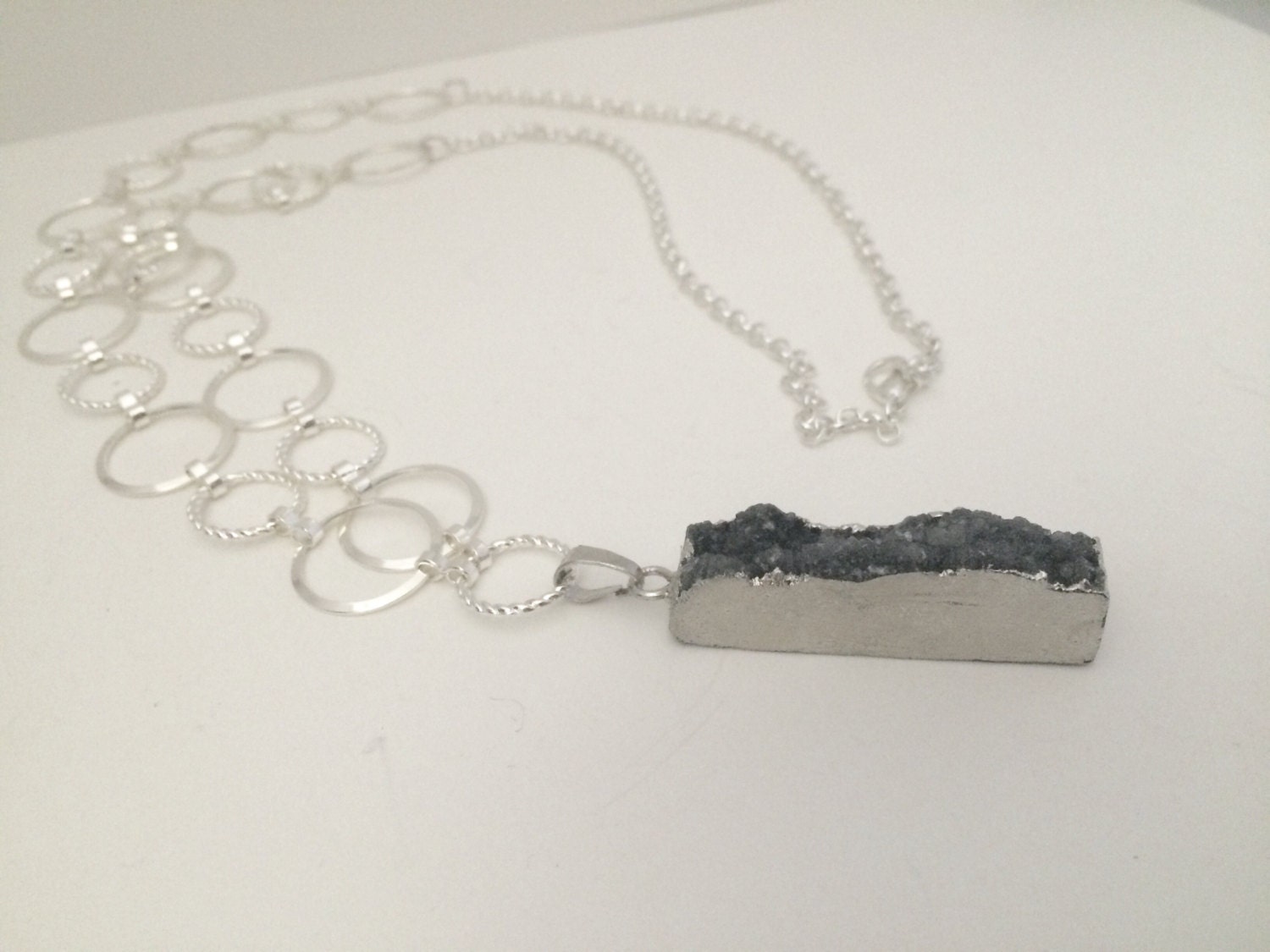 Druzy Necklace, Long Necklace, Druzy Pendants, Druzy Pendant Necklace, Gemstone Jewelry, Crystal Pendant, Stone Necklace