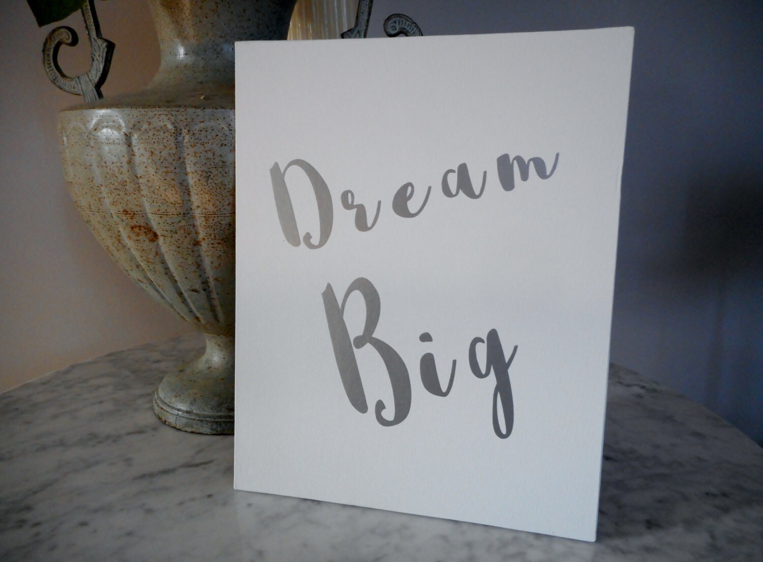 Dream Big Silver Lettering Print on White Canvas Panel, Dream Big Nursery Decor, Dream Big Wall Art, Childrens Room Decor, Dream Big Print