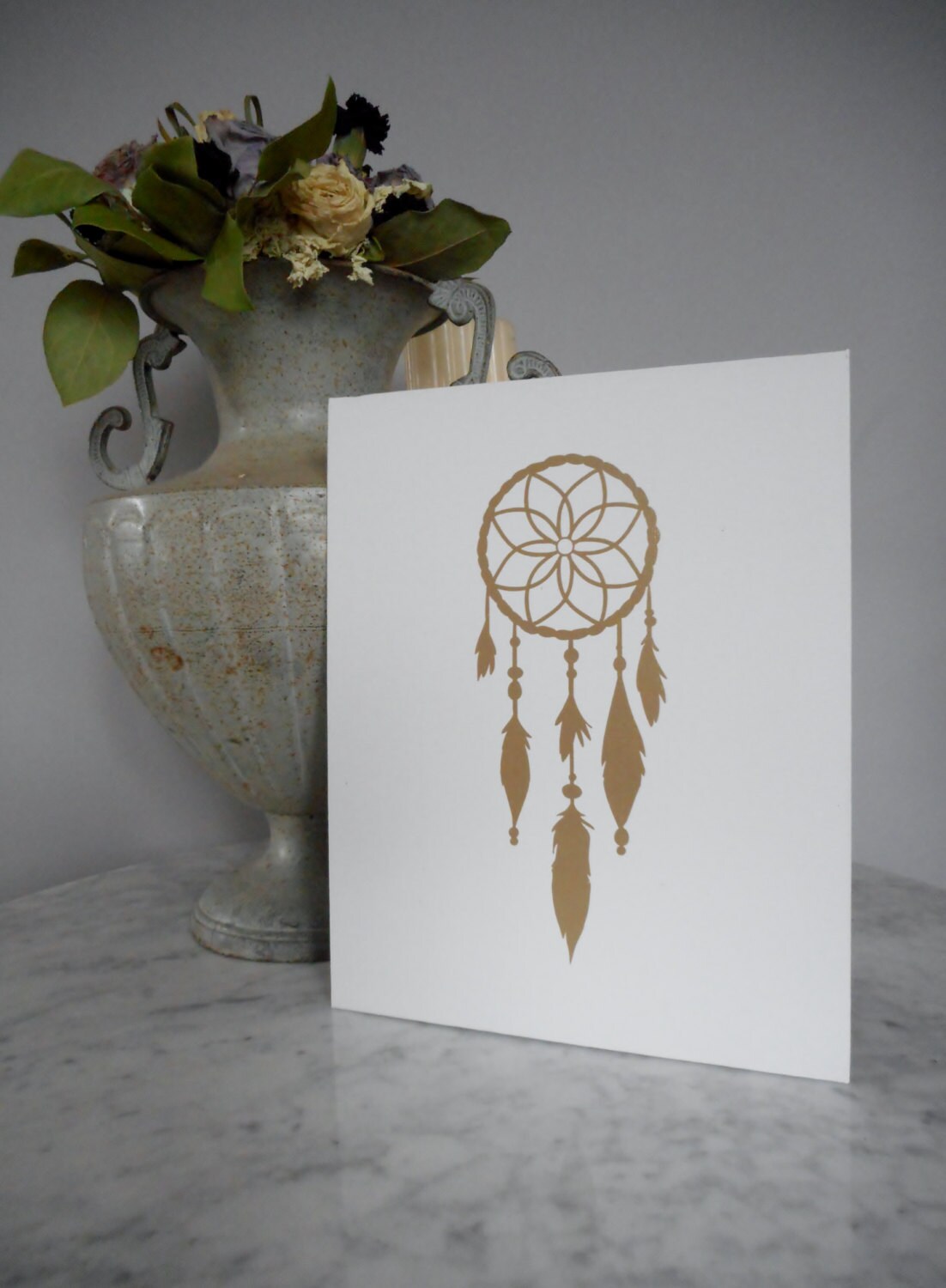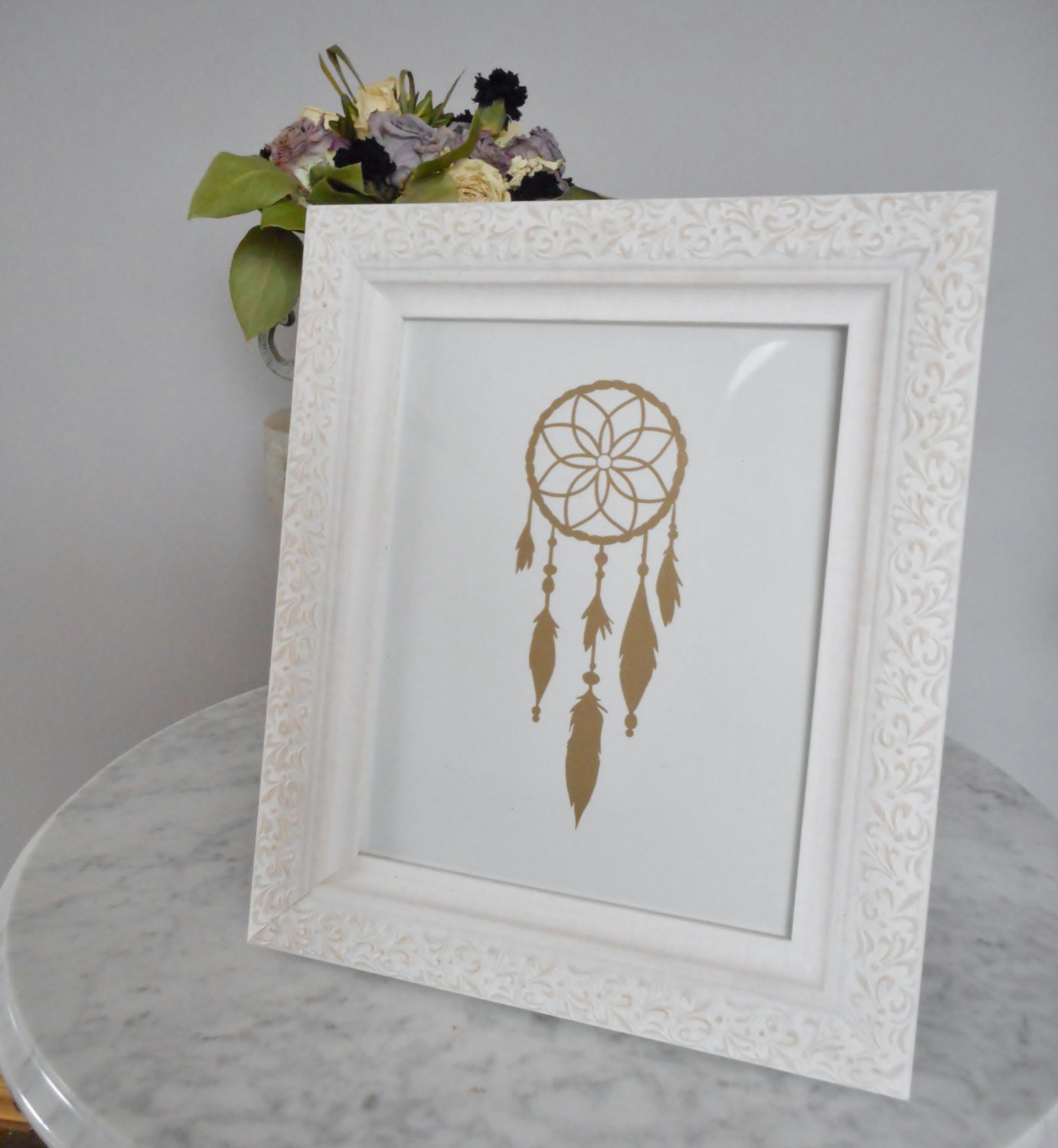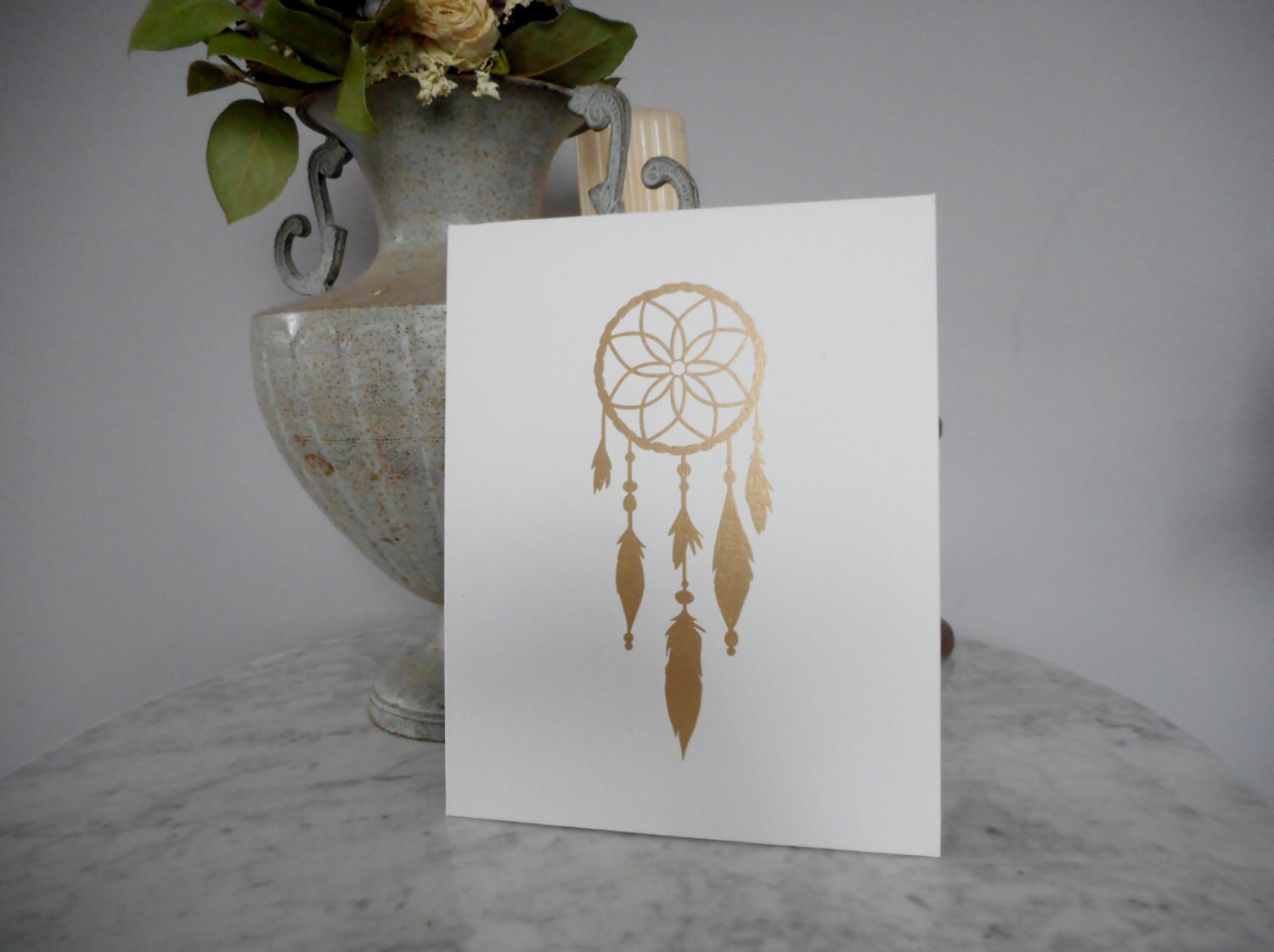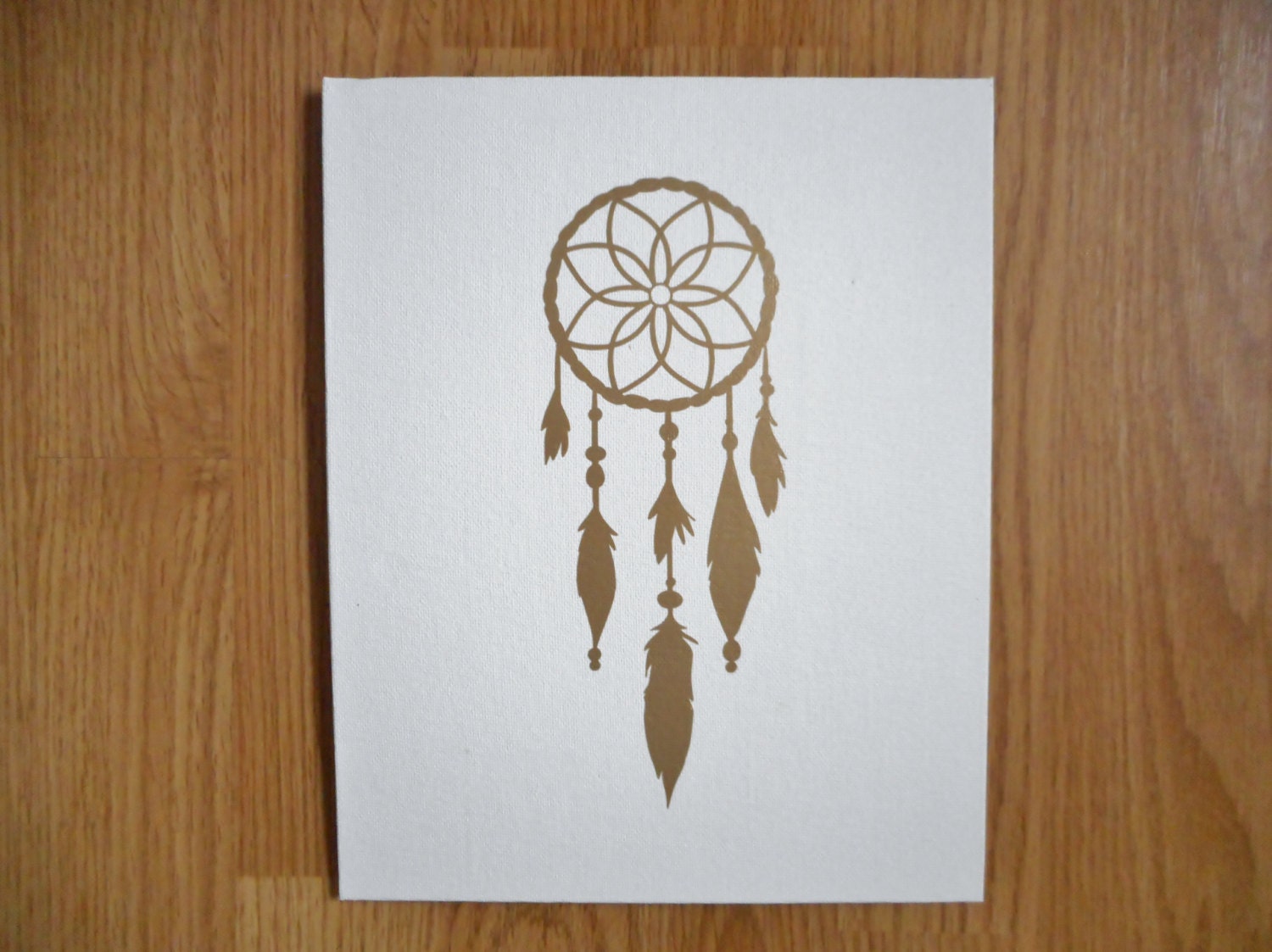 Dream Catcher Print on Canvas Panel, Feather Art, Native Decor, Gold Dream Catcher Wall Hanging, Dream Catcher Wall Art, Bohemian Print
