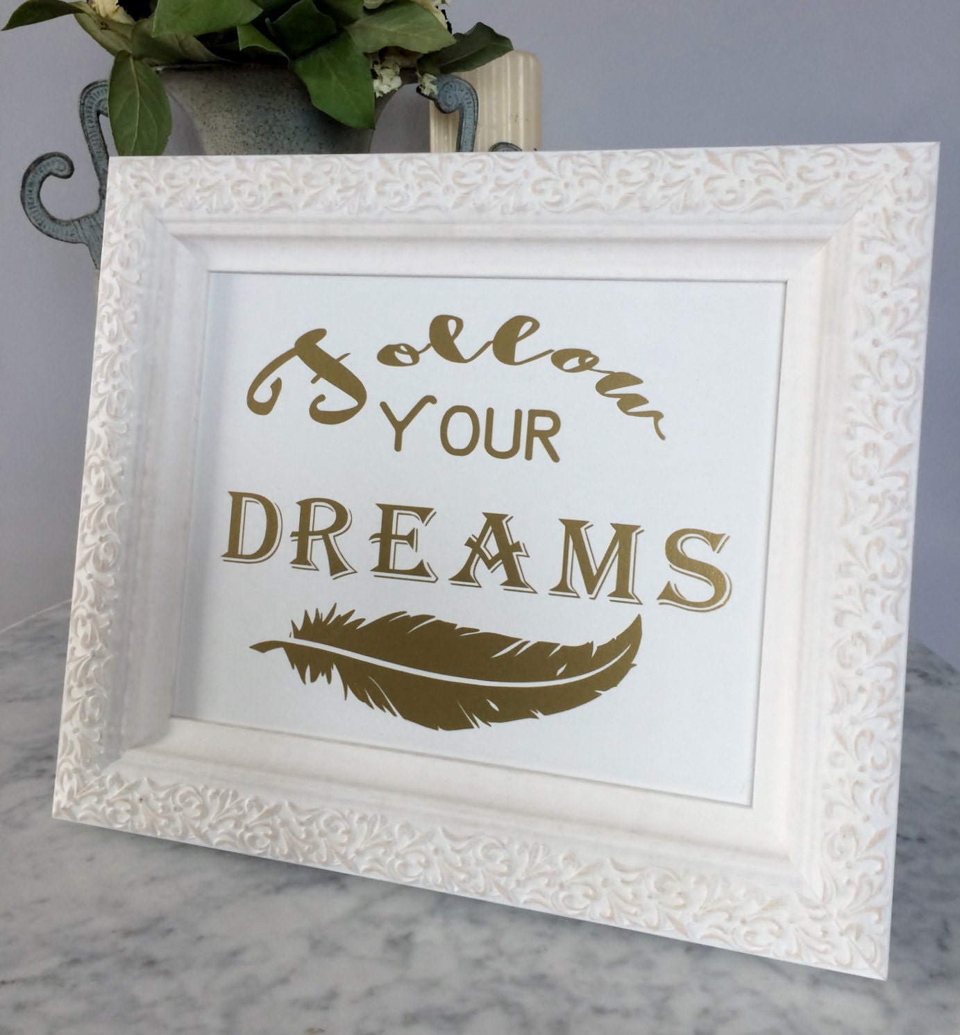 Follow Your Dreams Print, Quote Print on White Canvas Panel, Wall Decor, Quote Wall Art, Wall Art Canvas, Inspirational Print Wall Art