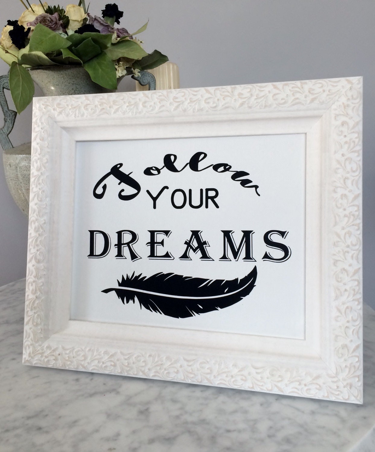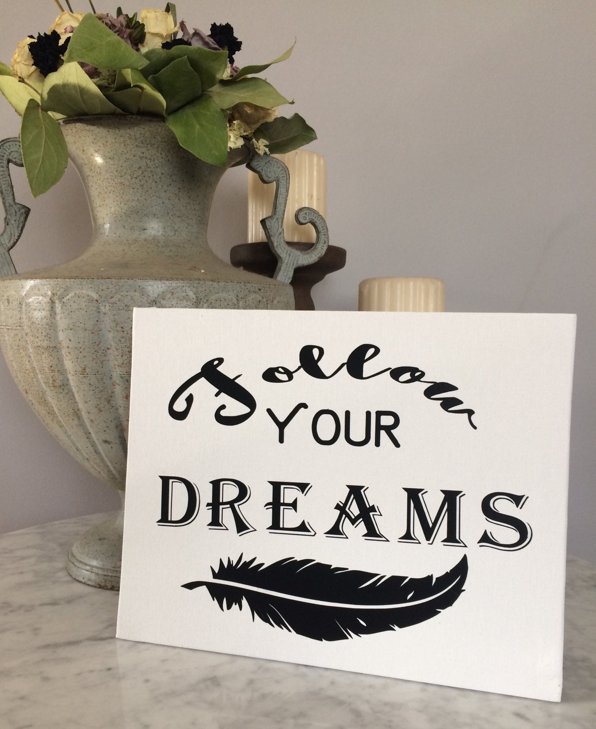 Follow Your Dreams Canvas Print, Quote Print on White Canvas Panel, Wall Decor, Quote Wall Art Decor, Inspirational Print, Nursery Decor