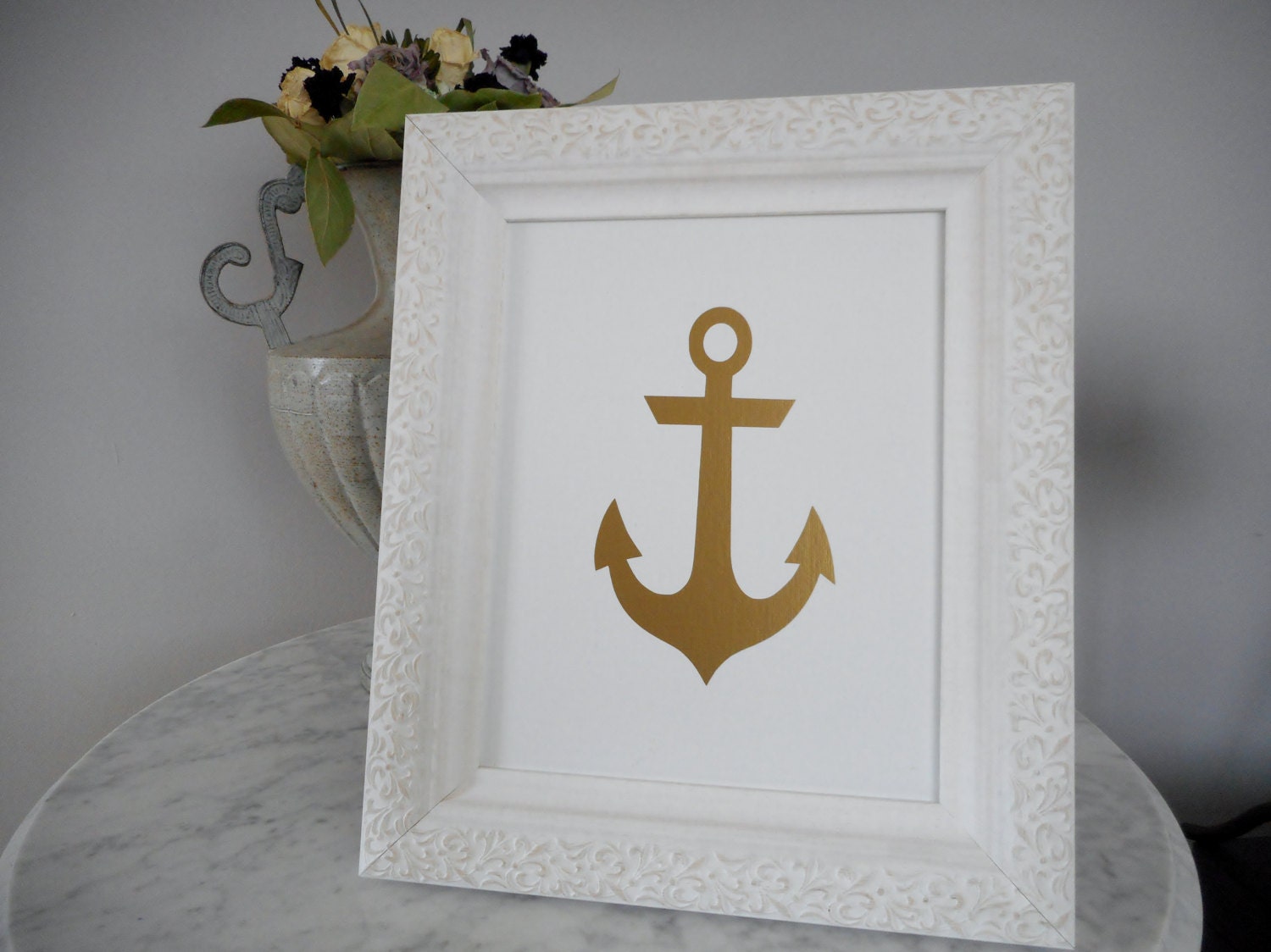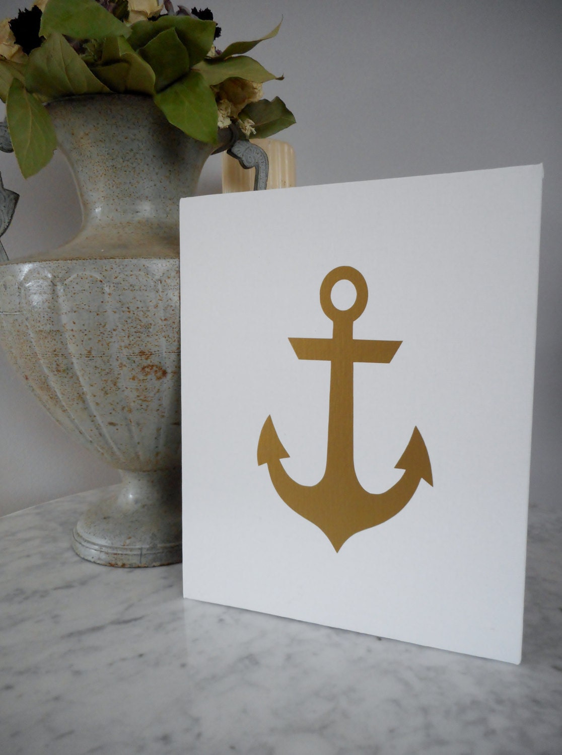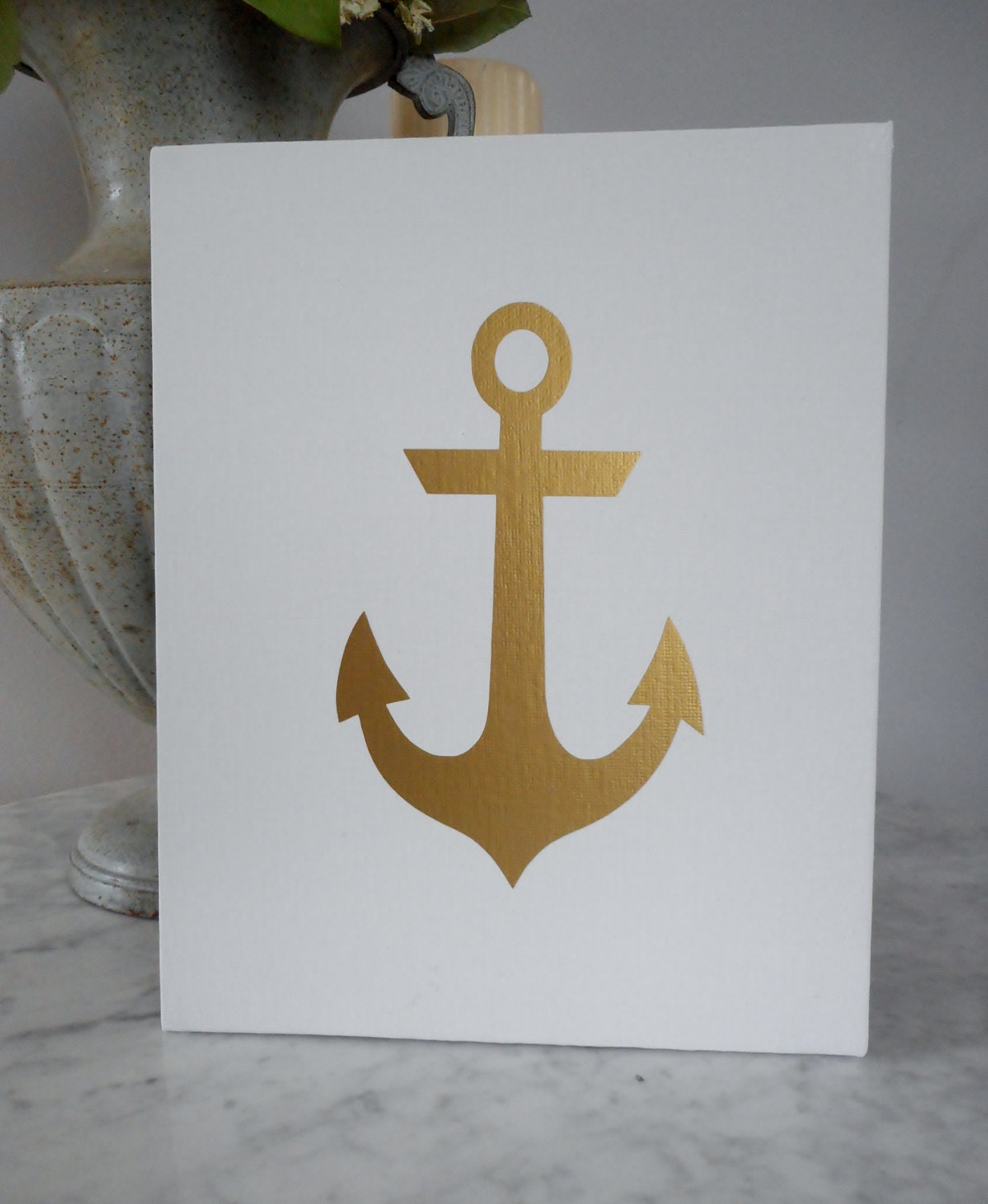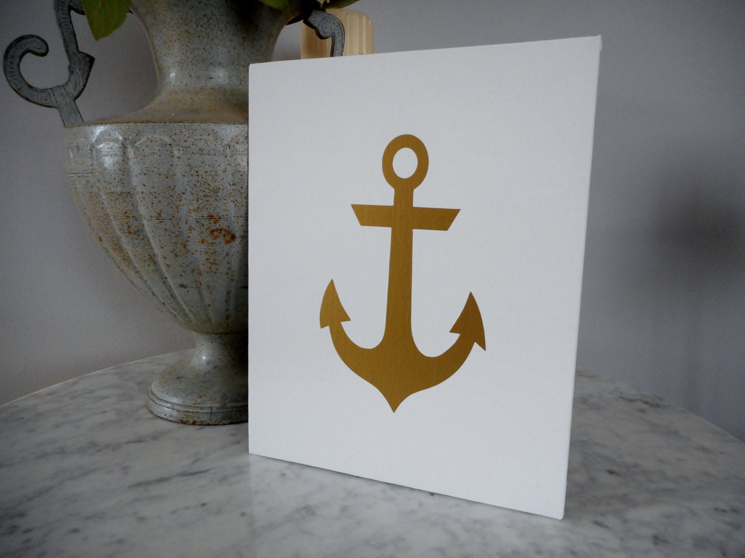 Gold Anchor Print on White Canvas Panel, Nautical Decor, Living Room Wall Art Decor, Tabletop decor, Beach House Wall Art, Anchor Print