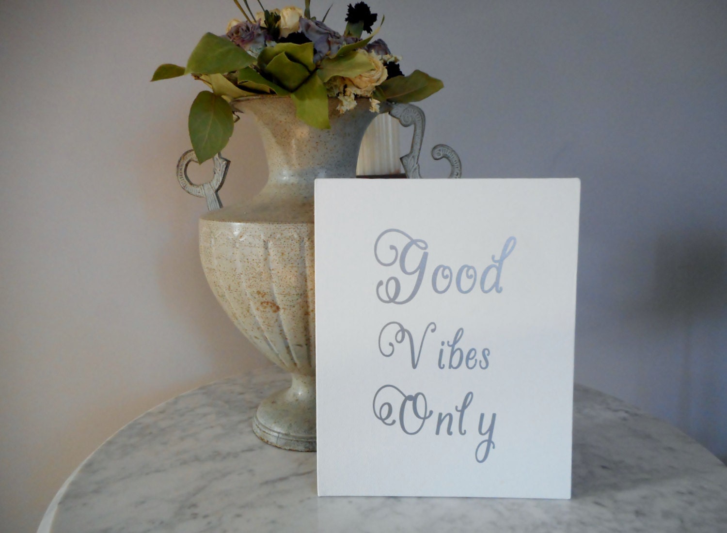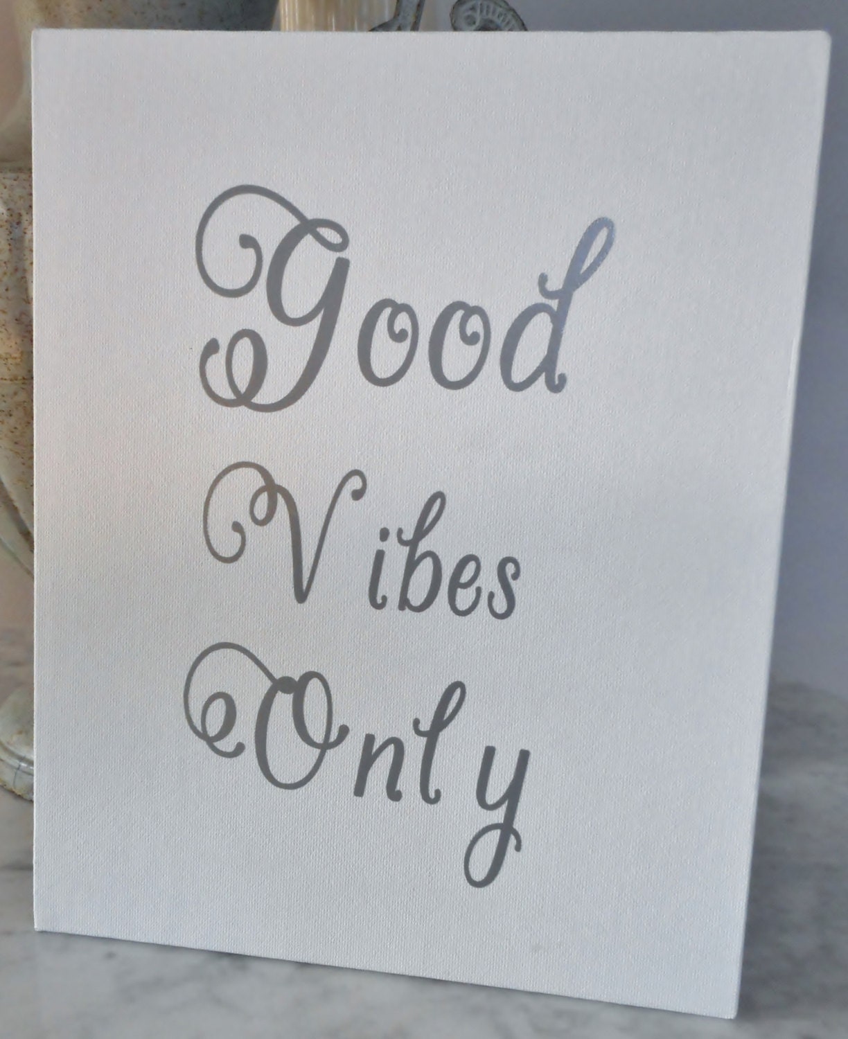 Silver Lettering Good Vibes Only print on White Canvas Panel