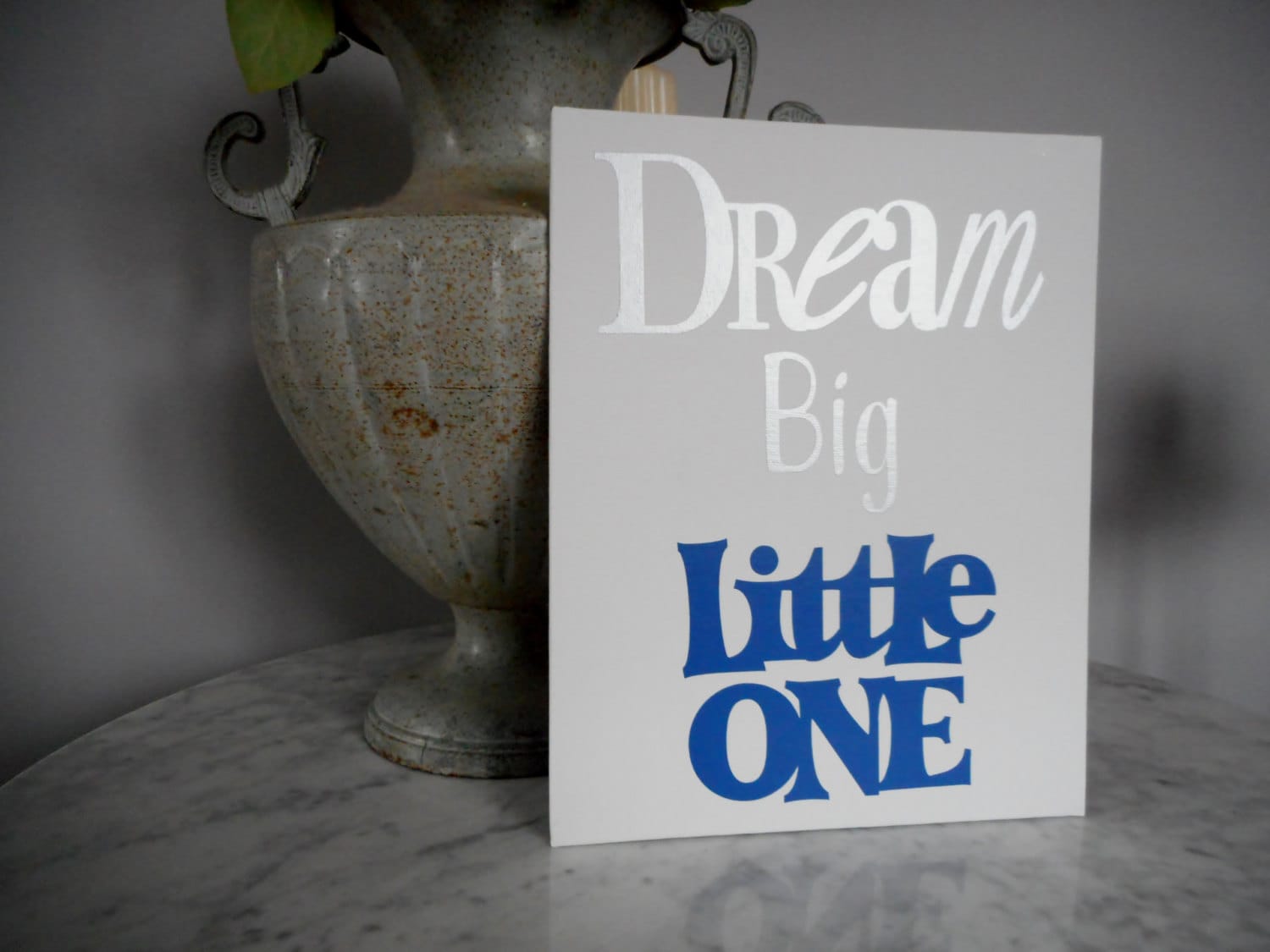 Dream Big Little One Lettering Print on White Canvas Panel, Dream Big Nursery Decor, Dream Big Wall Art, Boy Nursery Decor, Babyshower gift