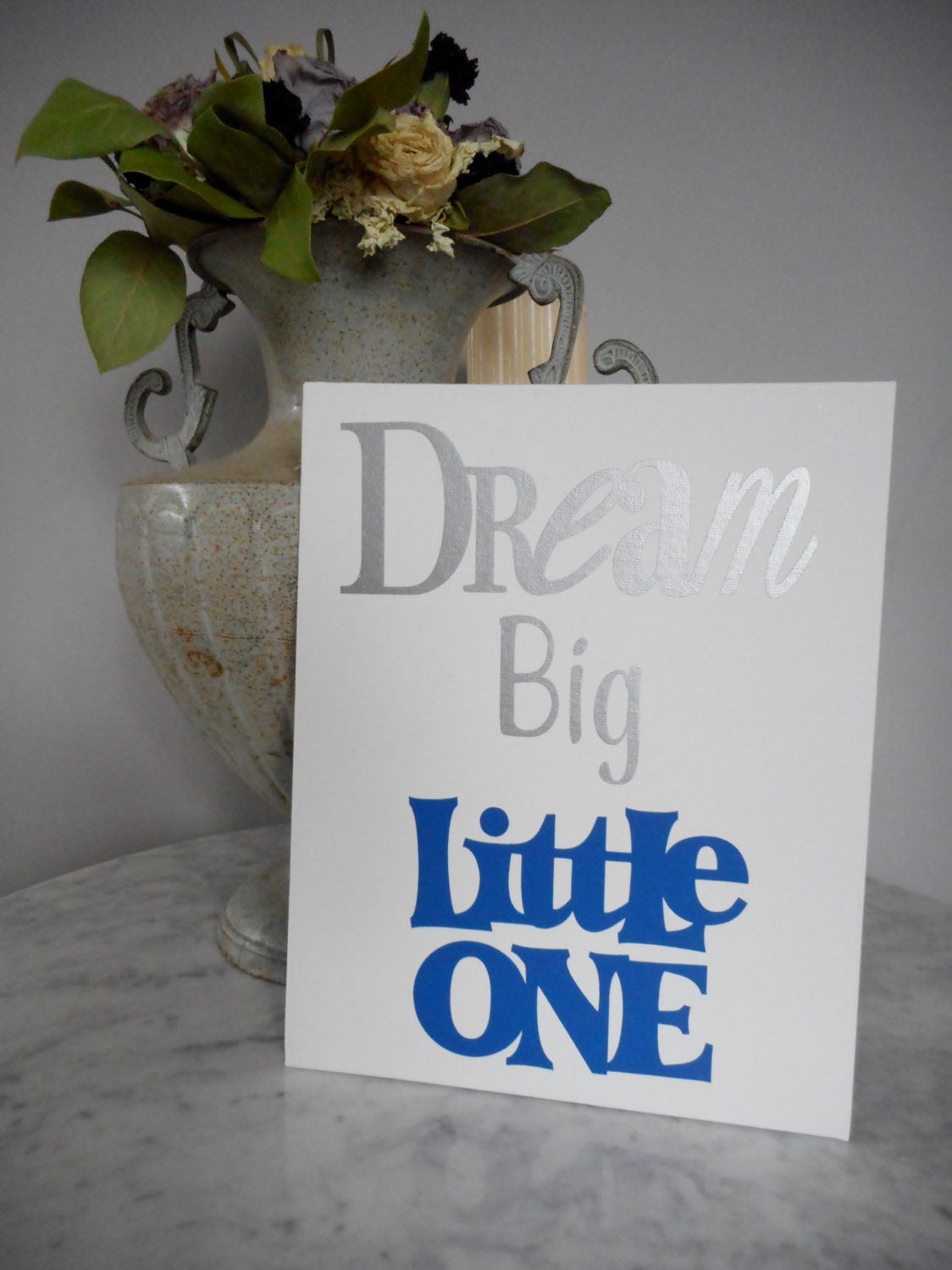 Dream Big Little One print on Canvas Panel - Silver and Blue