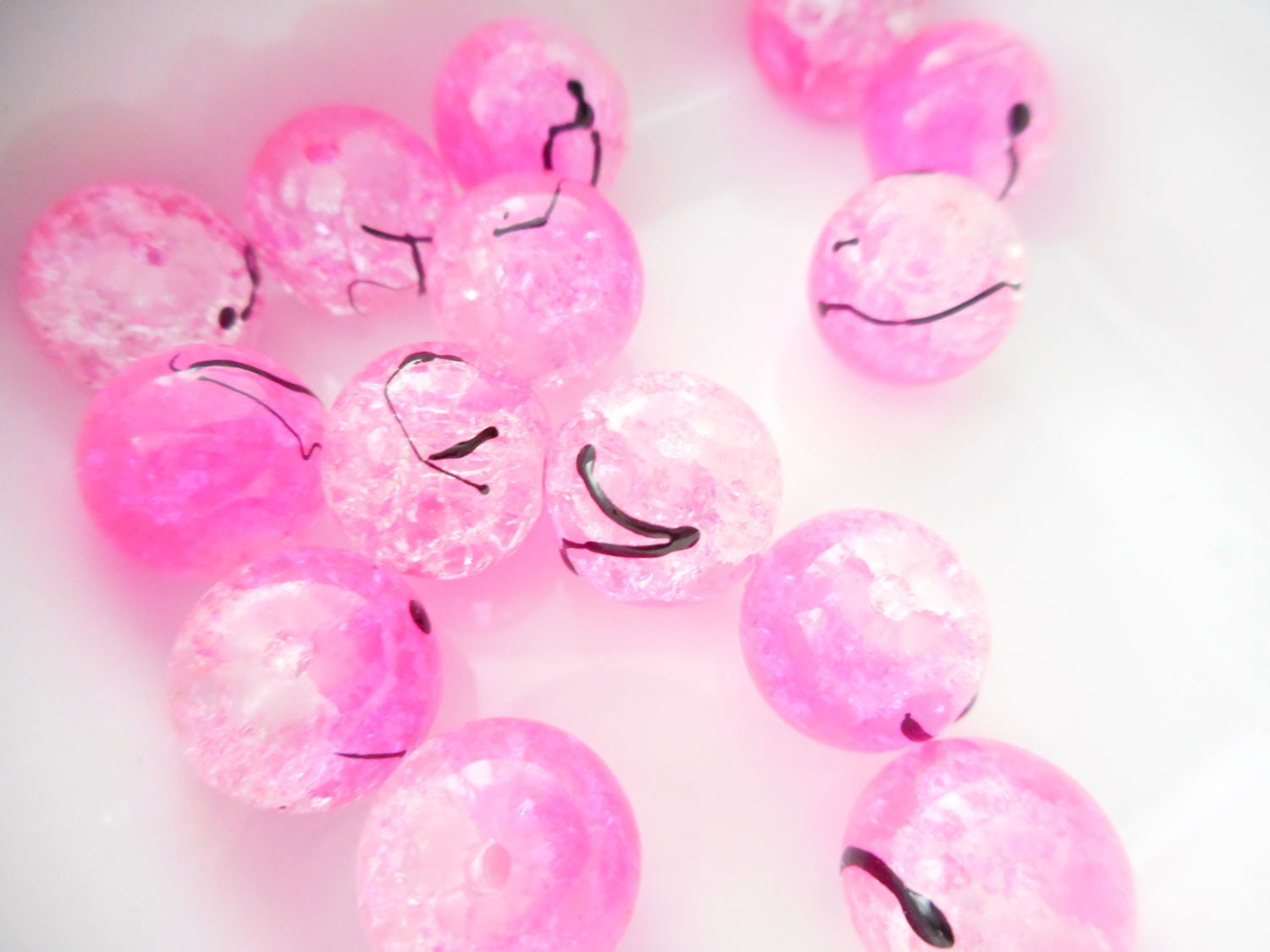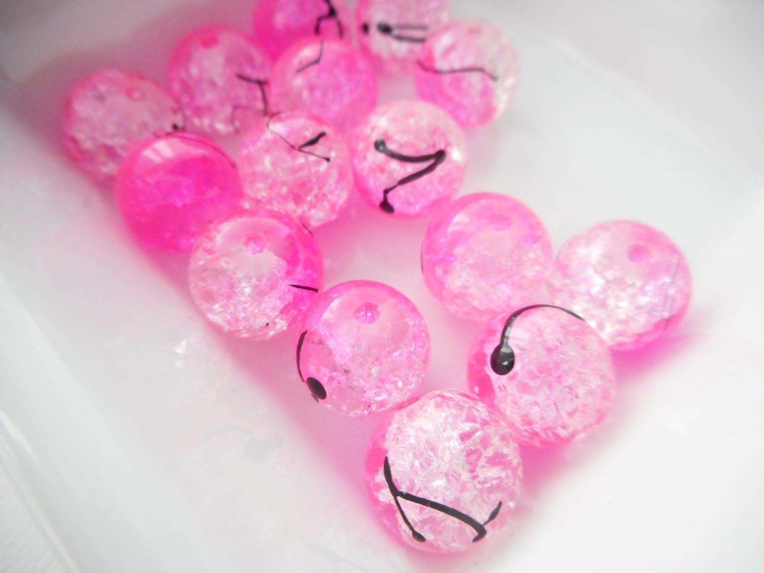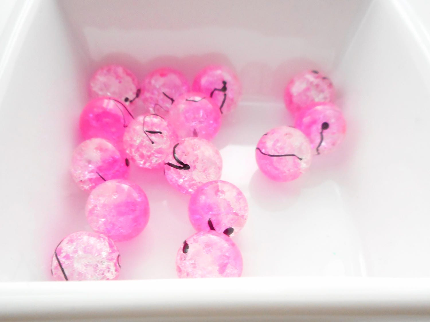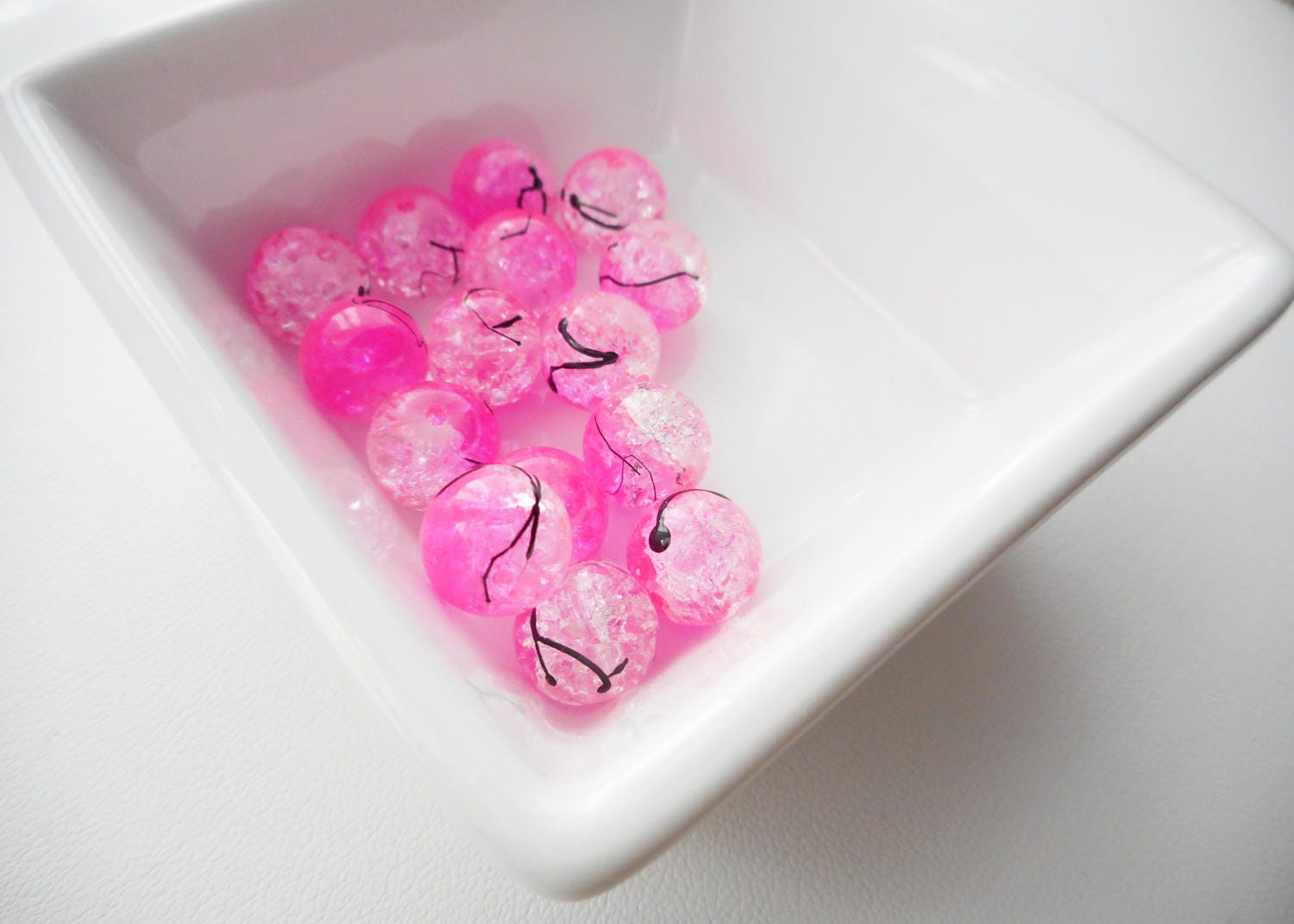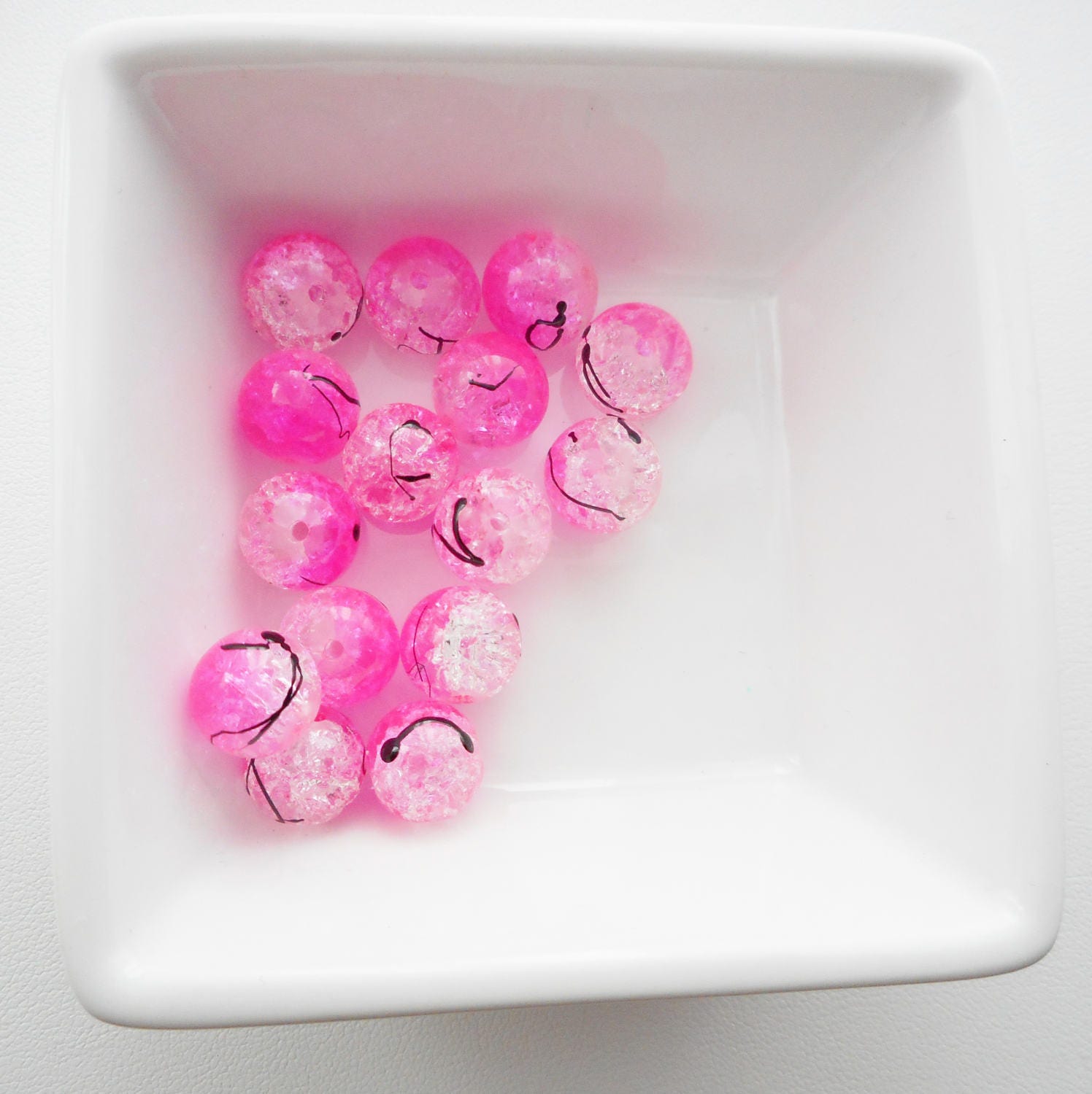 Lot of Crackle Glass Beads, Loose Beads, Destash Beads, Crackle Glass Beads, Hot Pink Beads, 8mm Glass Beads, Pink & Clear Glass Beads