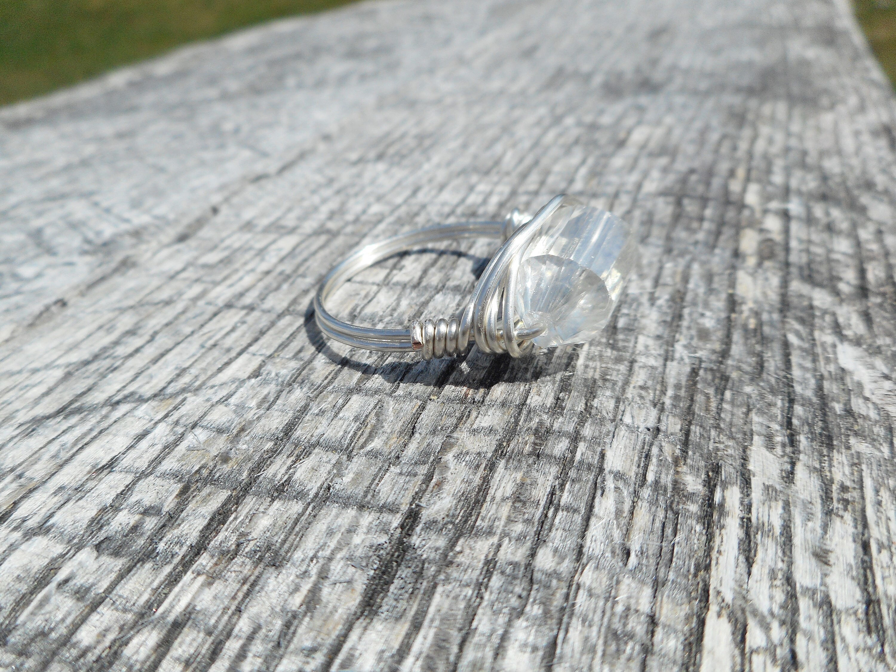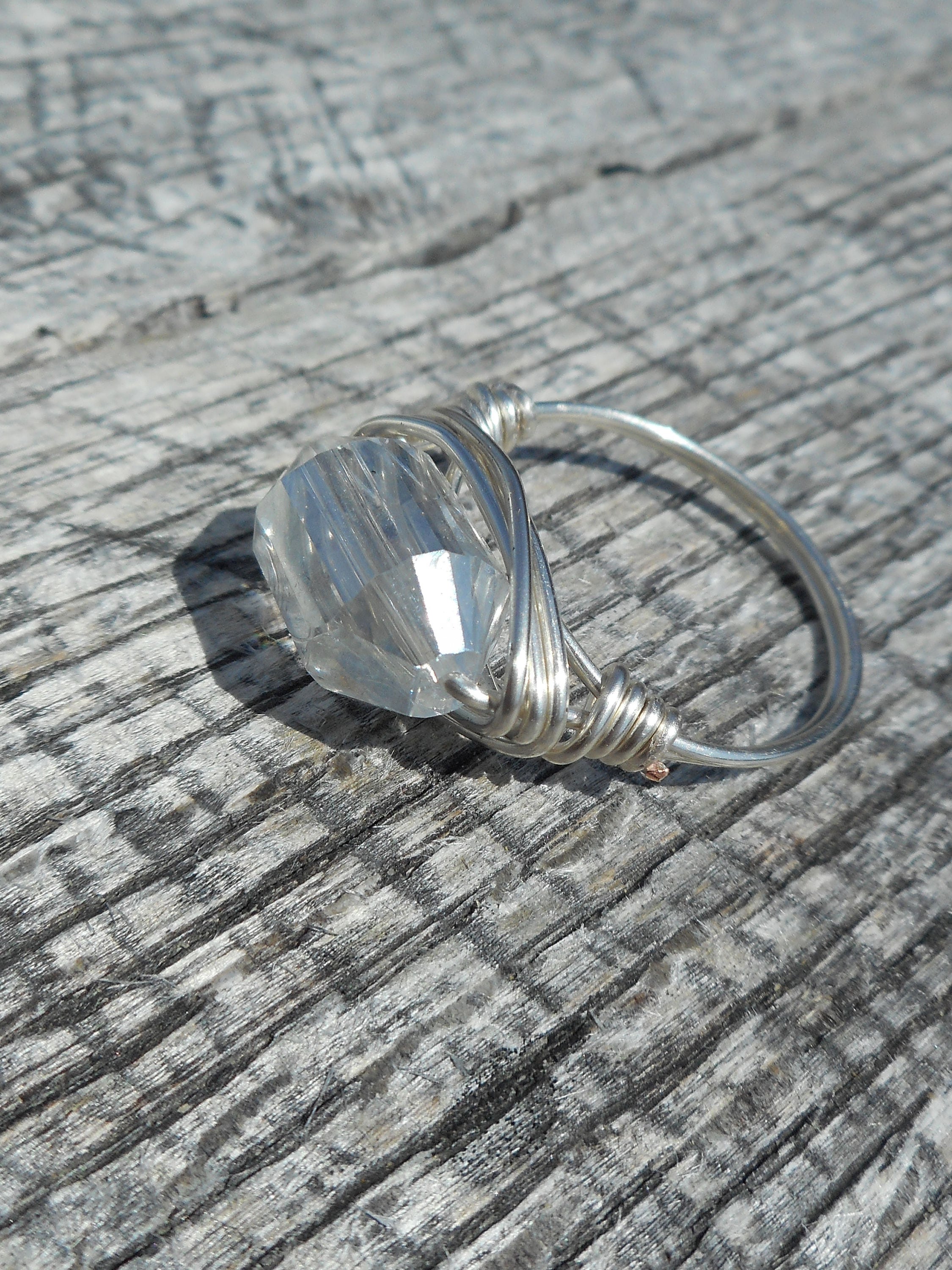 Crystal Ring, Size 12, Wire Wrapped Ring, Crystal Wrapped Ring, Wrapped Jewelry, Wire Ring, Wire Jewelry, Silver Wire Ring, Boho Ring