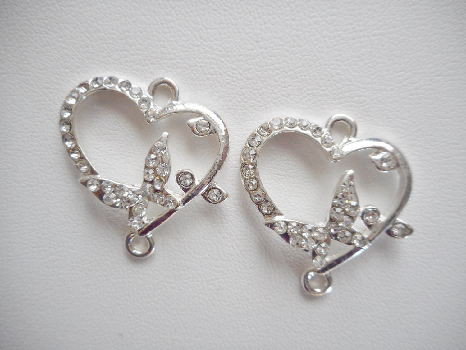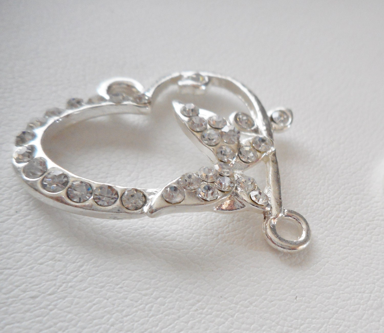 Sivertone Rhinestone Heart Connector, Bracelet connector, Jewelry connector, Connector Charms, Rhinestone Pendant Charms, Pendant connector