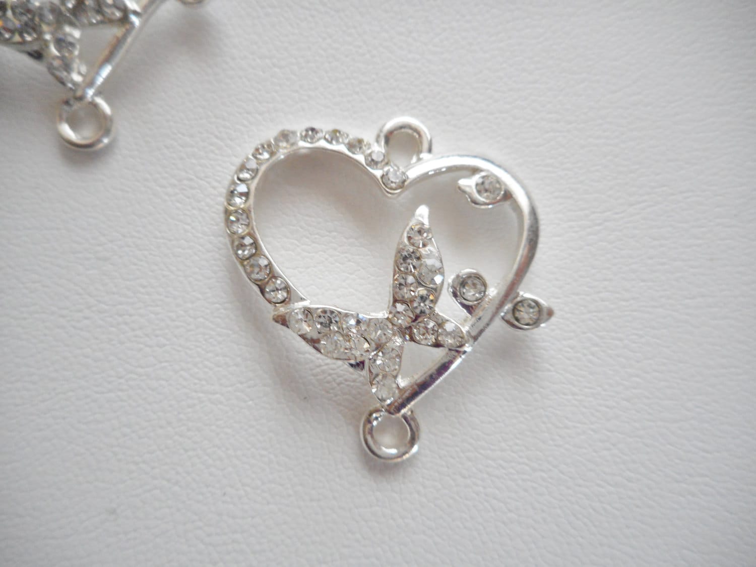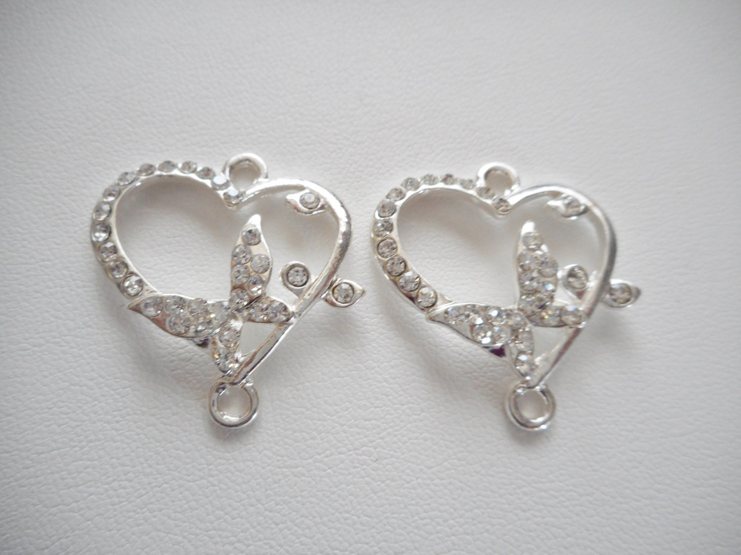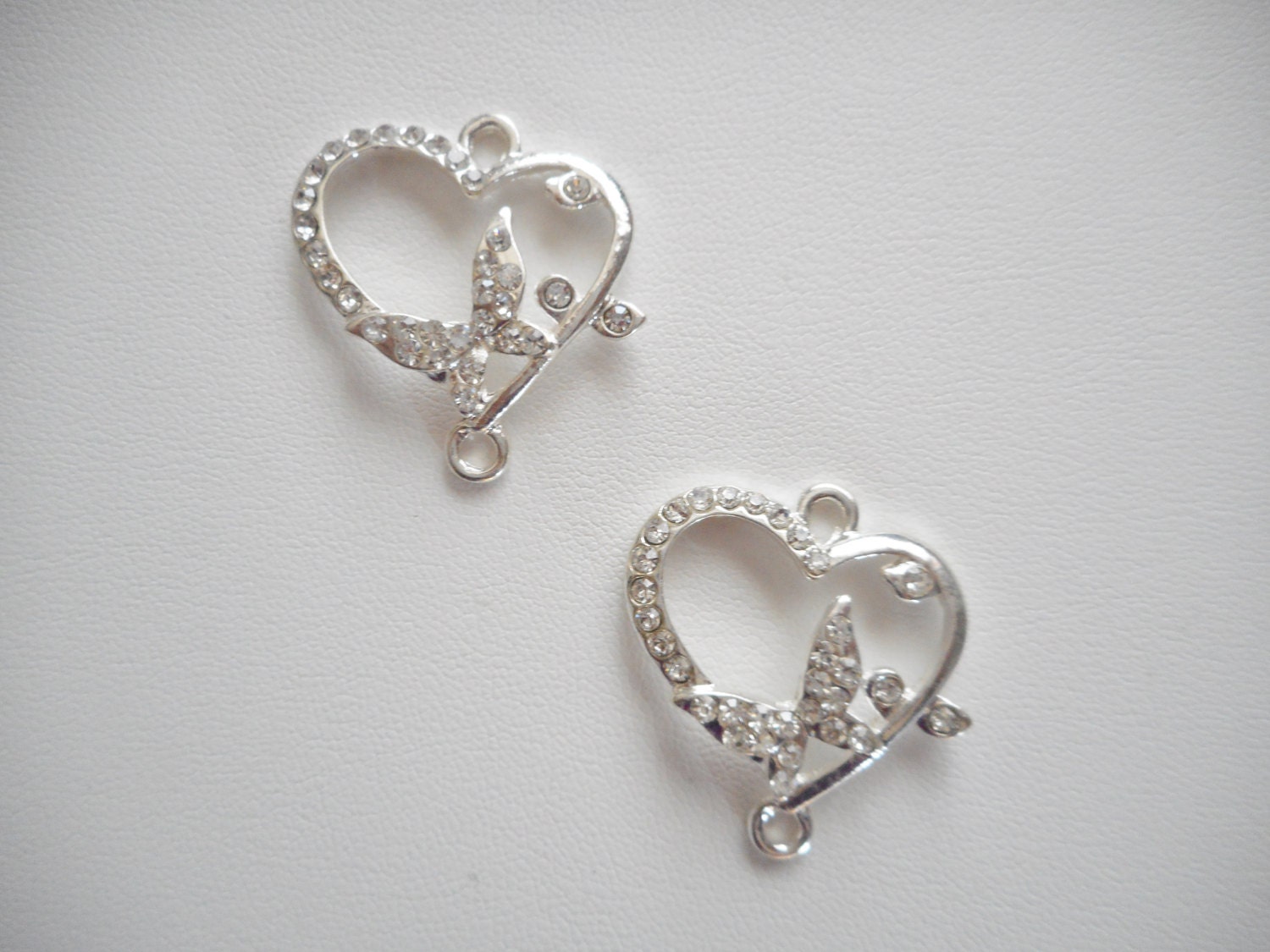 2 piece - Shine silvertone Clear Rhinestone Heart & Butterfly bracelet or pendant connector