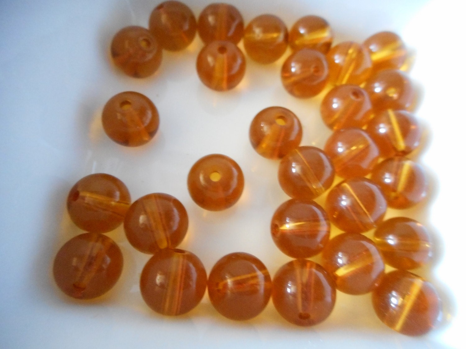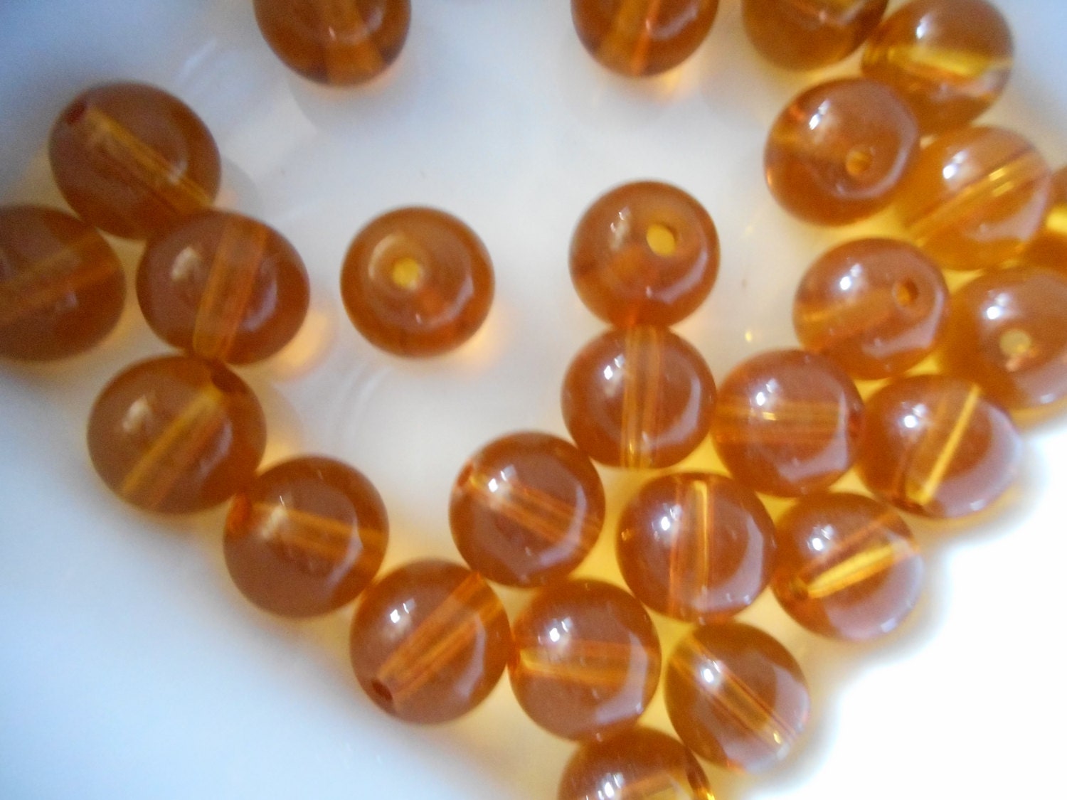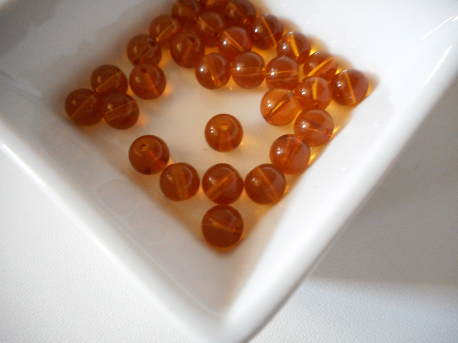 30pc - 8mm yellow orange (Amber color) glass round loose beads