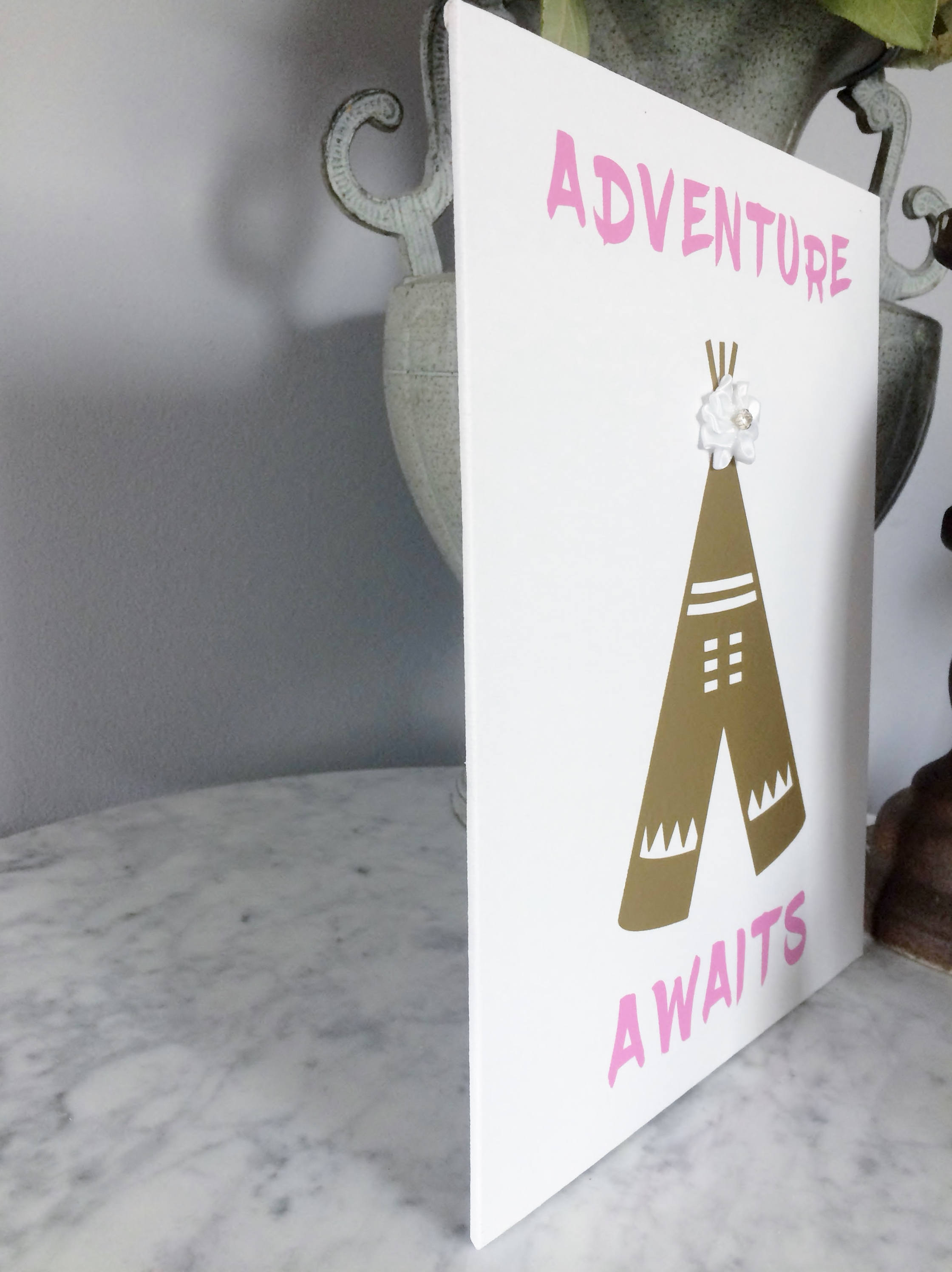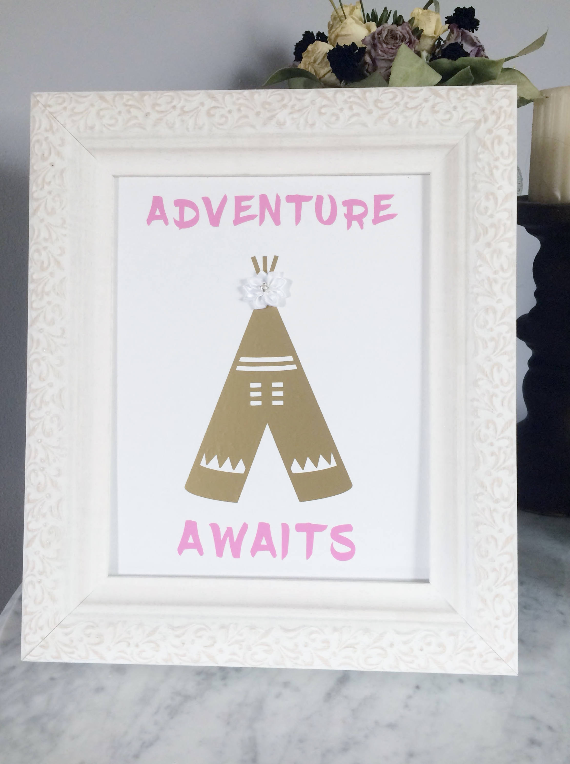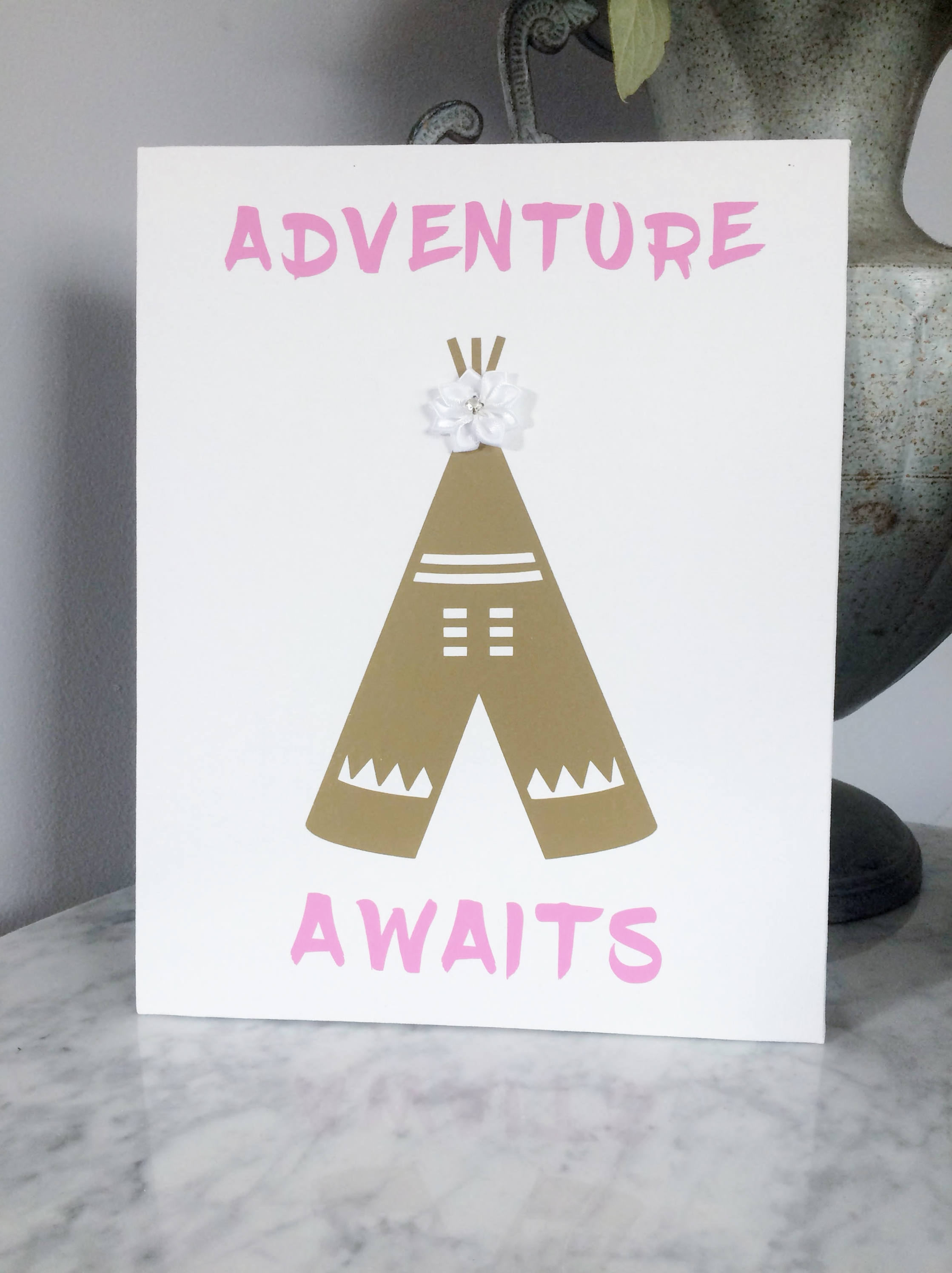 Teepee Wall Art, Tribal Nursery Decor, Gold and Pink Decor, Teepee Adventure Awaits, Tepee Decor, Native Decor, Boho Decor, Baby Girl Decor